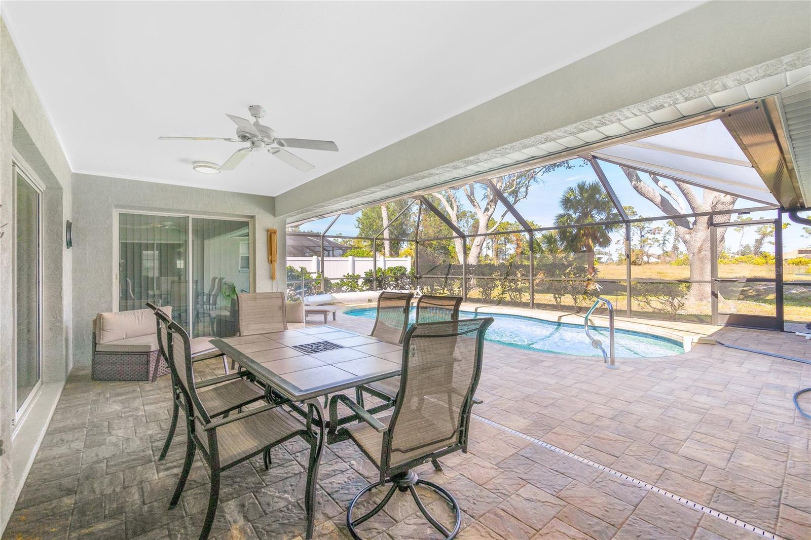 Bem -vindo à Comunidade restrita de ação de Rotonda West! Essa chave de curva mobiliada em casa de 3 quartos e 2 banheiros oferece a mistura perfeita de conforto, privacidade e conveniência. O destaque desta propriedade é a piscina aquecida privada, que foi ressurgida em 2020 e convertida em água salgada, completa com um lanai coberto (novo 2020) para relaxamento sombreado e também pavimentadoras em 2020. A área da piscina é revestida com arbustos maduros, fornecendo um retiro sereno sem vizinhos de backyard. Entre nas elegantes portas francesas e seja recebido por uma espaçosa sala de estar com vista para a piscina. A cozinha possui armários amplos, uma barra de café da manhã e uma área de jantar adjacente perto da sala da família - ideal para entretenimento. A suíte primária possui dois armários walk-in, enquanto o banheiro privativo inclui um chuveiro separado, banheira de imersão e vaidades duplas. O banheiro do hóspede é convenientemente abre para a área da piscina. HOA Taxa de apenas US $ 190, esta casa tem um preço de venda e pronto para o seu próximo proprietário. Idealmente situado perto da pesca de tarpon de classe mundial em Boca Grande, praias deslumbrantes, campos de golfe principais e as instalações de treinamento da primavera dos Raios de Tampa Bay e Atlanta Braves, esse local tem tudo. Desfrute de fácil acesso a Englewood Beach, restaurantes locais, lojas e os vibrantes mercados de fazendeiros de Dearborn Street. Seja você um jogador de golfe, amante de praia, pescador ou fã de beisebol, isso é a Flórida que vive da melhor maneira possível! Não perca - Escoque sua exibição particular hoje!