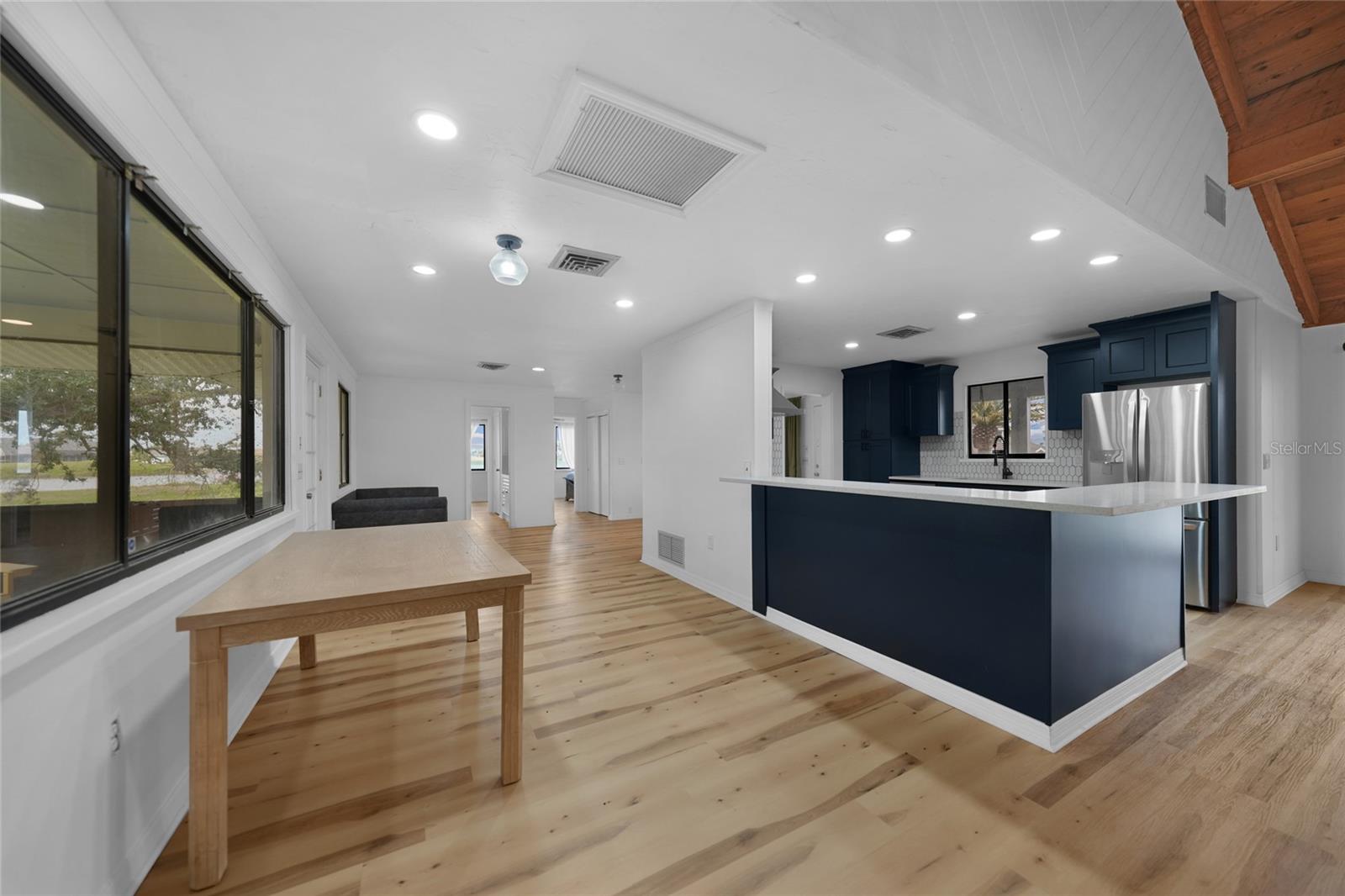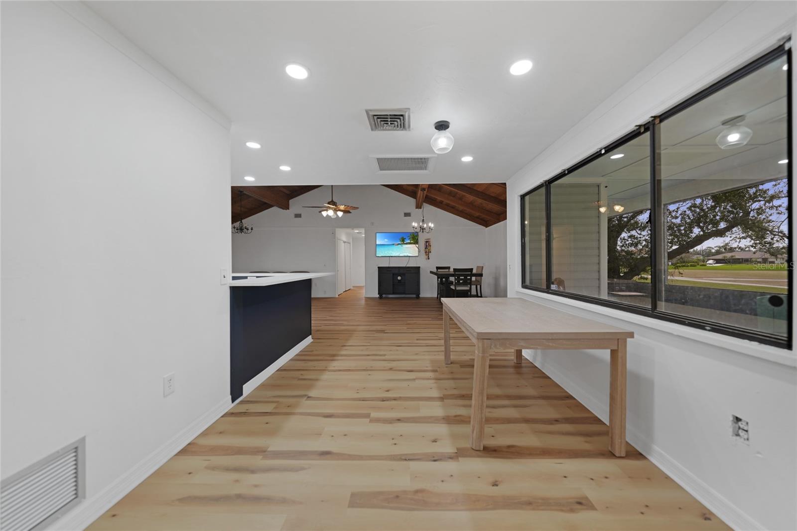Esta casa lindamente remodelada de 3 quartos e 2 banheiros com 2.214 pés quadrados de espaço está localizada na comunidade desejável de Rotonda West, com vista para o campo de golfe do Palms. A casa apresenta um visual de cabana costeira encantadora, com uma varanda da frente acolhedora que aumenta seu apelo ao meio -fio. Elevado em uma parede de tronco de 3 pés, a casa oferece caráter e tranqüilidade, com um novo telhado instalado em 2023. No interior, você encontrará pisos laminados de madeira por toda parte, criando um fluxo contínuo na planta baixa e dividida. A espaçosa suíte primária oferece privacidade e um grande banheiro privativo, enquanto a cozinha remodelada possui bancadas de quartzo, armários de madeira, utensílios de aço inoxidável e uma barra de café da manhã perfeita para refeições casuais. A sala da família, com seu impressionante teto da catedral de madeira e riacho de madeira, abre para a varanda da frente através de portas de vidro deslizantes, criando uma atmosfera brilhante e arejada. A sala de jantar possui portas de vidro deslizantes que levam a um lanai exibido, oferecendo belas vistas do campo de golfe-ideais para relaxar ou divertir. Rotonda West é conhecido por seus cinco campos de golfe, e esta casa fica a poucos quilômetros de distância de Englewood Beach e Boca Grande Beach, além de uma variedade de restaurantes e opções de compras. Esta propriedade combina a vida costeira com uma localização privilegiada, tornando -a uma verdadeira jóia.