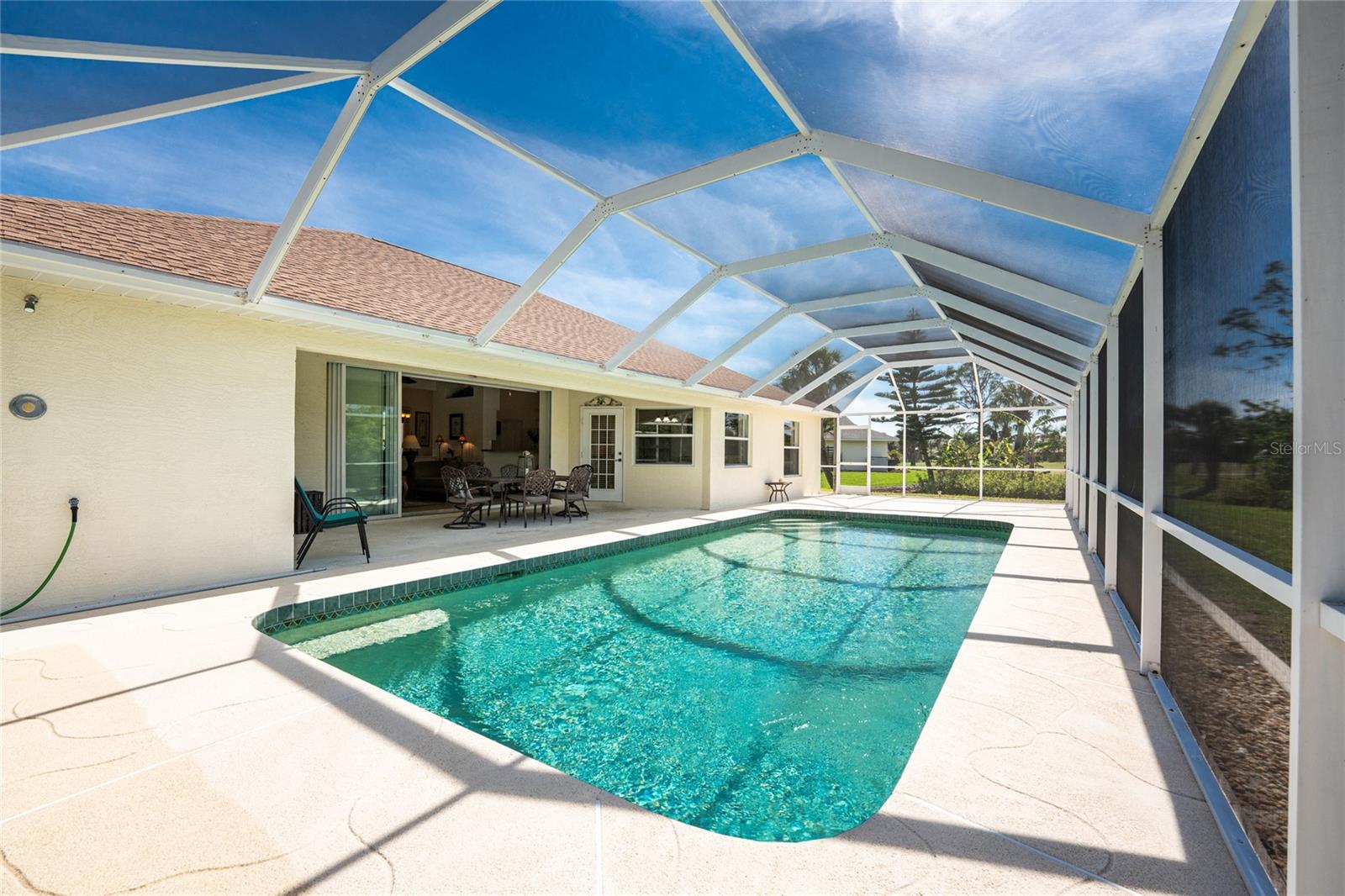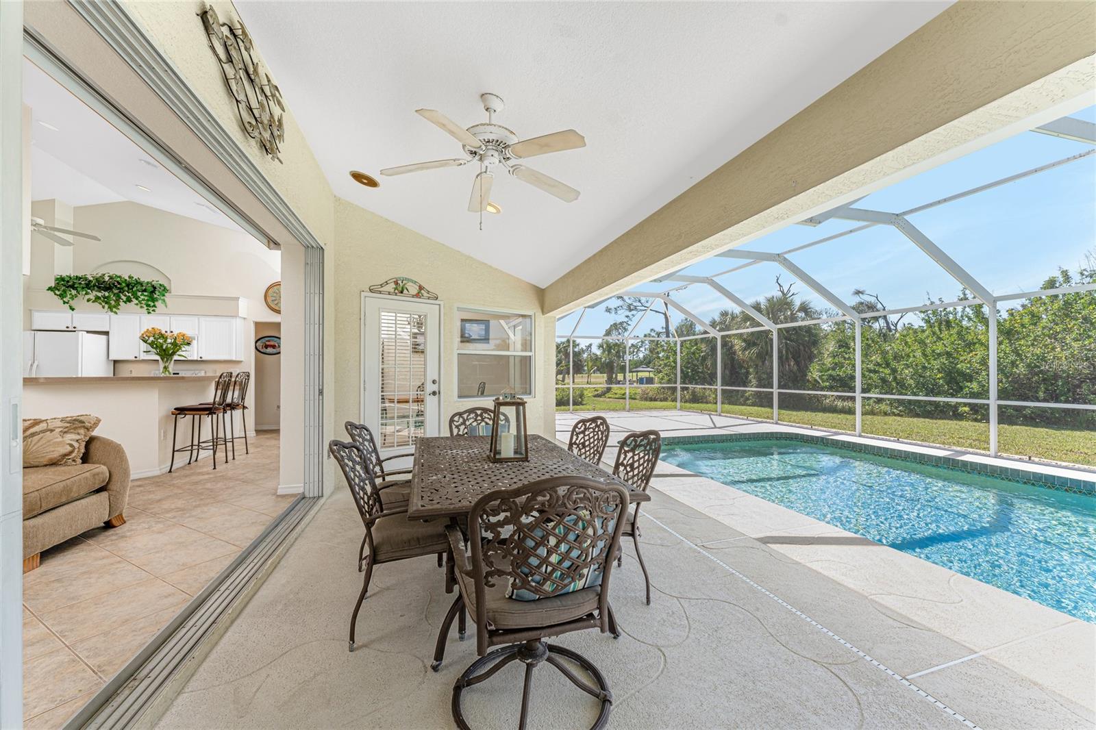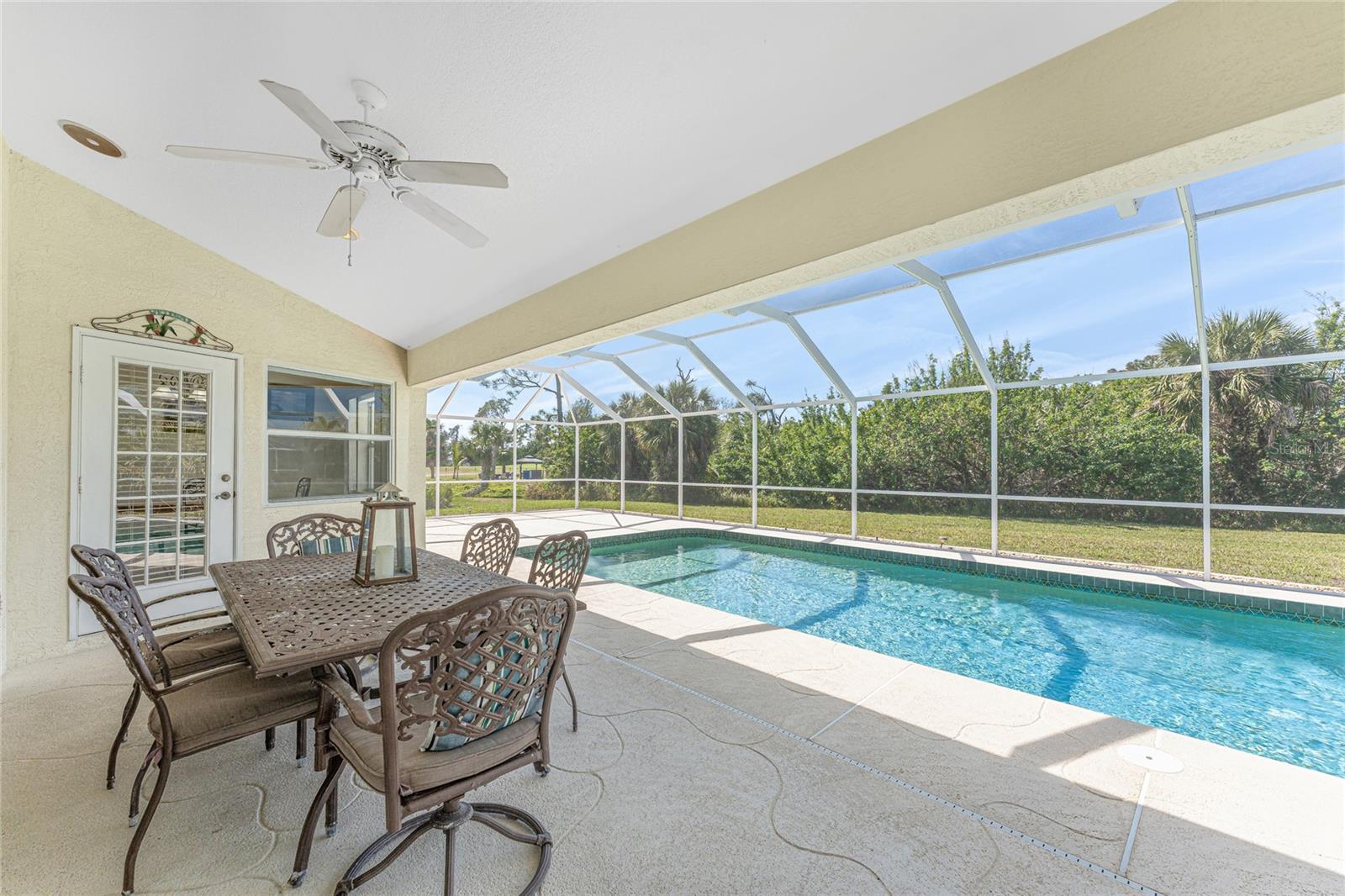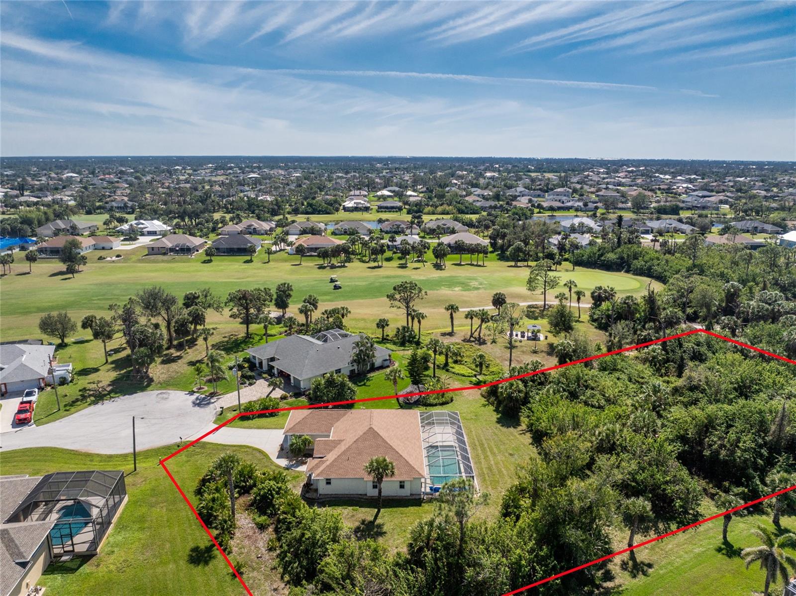 Uma oportunidade rara e excepcional de possuir quase um acre na seção Long Meadow de Rotonda West! Esta propriedade sem saída oferece vistas parciais do campo de golfe e inclui um lote adicional exclusivo na fronteira com o Campo de Golfe Long Marsh. O espaço arborizado aumenta a privacidade e cria um ambiente sereno com vistas ininterruptas, mas também oferece a capacidade de transformá-lo em espaço adicional de entretenimento ao ar livre, se desejado. Entre nesta casa iluminada e arejada de três quartos e dois banheiros, onde tetos altos e controles deslizantes quádruplos recebem você com vistas deslumbrantes da piscina desde o momento em que você entra. O piso de cerâmica nas principais áreas de estar e banheiros garante fácil manutenção, enquanto a cozinha oferece amplos armários brancos, prateleiras de plantas, balcão para café da manhã e uma conveniente porta de correr que leva à sala de jantar formal. Uma grande janela na copa tem vista para o quintal e uma porta francesa dá acesso direto à varanda. A espaçosa suíte principal possui closets duplos, teto falso, portas francesas para a piscina e um amplo banheiro privativo com pias duplas, banheira de jardim e box amplo. O design de quarto dividido garante privacidade, com dois quartos adicionais oferecendo armários embutidos e um banheiro compartilhado com banheira e chuveiro. Uma grande lavanderia interna possui armário embutido com pia, bancada e estantes. O espaço exterior inclui uma piscina de grandes dimensões com exposição poente que convida a relaxar e desfrutar de um pôr do sol deslumbrante com um copo de vinho. Os destaques adicionais incluem um telhado de 2023, uma nova tela de gaiola de piscina (2023), um aquecedor de água de 2022, um controle de porta de garagem de 2024 e um sistema de irrigação privado bem alimentado. Como outro bônus adicional, a apólice de seguro contra inundações do Vendedor é transferível! O melhor de tudo é que esta casa está a ser vendida mobilada chave na mão, basta fazer as malas e mudar-se! Localizada em Rotonda West, com escritura restrita, esta comunidade oferece cinco campos de golfe, um clube, tênis, caminhadas, clubes e 42 quilômetros de canais panorâmicos. Uma curta viagem leva você a praias imaculadas, passeios de barco em Lemon Bay e Boca Grande, pesca de classe mundial, lojas, restaurantes locais, bares tiki, instalações médicas e muito mais. Não perca esta rara mistura de espaço, privacidade e vida em estilo resort - agende sua exibição privada hoje mesmo!