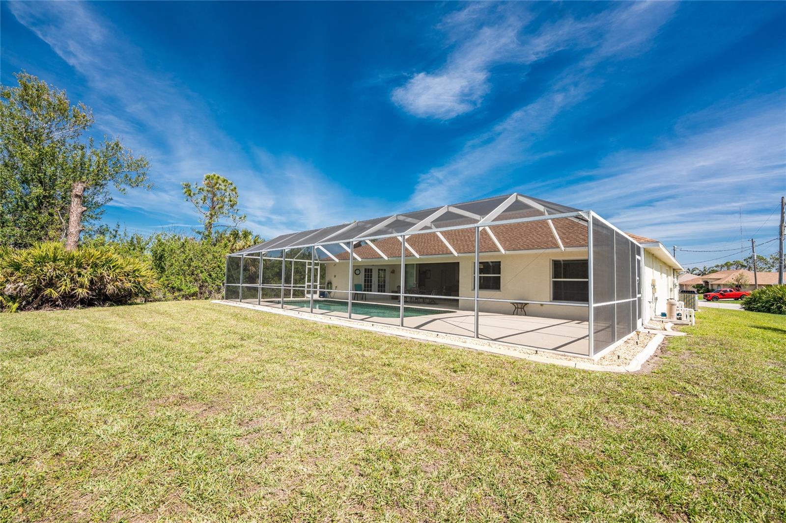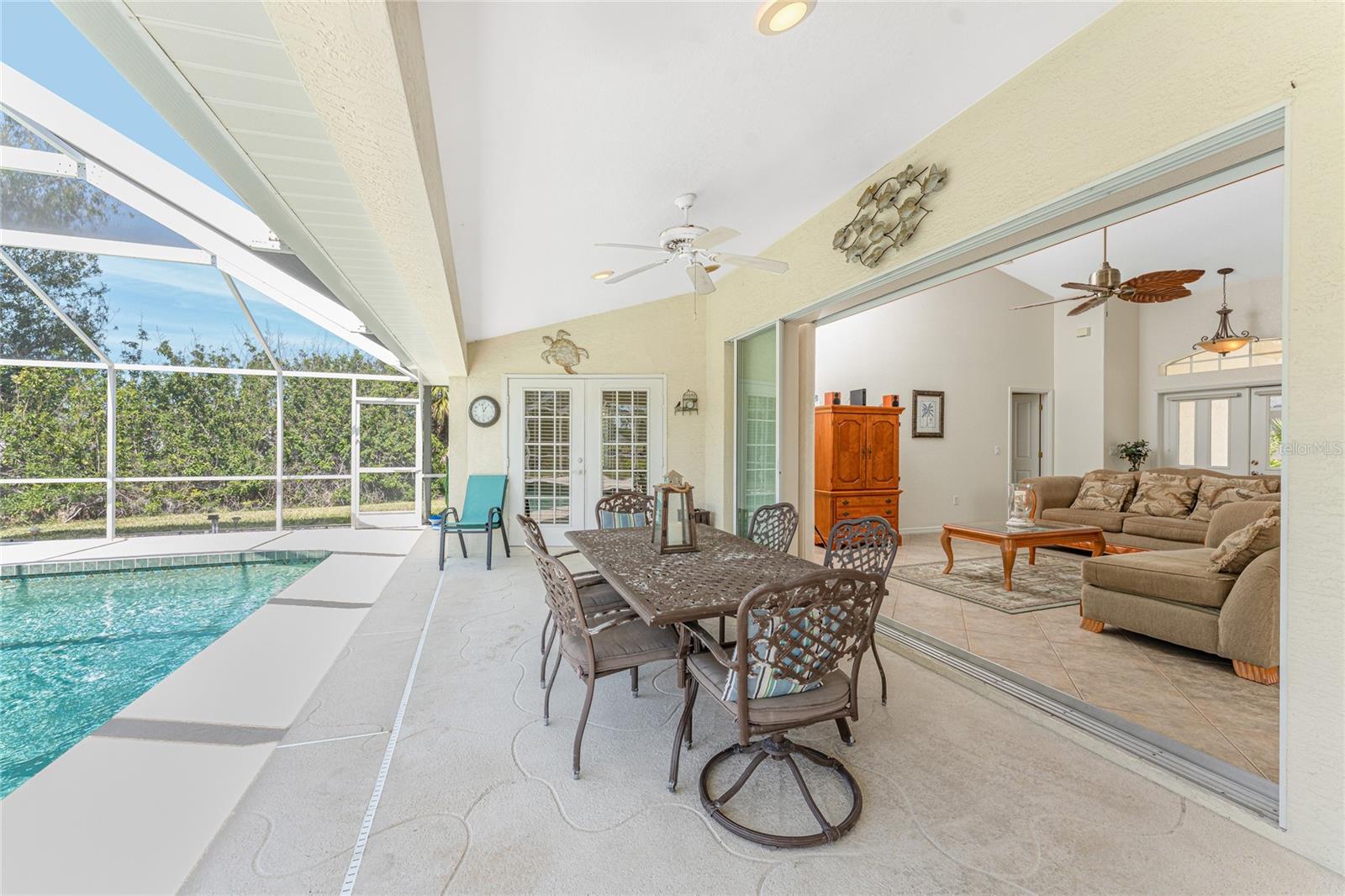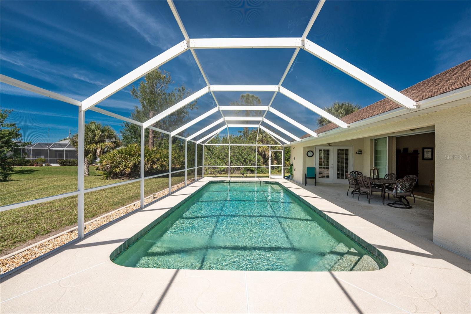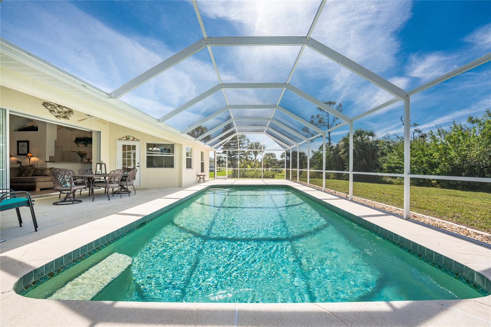 Uma oportunidade rara e excepcional de possuir quase um acre na seção Long Meadow de Rotonda West! Esta propriedade sem saída oferece vistas parciais do campo de golfe e inclui um lote adicional exclusivo na fronteira com o Campo de Golfe Long Marsh. O espaço arborizado aumenta a privacidade e cria um ambiente sereno com vistas ininterruptas, mas também oferece a capacidade de transformá-lo em espaço adicional de entretenimento ao ar livre, se desejado. Entre nesta casa iluminada e arejada de três quartos e dois banheiros, onde tetos altos e controles deslizantes quádruplos recebem você com vistas deslumbrantes da piscina desde o momento em que você entra. O piso de cerâmica nas principais áreas de estar e banheiros garante fácil manutenção, enquanto a cozinha oferece amplos armários brancos, prateleiras de plantas, balcão para café da manhã e uma conveniente porta de correr que leva à sala de jantar formal. Uma grande janela na copa tem vista para o quintal e uma porta francesa dá acesso direto à varanda. A espaçosa suíte principal possui closets duplos, teto falso, portas francesas para a piscina e um amplo banheiro privativo com pias duplas, banheira de jardim e box amplo. O design de quarto dividido garante privacidade, com dois quartos adicionais oferecendo armários embutidos e um banheiro compartilhado com banheira e chuveiro. Uma grande lavanderia interna possui armário embutido com pia, bancada e estantes. O espaço exterior inclui uma piscina de grandes dimensões com exposição poente que convida a relaxar e desfrutar de um pôr do sol deslumbrante com um copo de vinho. Os destaques adicionais incluem um telhado de 2023, uma nova tela de gaiola de piscina (2023), um aquecedor de água de 2022, um controle de porta de garagem de 2024 e um sistema de irrigação privado bem alimentado. Como outro bônus adicional, a apólice de seguro contra inundações do Vendedor é transferível! O melhor de tudo é que esta casa está a ser vendida mobilada chave na mão, basta fazer as malas e mudar-se! Localizada em Rotonda West, com escritura restrita, esta comunidade oferece cinco campos de golfe, um clube, tênis, caminhadas, clubes e 42 quilômetros de canais panorâmicos. Uma curta viagem leva você a praias imaculadas, passeios de barco em Lemon Bay e Boca Grande, pesca de classe mundial, lojas, restaurantes locais, bares tiki, instalações médicas e muito mais. Não perca esta rara mistura de espaço, privacidade e vida em estilo resort - agende sua exibição privada hoje mesmo!
