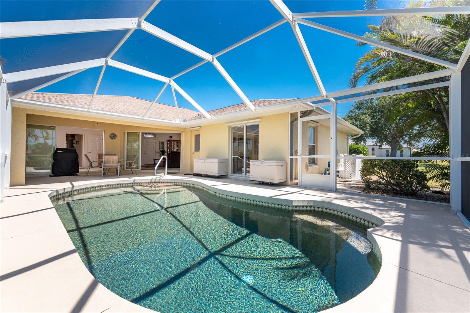 Lote à beira -mar duplo, um proprietário, proteção completa do furacão e teto: 2020, HVAC: 2019, irrigação do canal - tudo o que você deseja e muito mais! Esta casa construída personalizada foi meticulosamente mantida e aguardando você! As you approach the front door, you are warmly welcomed with a screened-in front porch and stepping inside, the open floor plan with 12 foot vaulted ceilings and neutral color scheme awaits..... The great room provides the perfect space for entertaining with a spacious living room, dining area, and kitchen that features ample cabinets & countertop space, stainless steel appliances, a built-in desk/workspace, Barra de café da manhã, iluminação embutida e acesso à grande lavanderia com uma porta de bolso. As principais áreas de estar têm fáceis de manter, que flui durante a maior parte da casa. Expanda facilmente seu espaço de estar ao ar livre com portas de vidro deslizantes triplas de bolso que levam para fora da sua linha coberta com sua própria piscina e, o mais importante, a impressionante vista do canal - um verdadeiro oásis de quintal privado! Há muito espaço dentro com uma planta baixa dividida, proporcionando privacidade para todos e todos os quartos apresentam armários. A suíte do proprietário é realmente um "retiro", com acesso privado à área de Lanai e piscina, um closet e uma suíte que tem amplo espaço no gabinete, grande vaidade, um chuveiro espaçoso e um armário de água privado. Do outro lado da casa estão os dois quartos de hóspedes-um com acesso privado à área da piscina, e os dois quartos apresentam carpete de qualidade, armários e ventiladores de teto. O banho de hóspedes funciona como uma banheira de bilhar com uma combinação de chuveiro/banheira e muitos armários. Não vamos esquecer a garagem dos três carros! Esta casa oferece uma abundância de armazenamento por dentro e por fora! Além disso, um espaço adicional para o pátio fora da garagem, onde você pode sentar e se reunir com os amigos. Existem tantos recursos opulentos que esta casa oferece que você deve vir ver por si mesmo! A Rotonda West oferece cinco campos de golfe, trilhas para caminhada e bicicleta, quadras de tênis e localizadas a poucos minutos de praias do Golfo de classe mundial, incríveis pesca, mercados de agricultores e uma ampla seleção de restaurantes e lojas pitorescas. Você não quer hesitar, pode fazer deste seu oásis da Flórida!