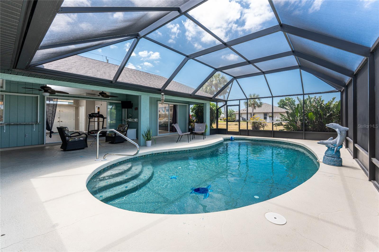 Casa excepcional e espaçosa localizada na prestigiada comunidade de golfe de Rotonda West. Esta casa na frente do canal está localizada em uma zona de inundação "X" e recentemente atualizada com todos os principais recursos: novo teto (2024), HVAC (2020), pintado externo (2022) e pintados interiores (2020), a piscina de pool de queda de seleção e o piso de 2011 e o alojamento de pebble e os fãs e os fãs de piscina (2024). Você está na entrada da porta dupla e entra no vestíbulo, os tetos da catedral crescente, o esquema de cores neutro, o piso de ladrilhos espaçosos e a vista da sua piscina recebe você. Esta casa oferece amplo espaço versátil com uma sala de jantar formal ou o espaço perfeito para um espaço para casa com muita prateleira embutida-sua escolha! A sala possui portas de vidro deslizantes para embolsar e uma janela de popa para que você possa expandir facilmente o espaço de estar do lado de fora do seu oásis tropical. Relaxe sob o Lanai coberto de 33 'x 15' com ventiladores de teto duplo e, se isso não for suficiente, há um gabinete de tela adicional (35 'x 22') com sua própria piscina com uma nova bomba de piscina, a conveniência adicional de um armário de armazenamento de piscina e, mais importante, a impressionante vista do canal-seu paradreio de fundo privado! Voltando para dentro, há muito espaço para todos com uma cozinha excepcionalmente grande que oferece bancadas em granito, backsplash elegante de ladrilhos, torneira atualizada e pia composta, utensílios de aço inoxidável, um passe pela janela para a Lanai e a barra de café da manhã- todos abertos para a área de jantar e espaçosa sala de família, onde você pode se reunir com amigos, familiares e amantes. Com um plano de quarto "dividido", a suíte primária oferece um quarto privado e espaçoso, com carpete, portas de vidro deslizantes para a área de Lanai e armários duplos-um interno e considerável embutido. O banheiro privativo possui pias duplas, chuveiro atualizado com todos os novos ladrilhos (2025), uma banheira de imersão separada e um armário de linho, além de muitos armários para armazenamento. On the opposite side of the home, there are two additional bedrooms-- one with carpeting, updated lighted ceiling fan a walk-in closet--the 3rd bedroom has laminate flooring, updated lighted ceiling fan, and a walk-in closet--and the second bathroom featuring a shower/tub combo with frosted glass doors and tiled walls along with a large vanity, built-in storage space plus ample cabinet and counter space. Não vamos esquecer a espaçosa lavanderia com pia cheia e um armário inferior, além de uma garagem espaçosa de carro duplo. Esta casa é uma jóia absoluta e uma obrigação. A Rotonda West oferece 5 campos de golfe, trilhas naturais onde você pode andar e andar de bicicleta, quadras de tênis e pickleball perto e está idealmente localizado a poucos minutos de várias praias, restaurantes, compras e passeios de barco. Não perca a oportunidade de chamar este lar incrível de sua casa para sempre!