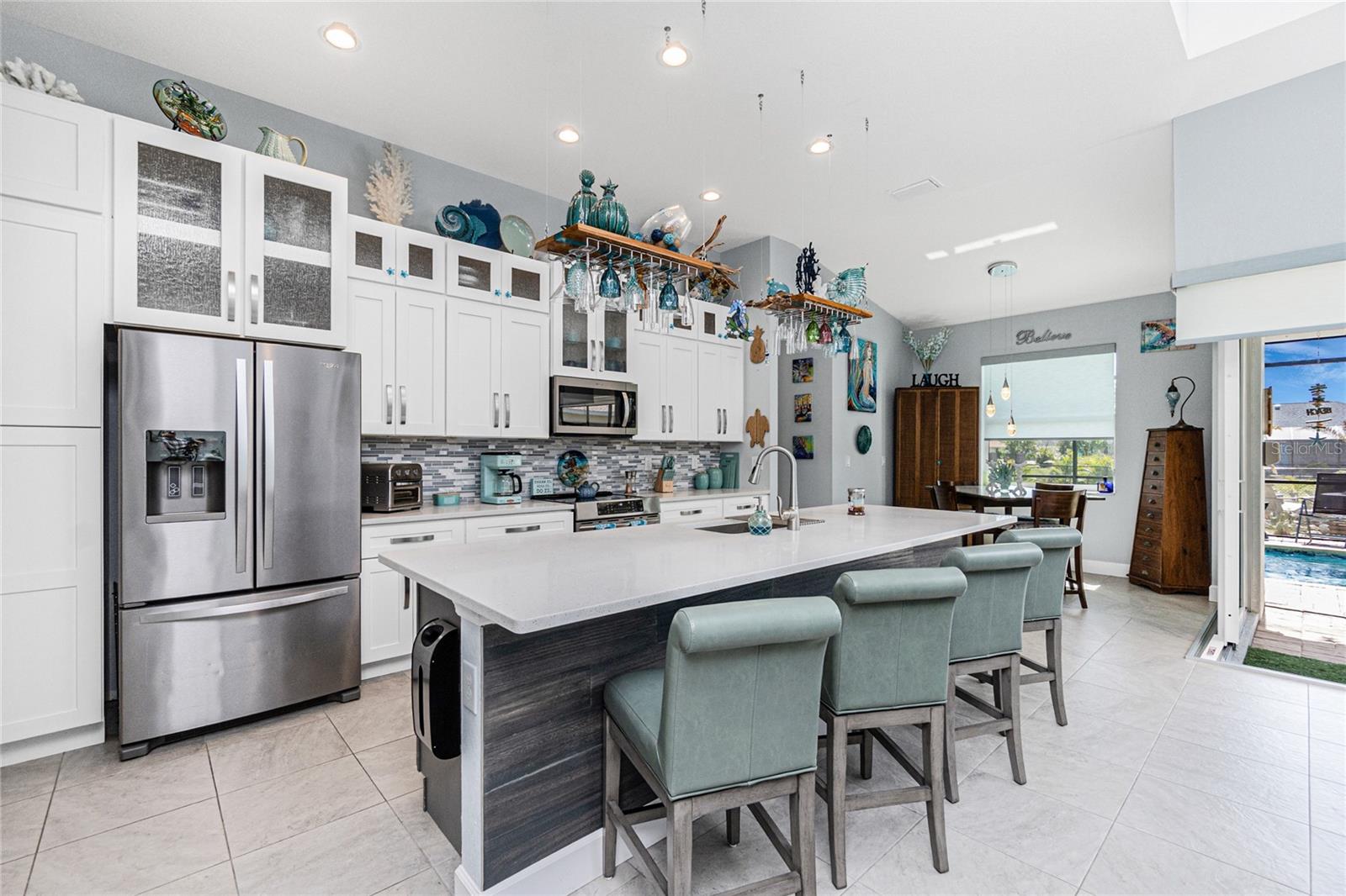 A praia está chamando seu nome e você deve responder! Todas as nuances desta casa lembram o nosso lindo tesouro natural a menos de 13 quilômetros de distância. Esta casa curta e mobiliada de designer está pronta para mudar-oferecida exatamente como você vê nas fotos! Localizada na comunidade desejável e restritiva de golfe de Rotanda West, esta residência fica em um lote de 80 x 200 de tamanho grande (0,37 acres) em uma zona de inundação X, economizando custos de seguro com taxas baixas de HOA de apenas US $ 190/ano. Desfrute de paz de espírito com janelas e portas resistentes ao impacto-não é necessário persianas! No interior, este lar de 3 quartos + den, 2 banheiros e 3 carros oferece o layout perfeito para qualquer estilo de vida: não muito grande, não muito pequeno. Os pisos de ladrilhos facilitam a limpeza, e os tetos de alojamento e bandeja acrescentam um toque refinado. A cozinha do chef é um destaque, com armários de madeira atualizados, gavetas de close suave, bancadas de quartzo, um elegante backsplash, despensa de tração e caixas de lixo embutidas. Os aparelhos incluem uma geladeira de porta francesa de hidromassagem, microondas, lava -louças e uma faixa de indução de Frigidaire. A ilha com o café da manhã é ideal para o café da manhã, e o recanto de jantar adjacente com luzes pendentes de água -viva caprichosas tem vista para sua piscina privada. O Den/Office oferece espaço flexível - perfeito para trabalho, artesanato, leitura ou uma biblioteca aconchegante. A suíte primária apresenta portas francesas para o Lanai, closetes duplos e um luxuoso banho privativo com vaidades duplas, uma banheira de walk-in, armário de água privado e um impressionante chuveiro de "lavagem de carros". Ambos os quartos de hóspedes apresentam tetos de bandeja e ventiladores de teto, e o banheiro de hóspedes funciona como um banho de bilhar. A lavanderia vem com uma lavadora e secadora de cais e armários superiores para armazenamento. Tratamentos de janela com controle remoto personalizados e acabamentos atualizados são encontrados por toda parte. A garagem de 3 carros é um sonho para os amadores, com piso epóxi, uma bancada de trabalho, pia de utilidade e dois abridores de portas de garagem. Ao ar livre, relaxe no lanai com uma tela de queda ou dê um mergulho na piscina aquecida de água salgada, cercada por um deck de pavimentação. Enxágue no chuveiro quente/frio ao ar livre após um dia de praia. O quintal parcialmente cercado é perfeito para animais de estimação ou crianças e já tem uma fogueira para desfrutar em nossos meses mais frios. Não perca esta casa deslumbrante a poucos minutos do Golfo - todos os detalhes refletem a elegância relaxada da vida costeira da Flórida! Bem -vindo ao seu "Oasis Ocean!"