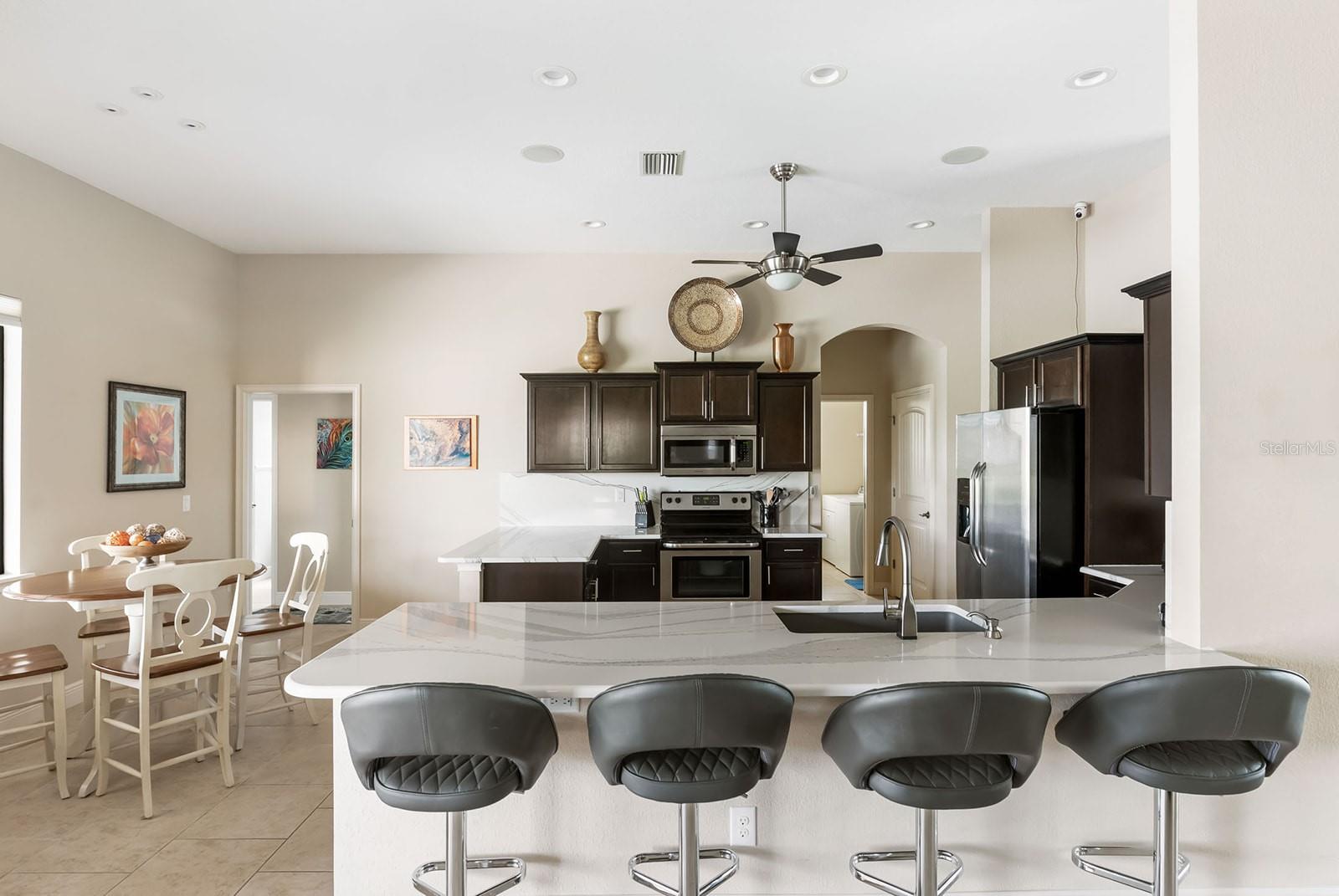 Experimente o melhor da Flórida que vive nesta casa de construção de parto personalizada e construída na comunidade procurada de Rotonda West, a poucos minutos de praias, golfe e jantar primitivos. Posicionado perfeitamente no rio Rotonda com vistas pacíficas, esta casa oferece um plano de vida conceitual aberto, três quartos generosos e três banheiros completos - proporcionando conforto, privacidade e estilo excepcionais. Por meio de design impressionante, portas de entrada de vidro duplo, uma grande sala recebe você com um impressionante teto de alojamento e uma cozinha ampla com bancadas de quartzo com aparência de mármore e backsplash correspondente. Apresentando uma abundância de armários e espaço para comer, com um canto de café da manhã ensolarado e um espaço flexível de teto dividido, há amplo espaço para entretenimento e armazenamento. A vida em ambientes internos é transições sem problemas através de flechas de bolso que se abre para uma extensa lanchonete de pavimentação com uma gaiola de tela Clearview atualizada, piscina de água salgada aquecida com marchas de sol + spa de água (adicionada em 2017). Com vista para uma ampla vista do canal, com muito espaço para relaxar ao sol ou sombra, esse oásis cumpre todos os seus sonhos na Flórida com um lanchonete voltado para o sul para o céu do nascer do sol e o sol o dia inteiro na piscina e depois se protegeu do calor do final da tarde. A suíte primária oferece um verdadeiro alívio com acesso privado em Lanai, armários duplos e um banho de banheiro privativo com banheira de imersão, pias duplas, chuveiro grande e armário de água. Os quartos dos hóspedes estão dobrados em um salão com acesso conveniente de Lanai para o banheiro de hóspedes, segundo quarto e um terceiro quarto privilegiado. Recursos adicionais a serem observados incluem persianas personalizadas e tratamentos de janelas por toda parte, detalhes de moldagem da coroa, pisos de ladrilhos fáceis de manutenção nas áreas de estar com quartos acolhedores acolhedores, uma lavanderia interior dedicada com pia e uma infinidade de armários de armazenamento. Do lado de fora, a propriedade é cercada por paisagismo tropical, redução de concreto personalizada e rocha de paisagem atualizada, todas mantidas facilmente com um gramado de Saint Augustine irrigado pela hidrovia sem nenhum custo adicional. PEACE OF MIND COMES WITH WHOLE HOME HURRICANE PROTECTION and a high-and-dry elevation above flood plain (assumable flood insurance if desired.) Rotonda West provides an aesthetically pleasing neighborhood with low fees and convenient access to five nearby golf courses, a central park with playground, tennis courts, RV/boat storage and is just minutes away from the beautiful beaches of Boca Grande and Manasota Key! Agende sua exibição hoje para experimentar a qualidade, o estilo e o elegante estilo de vida da Flórida que essa propriedade oferece! Móveis disponíveis para negociação por contrato separado.