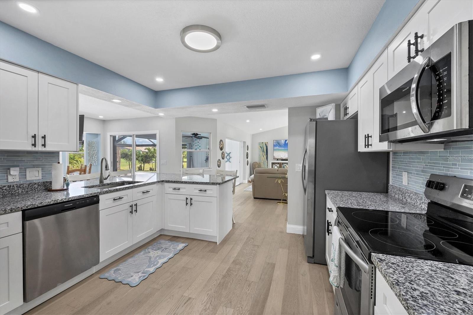 Bem -vindo ao seu Retiro costeiro de seus sonhos! Esta encantadora casa de 3 quartos e 2 banheiros oferece a mistura perfeita de conforto e estilo. Com 1.835 pés quadrados de espaço de estar, esta residência foi projetada para relaxamento e entretenimento. A planta aberta conecta perfeitamente as áreas de estar, jantar e cozinha, criando uma atmosfera espaçosa e convidativa. Saia do seu oásis à beira-mar, com uma piscina aquecida e uma lanchonete coberta, perfeita para o prazer durante todo o ano. A casa é complementada por pisos de tábuas de vinil de luxo, cozinha e banhos atualizados, balcões de pedra por toda parte e persianas de furacões, proporcionando tranquilidade durante o clima tempestuoso. O telhado tem apenas 3 anos de idade, HVAC, aquecedor de piscina elétrica e bomba de aspersores têm 1 ano, aparelhos com apenas 2 anos de idade. Água pública, esgoto público, água para irrigação do canal e nenhuma necessidade de seguro contra inundações. Você vai adorar a localização, cercada por campos de golfe e a apenas 20 minutos das praias. Esteja você hospedando uma reunião à beira da piscina ou desfrutando de uma noite tranquila dentro de casa, esta casa é sua fuga costeira perfeita. Não perca a oportunidade de tornar este próprio paraíso da praia o seu!