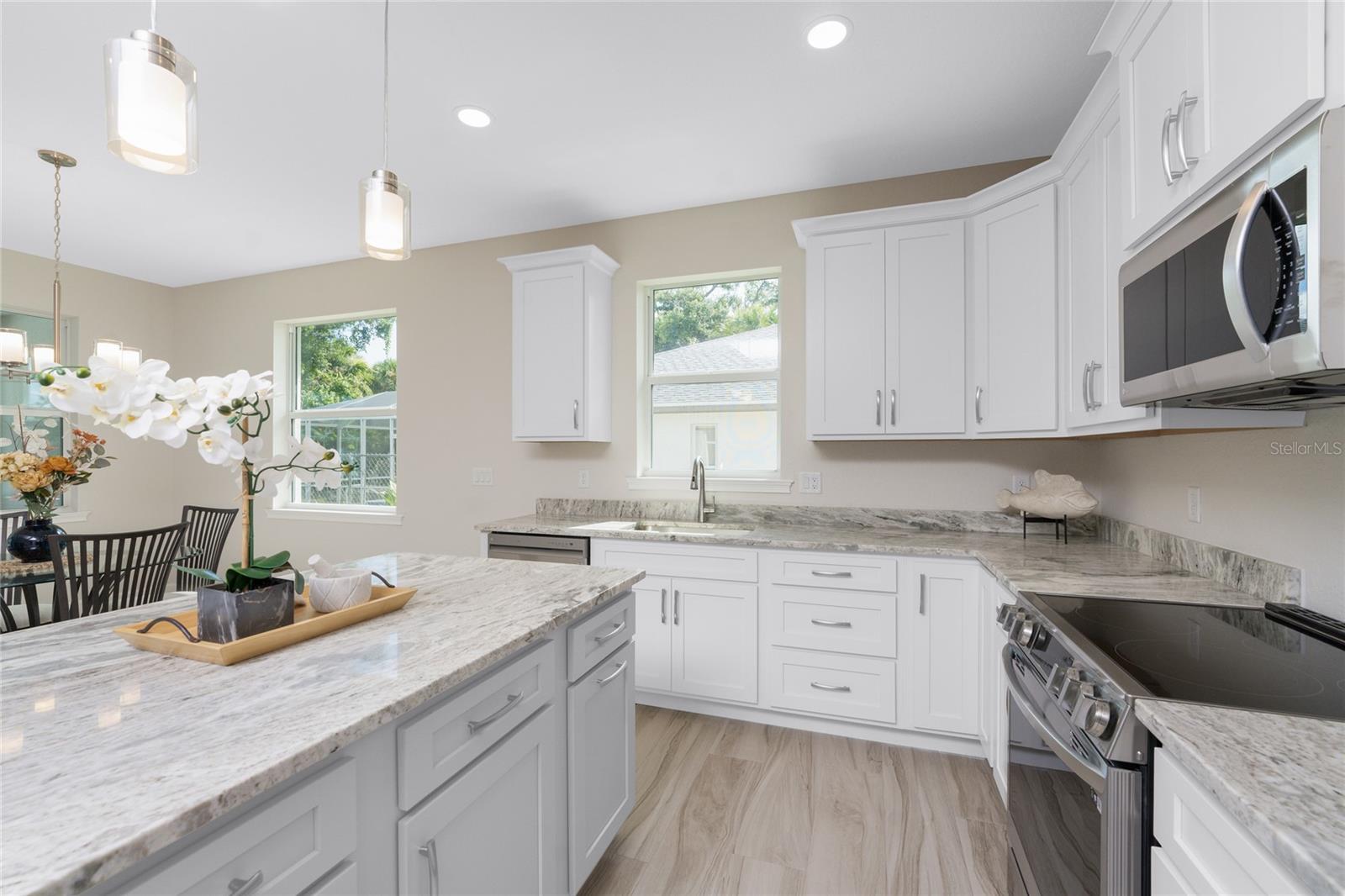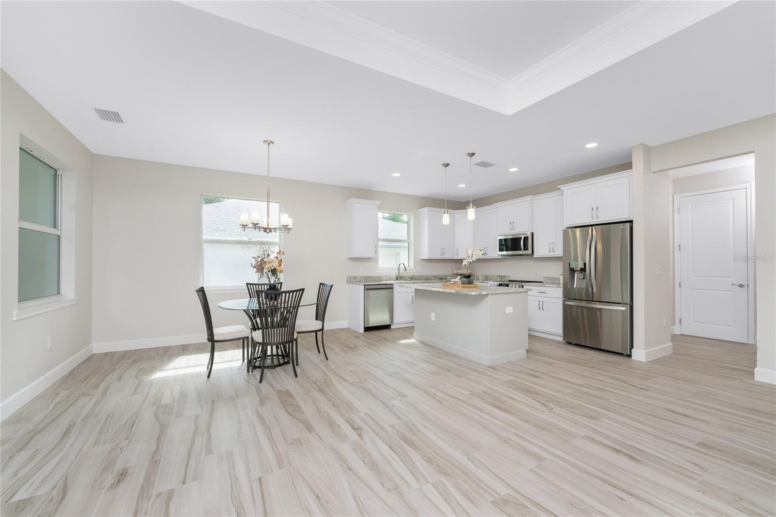 Por que construir quando você pode possuir esta extraordinária casa com piscina de blocos de concreto construída em 2023 e nunca habitada em Rotonda Heights! Uma calçada de pavimentação e colunas decorativas na convidativa varanda da frente dão o tom para o que está dentro. Esta casa de três quartos e dois banheiros exibe azulejos de design por toda parte, encanamentos atualizados, ventiladores de teto, luminárias elegantes, portas de 2,5 metros, spray isolamento de espuma e cores neutras da parede que realçam seu interior claro e luminoso. Se você adora entretenimento, a grande sala de conceito aberto com teto e molduras, cozinha e área de jantar oferecem o ambiente perfeito para conversas fáceis com amigos e familiares durante as reuniões. O chef da família irá apreciar os armários brancos em estilo shaker com portas de fechamento suave, bancadas de granito de nível 3, eletrodomésticos de aço inoxidável e uma grande ilha central com balcão para café da manhã na cozinha. O quarto principal da suíte oferece closet, porta de correr de acesso à área da piscina e banheiro luxuoso com pia dupla com tampo de granito, box amplo e closet adicional. Os dois quartos de hóspedes possuem armários embutidos, enquanto o banheiro de hóspedes oferece uma penteadeira com tampo de granito e uma combinação de banheira/chuveiro para maior comodidade. Uma lavanderia interna tem uma pia com tampo de granito e prateleiras para fornecer armazenamento adicional. As portas de vidro deslizantes com bolsos triplos na grande sala estendem perfeitamente o seu espaço de estar para a ampla varanda de pavimentação, completa com ventiladores de teto e vistas serenas da floresta. A piscina oferece o lugar perfeito para afastar suas preocupações. Os destaques adicionais incluem portas e janelas de impacto em toda a casa, classificação de zona de inundação X, eletricidade subterrânea e uma garagem de bom tamanho para 2 carros. Rotonda Heights é uma comunidade tranquila em um ambiente pitoresco, oferecendo lagos serenos, muitas atividades ao ar livre e acesso conveniente a campos de golfe, parques e praias de areia branca da Costa do Golfo próximos. Este é o lugar ideal para quem procura um estilo de vida descontraído e ativo na Flórida. Entre em contato conosco hoje para agendar sua exibição privada.
