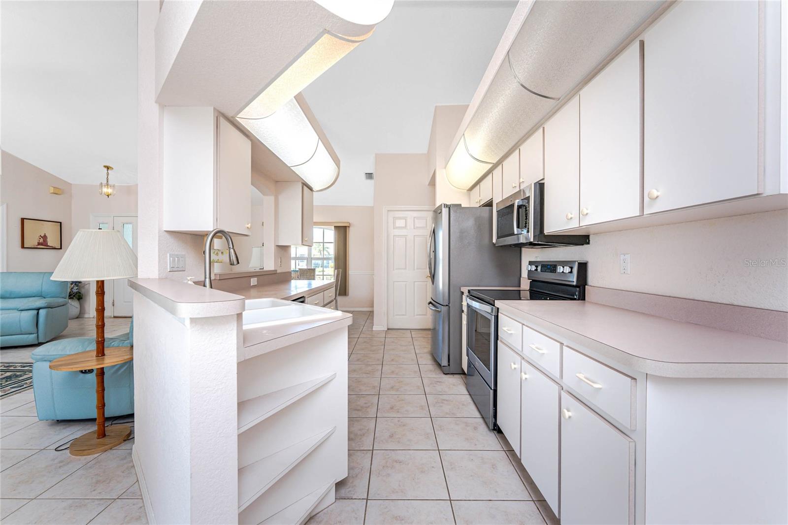 Que preço ótimo para este piscina de garagem de três quartos/2 banheiros/2 carros em um canal de água doce, em Rotonda West Pebble Beach! Esta casa é leve e brilhante, com uma planta baixa aberta. A área de estar possui piso de azulejos, um teto da catedral e ventilador de teto e uma prateleira de plantas, além de portas de vidro deslizantes que se abrem para o lanai. A área de jantar também possui piso de ladrilho e algum trilho de cadeira para um toque decorativo adicional! A cozinha do estilo da galera tem muitos armários e espaço de bancada, e aparelhos de aço inoxidável, incluindo: geladeira e máquina de lavar louça Frigidaire French Door, fogão superior liso da Whirlpool e GE construído em microondas. Desfrute do café da manhã no bar de café da manhã ou faça seu cereal na área da Dinette, onde há outro conjunto de portas de vidro deslizantes para o Lanai. O quarto principal tem uma caminhada, além de um armário de parede, ventilador de teto e outro conjunto de portas de vidro deslizantes para o Lanai. O banho primário apresenta piso de azulejos, uma vaidade de bacia dupla, chuveiro romano e armário de linho. Os quartos de hóspedes #2 e 3 têm piso acarpetado, ventiladores de teto e armários de parede, e o banho de hóspedes tem uma banheira/chuveiro combinada e porta para a área da piscina! Lavanderia interna tem uma lavadora e secadora de tamanho completo, banheira de utilidade e armários aéreos. A garagem de dois carros tem um abridor automático de porta de garagem e desça as escadas para fácil acesso ao sótão. O Lanai é o lugar perfeito para começar ou terminar o seu dia, com vista para a piscina cintilante e o canal de água doce. Apenas imagine -se flutuando pela piscina ou talvez fazendo um pouco de aeróbica aquática! O gabinete da piscina foi substituído em 2023, o telhado era novo em 2023 e o AC foi substituído em 2018. Rotonda West é uma comunidade de campos de golfe restrita, com baixas quotas anuais (apenas US $ 190), parque, parque, playground, água central e muitas pessoas amigáveis! Você está em poucos minutos para várias praias da área e compras, restaurantes de todos os tipos e pesca de classe mundial! Melhor não pensar muito sobre este!