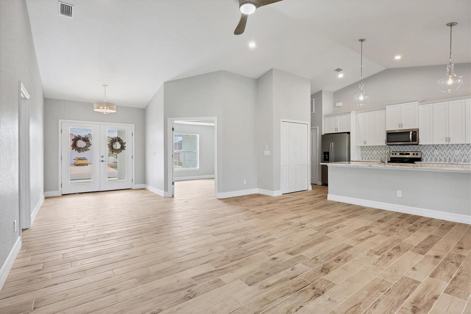 Uma ou mais fotos foram virtualmente encenadas. CELEBRE AS FÉRIAS NA SUA CASA NOVINHA COM PISCINA!! Esta IMPRESSIONANTE e NOVA casa de 3 QUARTOS e 2 BANHEIROS com ESPAÇO FLEX e GARAGEM GRANDE PARA 2 CARROS é o retiro de férias perfeito! Situada em uma das ruas mais desejáveis de Rotonda West, em um amplo terreno na **zona inundada X**, esta casa não só oferece tranquilidade com o aumento dos custos de seguro, mas também combina estilo excepcional e qualidade incomparável. A partir do momento em que você entra, você será cativado pelos altos tetos abobadados e pelo elegante piso de tábuas de madeira. A cozinha dramática é o sonho de qualquer chef, com uma BANCADA DE QUARTZO GRANDE, BACKSPLASH PERSONALIZADO, eletrodomésticos de aço inoxidável e duas despensas para armazenamento abundante. Adjacente à cozinha, a área de jantar formal oferece vistas tranquilas para a piscina, criando o espaço ideal para refeições e reuniões de férias. O entretenimento é muito fácil com acesso contínuo à ampla varanda coberta, completa com ventilador de teto, chuveiro externo e amplo espaço para grelhar e relaxar. A peça central do quintal é uma piscina cintilante de 26 x 13 pés com uma prateleira solar e deslumbrantes telhas de vidro de sereia, cercada por um enorme deck de pavimentação perfeito para se bronzear e relaxar. A suíte do proprietário é o seu oásis pessoal, com acesso direto à piscina, tetos em caixotões, armários duplos e um luxuoso banheiro com pia dupla de quartzo e box amplo com azulejos personalizados. Para família ou convidados, dois quartos espaçosos estão escondidos em um verdadeiro design de plano dividido, oferecendo o máximo de privacidade e compartilhando um banheiro lindamente decorado com box amplo e decoração personalizada em azulejos. Um espaço flexível com portas francesas e tetos em caixotões oferece infinitas possibilidades de personalização – é perfeito para um escritório doméstico, estúdio de ioga, sala de jogos ou área de estar adicional. A paleta de cores de inspiração costeira da casa cria uma atmosfera serena e convidativa por toda parte. Uma das poucas ruas de Rotonda com calçada, esta localização permite que você leve seus filhos para a escola ou dê um passeio enquanto desfruta de tranquilidade. Você também vai adorar a proximidade com a pesca de tarpões de classe mundial em Boca Grande, restaurantes sofisticados e praias de renome mundial. Por que esperar anos para construir quando você pode aproveitar as férias nesta casa deslumbrante? Agende seu passeio hoje e comece a criar lembranças em uma casa que está pronta para você agora mesmo!