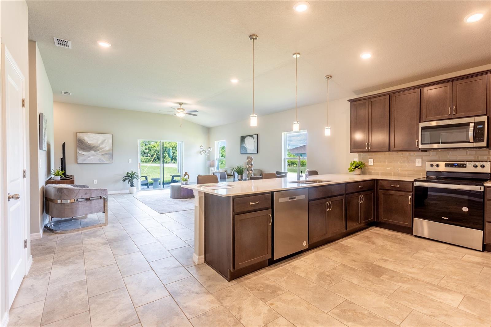 **NOVA CONSTRUÇÃO, NÃO ESPERE, MUDANÇA PRONTA!** (+$10.000 de incentivo FLEX CASH!) Eleve seu estilo de vida com a opulência da planta Sanibel apresentada pela Carpenter Homes - uma obra-prima da Florida Living Series, certificada pelo Florida Green Construindo Coalizão (FGBC). Esta casa dispõe de 4 quartos e 2 banheiros completos. Esta casa dos sonhos foi projetada e construída para mergulhar você no luxo. Ao entrar, uma bela cozinha lhe dá as boas-vindas, com um amplo bar que flui perfeitamente para a área de estar e de jantar. A delicadeza dos armários de 42 "de basalto manchado com fechamento suave, backsplash de ladrilho de metrô de vidro chanfrado Bliss Element Earth 3x9 e bancadas de quartzo Blanco Matrix atualizadas adicionam um toque funcional de luxo à cozinha. As atualizações de cozinha incluem uma torneira de cozinha cromada Moen Sleek, lixo disposição e eletrodomésticos elegantes de aço inoxidável com eficiência energética Esta casa exala sofisticação com um teto abobadado que revela uma varanda espaçosa, criando um refúgio interno e externo. Além disso, a Carpenter Homes oferece um pacote de iluminação de níquel escovado Robi atualizado, incluindo pingentes sobre o bar da cozinha. e luminárias em ambos os banheiros, acentuando o design geral de iluminação. Ventiladores de teto com acabamento em aço escovado Monte Carlo Linden em cada quarto, bem como na sala grande, ajudam a circular o fluxo de ar e a mantê-lo fresco no clima da Flórida. área é piso cerâmico Veneta Grigio 12x24. A suíte do proprietário é um santuário de indulgência, apresentando pias duplas, paredes impecavelmente revestidas de Magnisi White 8x12 no chuveiro e um closet de tamanho generoso. A casa possui paredes de azulejos Magnisi White 8x12 atualizadas na segunda banheira/chuveiro, um tampo de quartzo Blanco Matrix e torneiras cromadas Moen Genta LX e kits de acabamento para chuveiro/banheira. A amplitude desta casa continua com uma despensa e acréscimos como isolamento R-4.1 com eficiência energética em paredes externas de concreto, tubos Taexx para controle de pragas e venezianas de tecido para todas as janelas. O jardim paisagístico amigável da Flórida é complementado por um sistema de irrigação com sensor de chuva para ajudar a maximizar a eficiência. A ampla garagem para 3 carros, completa com dois controles remotos e quatro controles remotos, não só oferece amplo espaço para as suas necessidades diárias, mas também garante a máxima comodidade e versatilidade para todas as suas necessidades de armazenamento e estacionamento. Entre em um mundo onde a extravagância encontra uma vida ecologicamente consciente: sua casa eterna o aguarda, um testemunho da elegância atemporal e da sustentabilidade moderna. Disponível para visualização a qualquer momento!