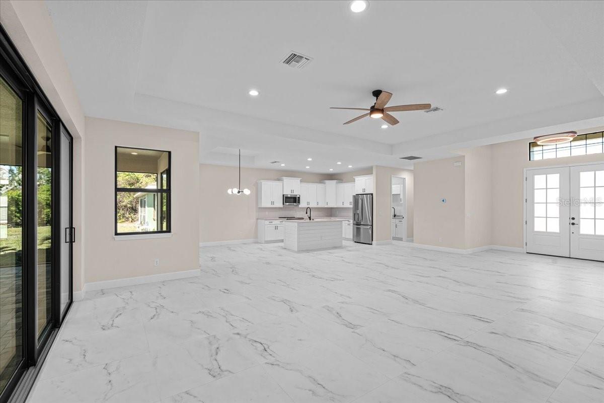 Bem-vindo ao 112 Sidney Ct na desejável comunidade de Rotonda Heights! Esta construção totalmente nova, construída pela JWM Residential LLC, está pronta para morar e repleta de recursos luxuosos. Situada em um terreno de esquina em uma zona de baixo risco X Inundação, esta deslumbrante casa de 3 quartos e 2 banheiros apresenta um design de conceito aberto com tetos de 9'4” e tetos de bandeja na sala de estar, área de jantar e Suíte Primária para acrescentou elegância. Saia para o seu oásis privado, com uma varanda protegida, um espaçoso deck de piscina pavimentada e uma piscina de concreto Pebble-Tec 21x12. A área da piscina está perfeitamente conectada à casa com controles deslizantes quádruplos na sala de estar, controles deslizantes triplos na área de jantar e acesso direto pela Suíte Primária. No interior, desfrute do piso de porcelanato, bancadas de quartzo e uma cozinha de chef completa com eletrodomésticos GE Profile atualizados, backsplash de azulejos e iluminação LED. A Suíte Primária oferece closets duplos, pias duplas, banheiro privativo e acesso à varanda. Os recursos adicionais incluem janelas, controles deslizantes e portas do Hurricane Impact, uma porta de garagem de 2,5 metros, iluminação LED embutida e uma grande lavanderia com armários completos. O belo jardim paisagístico é totalmente irrigado com um sistema RainBird e calhas contínuas de 360 graus proporcionam um gerenciamento eficiente da água. A varanda frontal texturizada em Spraycrete e o piso da garagem revestido com epóxi adicionam os toques finais perfeitos a esta casa incrível. Agende sua exibição hoje e faça do 112 Sidney Ct seu lar para sempre!