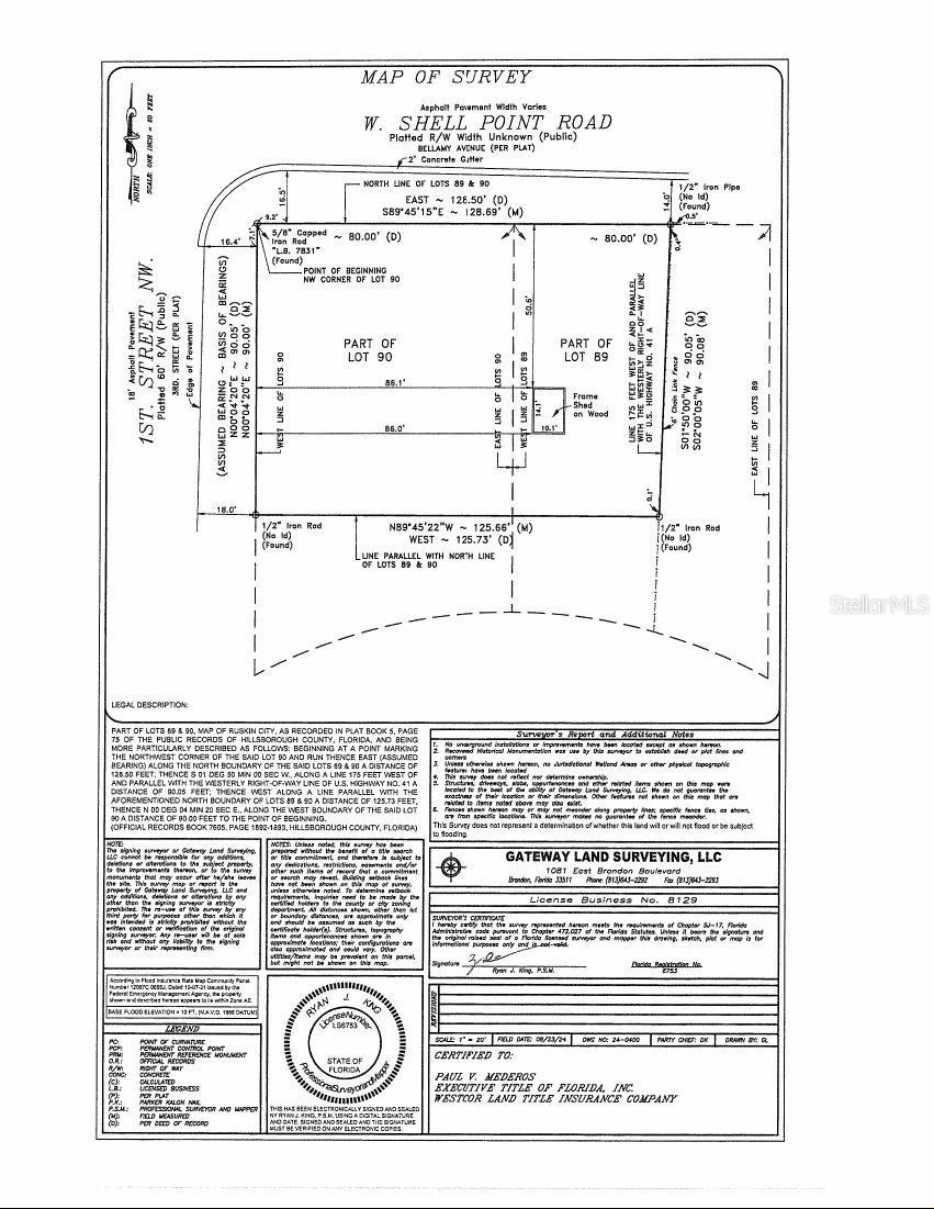 MAPA DA CIDADE DE RUSKIN DE PARTE DOS LOTES 89 E 90 DESC COMO COMEÇA EM NW COR DO LOTE 90 THN E ALG N BDRY DOS LOTES 89 E 90 A DIST DE 128,50 FT THN S 01 DEG 50 MIN W ALG A LINE 175 FT W OF E PARALLEL COM WLY R/W DE US HWY 41 A DIST DE 90,05 FT THN W ALG LINE PARALELO COM SD NLY BDRY 125,73 FT PARA PT EM WLY BDRY DO LOTE 90 THN N ALG SD W BDRY 90,00 FT PARA POB