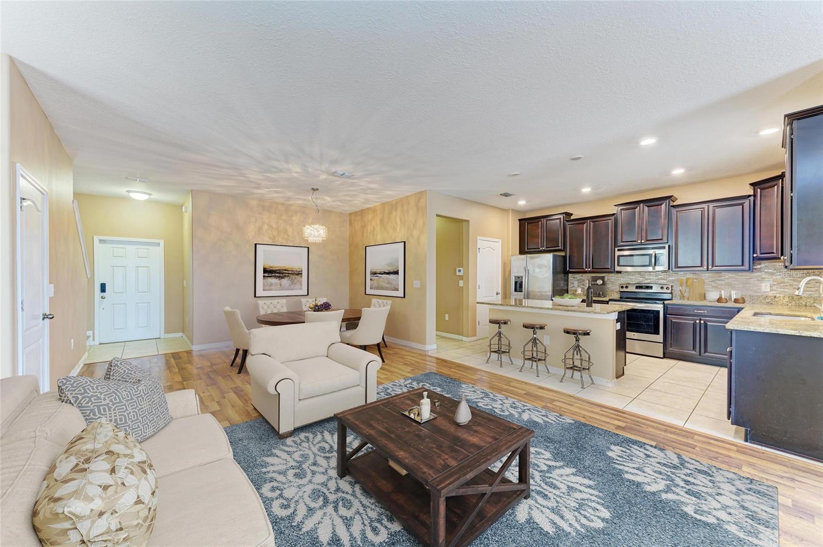 Pitoresco, deslumbrante e espaçoso, esta linda propriedade está simplesmente esperando para se tornar sua próxima casa de sonho. Com quase 2.500 pés quadrados de vida, não faltam espaço para se espalhar! O primeiro andar oferece um layout aberto e altamente desejável. O sonho de um artista, a cozinha tem granito elegante, armários elegantes escuros, utensílios de aço inoxidável, backsplash elegante e está completamente aberto aos enormes espaços de vida e jantar. Para o deleite do chef, divertido neste espaço é uma brisa! Além da suíte master, o segundo andar possui um loft versátil/sala aberta, três grandes quartos secundários, banheiro espaçoso e uma lavanderia bem decorada. A suíte master oferece o lugar perfeito para relaxar, aproveitar e tratar um pouco de luxo. A sala em si é considerável e apresenta não apenas um, mas dois armários. Com uma vibração semelhante ao spa, o banheiro principal exala tranquilidade com uma banheira linda e chuveiro separado. O quintal privado é o espaço perfeito para desfrutar do nosso clima altamente cobiçado da Flórida. Reúna-se ao redor da fogueira sob a pérgola para desfrutar de noites divertidas ou saborear seu café da manhã no lanai exibido. Hawks Point é uma comunidade fechada e rica em amenidades, com fácil acesso a Tampa, St. Pete e Sarasota!