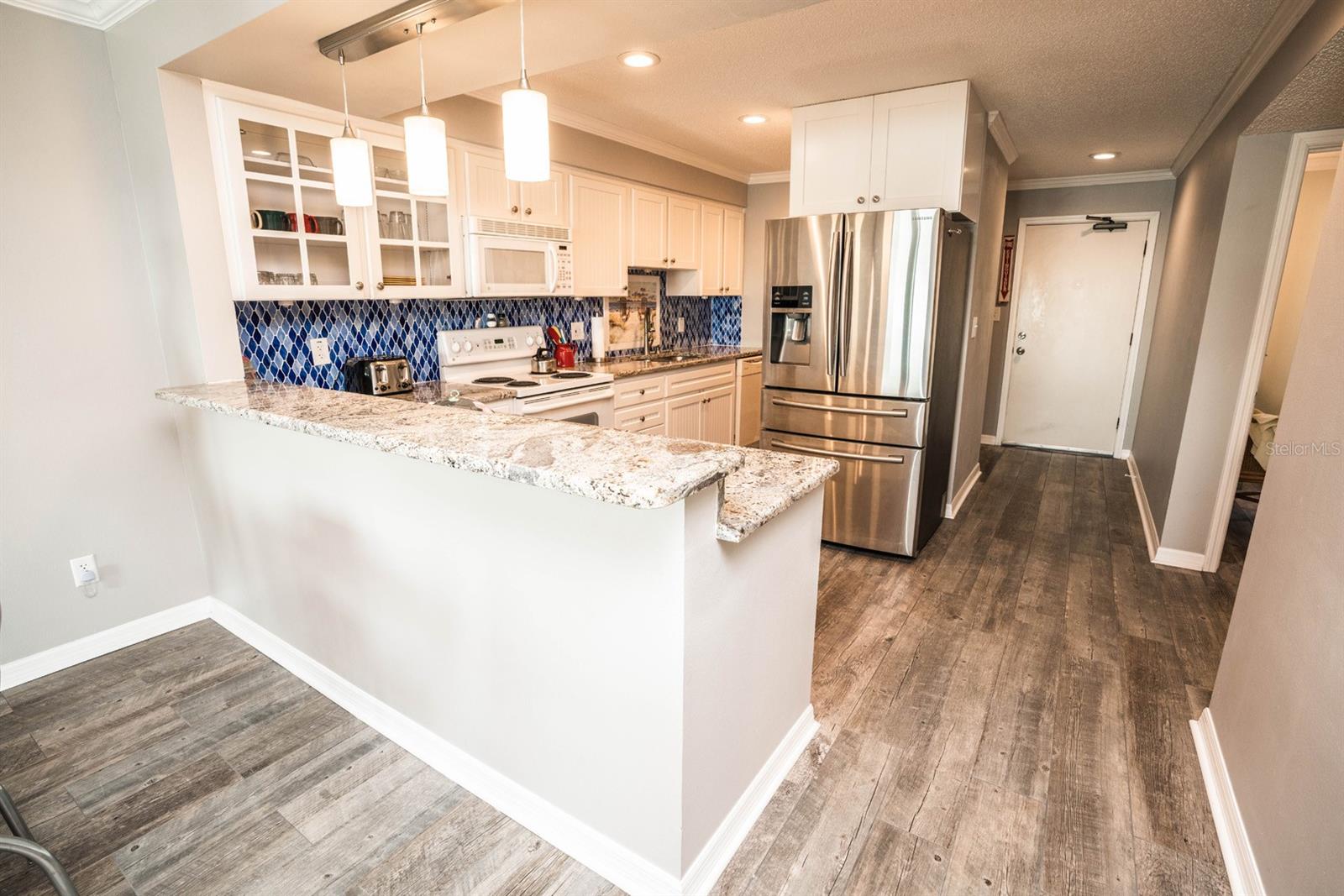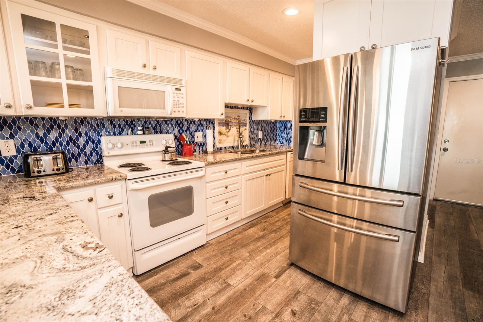 Condomínio leve e espaçoso, bem mobiliado, dois quartos e dois banheiros. 2019 instalou janelas anti-furacão e portas de correr com coloração adicional para ajudar na economia de energia. Porcelanato, madeira em todo condomínio. Os armários da cozinha e do banheiro foram atualizados e revestidos com bancadas de granito. As adições à cozinha incluem uma copa e uma vitrine de vidro. Há um backsplash de vidro exclusivo com um mural de praia atrás da pia. Existem muitas gavetas e prateleiras extraíveis adicionais para fácil acesso. O banheiro principal tem box amplo de vidro com design de cascata de vidro e piso de pedra para maior conforto. O banheiro secundário foi atualizado com azulejos e vidro. Cada armário do quarto adicionou organizadores para mais armazenamento. Um armário do proprietário para roupas extras ou armazenamento. Molduras de coroa e novos rodapés em todos os quartos contribuem para a aparência atualizada. Vista panorâmica espetacular da Baía de Tampa.