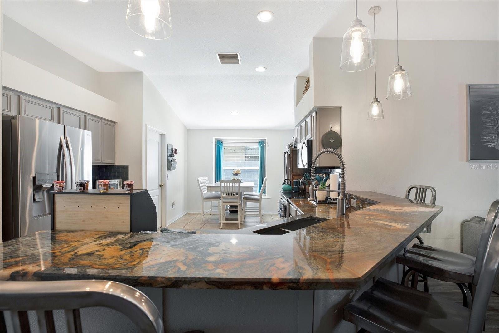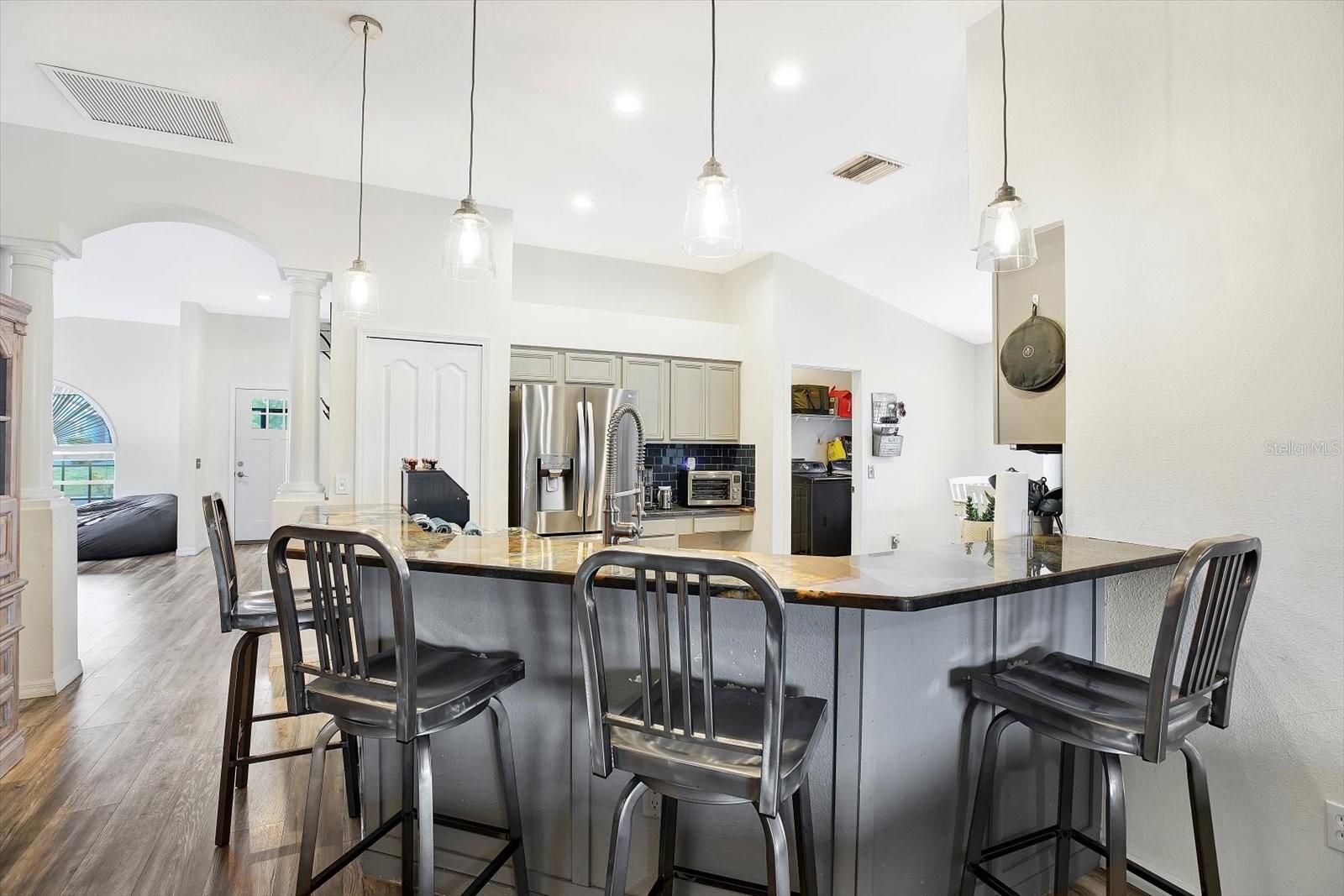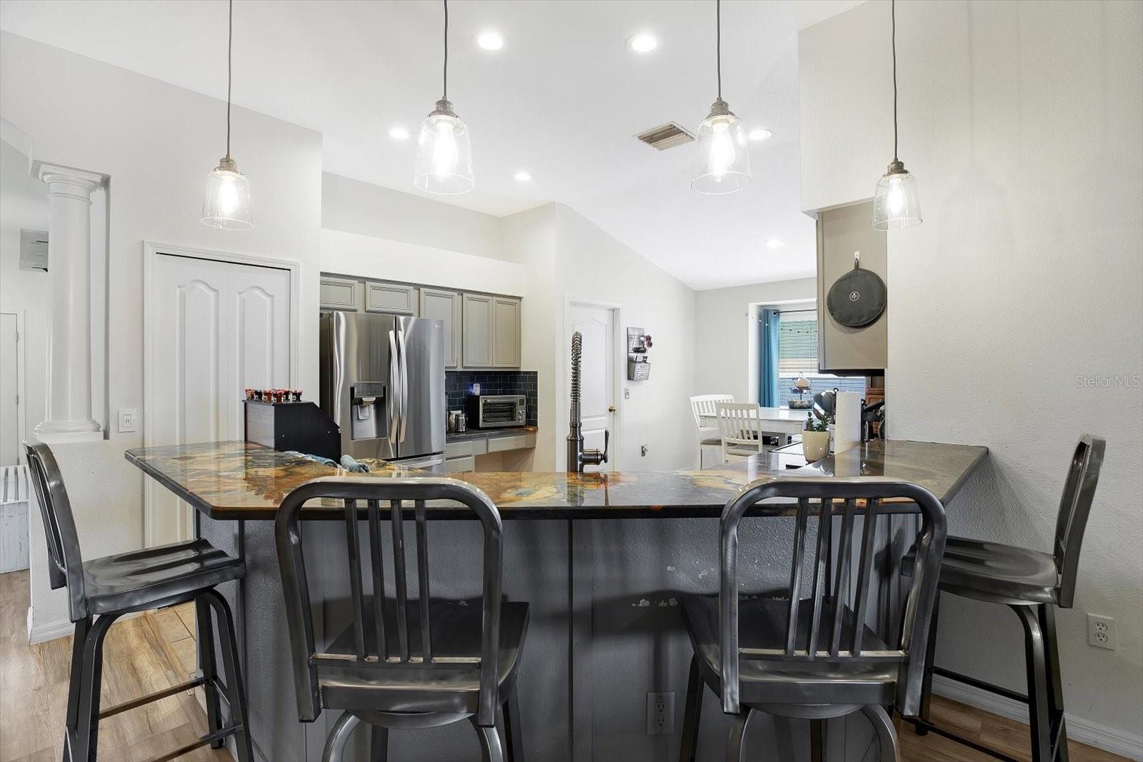 BEM-VINDO A ESTA BELA PROPRIEDADE À BEIRA-MAR! O VENDEDOR ESTÁ OFERECENDO US$ 4.500 PARA PINTURA INTERIOR. Situada à beira-mar tranquila, esta deslumbrante casa de 4 quartos e 2 banheiros oferece um refúgio sereno. Entre e seja recebido por belos pisos laminados e tetos altos que criam um ambiente arejado e aberto. A planta baixa flexível oferece duas opções distintas de sala de estar, perfeitas para entreter ou relaxar com estilo. A COZINHA ATUALIZADA é o sonho de um chef, ostentando bancadas de granito coloridas, eletrodomésticos atualizados e amplo espaço nos armários. A cozinha também vem equipada com SISTEMA DE PURIFICAÇÃO DE ÁGUA, OSMOSE INVERSA, AMACIADOR DE ÁGUA E FILTRAGEM DE ÁGUA. Prepare obras-primas culinárias enquanto aprecia a vista da água através das portas francesas. PISOS LAMINADOS DE CLASSIFICAÇÃO AC4 fluem pelas principais áreas de estar, oferecendo beleza e durabilidade. Fuja para a varanda frontal, o local ideal para relaxar com um café da manhã ou um coquetel à noite enquanto aprecia o ambiente tranquilo. A luxuosa suíte master é um verdadeiro retiro, com vista externa para o belo lago que proporciona uma vista perfeita pela manhã ou à tarde enquanto relaxa. A suíte master oferece a opção de chuveiro walk-in ou um relaxante banho na banheira. Três quartos adicionais bem equipados oferecem amplo espaço para a família ou convidados. As atualizações recentes incluem um NOVO TELHADO em 2022, garantindo tranquilidade nos próximos anos, novo REFRIGERADOR e MICROONDAS 2023, St. 2019. Entre na varanda dos fundos com CERCADO no quintal, que é um ótimo refúgio, aproveite o tempo com a família e amigos ou observe o lindo pôr do sol. Localizado próximo ao GOLFO DO MÉXICO, LOJAS, RESTAURANTES, PISCINA COMUNITÁRIA e fácil acesso à I-75. Esta COMUNIDADE FECHADA vem com PATRULHA DE SEGURANÇA 24 horas para ajudar seus proprietários a se sentirem seguros e tranquilos. Com sua localização privilegiada à beira-mar, layout aberto e acabamentos de alta qualidade, esta casa realmente tem tudo. Não perca a oportunidade de torná-lo seu!