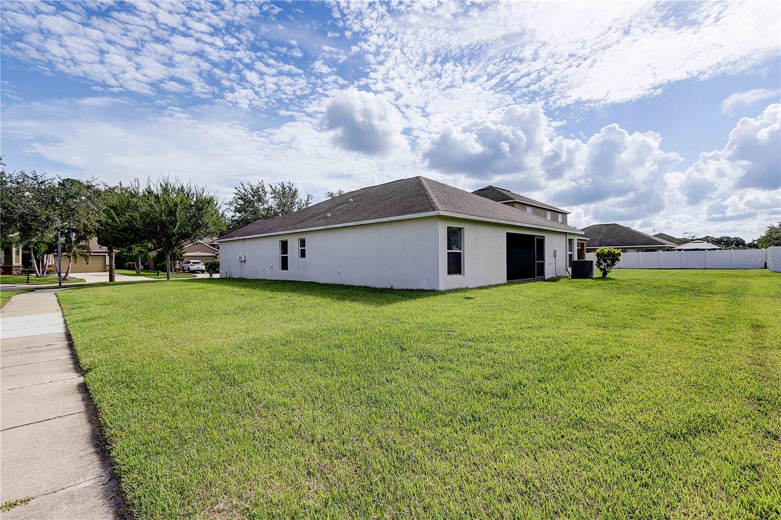 Casa espaçosa de esquina com 4 quartos e 3 banheiros localizada no condomínio River Bend. Esta casa possui garagem para 2 carros, entrada frontal coberta e com tela, além de pátio nos fundos com ventilador de teto. Melhorias recentes incluem exterior recém-lavado sob pressão, paisagismo e pintura interior fresca. Você vai adorar a maravilhosa planta aberta com quartos divididos que têm o quarto principal localizado na parte traseira com seu próprio grande banheiro privativo e closet. Cozinha ampla com bancada em granito, armários de madeira, eletrodomésticos em inox, pia dupla, teto abobadado e bar para assentos adicionais. A lavanderia fica ao lado da cozinha com porta própria para maior comodidade. A sala de jantar formal oferece um excelente espaço separado da área de estar principal. Além disso, a grande sala oferece vista para o pátio traseiro, bem como teto abobadado e ventilador de teto. A casa tem venezianas e sistema de irrigação/aspersores. Basta uma rápida caminhada até todas as comodidades quando você sair. As comodidades da comunidade de River Bend incluem: piscinas, parque aquático, academia, clube, quadras de tênis, playground e parque para cães. A localização é conveniente para Tampa, Aeroporto de Tampa, principais estradas interestaduais e hospitais, bem como praias, lojas e restaurantes. Ligue para um tour hoje!