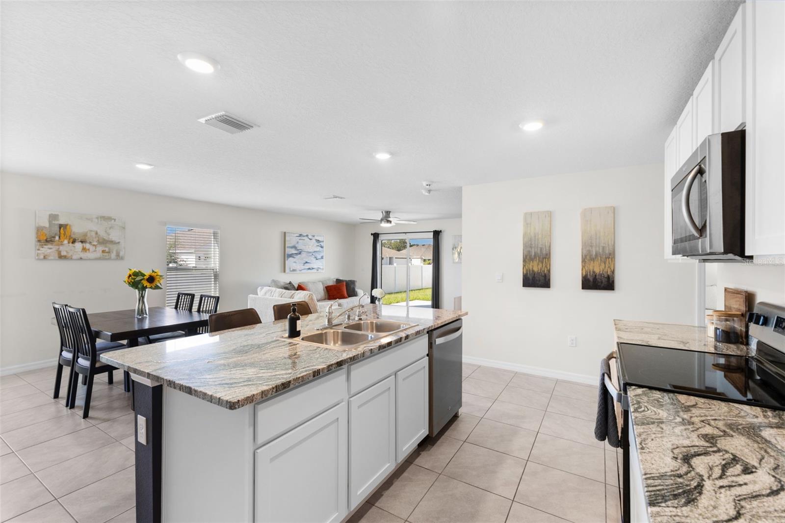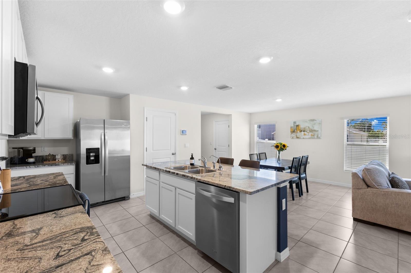 Imagem perfeita, como NOVA, casa de canto com 5 quartos e 3 banheiros - pronta para morar! Esta casa de 2.522 pés quadrados, construída em 2022, está repleta de estilo moderno e atualizações cuidadosamente elaboradas. O layout de conceito aberto apresenta uma cozinha impressionante com armários brancos, bancadas de granito e eletrodomésticos de aço inoxidável, despensa, fluindo perfeitamente para as áreas de jantar e de estar - perfeita para reuniões. Um quarto no andar de baixo e um banheiro completo oferecem privacidade aos hóspedes. No andar de cima, um loft versátil e uma lavanderia ampla acompanham uma impressionante suíte principal com banheiro privativo e um espaçoso closet. Três quartos adicionais compartilham um banheiro lindamente decorado. Atualizações com eficiência energética garantem contas de energia elétrica baixas, enquanto o piso de cerâmica e o carpete macio aumentam o apelo da casa. Situado em um terreno de esquina totalmente cercado, o espaço ao ar livre possui um pátio estendido de 15' x 23', ideal para relaxar ou se divertir. Os recursos de segurança incluem câmeras externas e alarmes de fumaça monitorados para maior tranquilidade. Transportando com a casa estão os principais eletrodomésticos, uma TV montada na parede, persianas metálicas e armazenamento personalizado. Esta casa especial é a combinação perfeita de estilo e conforto - sem mencionar as comodidades em estilo resort que você procura para aqueles fins de semana divertidos na Flórida à beira da piscina! Agende seu passeio hoje mesmo!