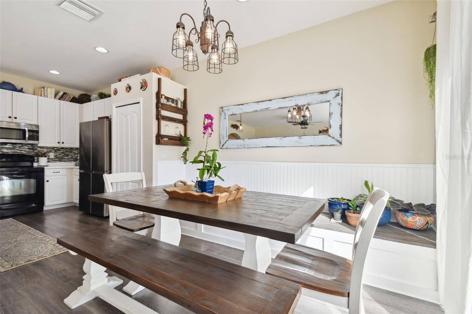 Bem-vindo ao Bahia Lakes, uma comunidade costeira serena situada perto das águas cristalinas da Baía de Tampa. Ao chegar a esta encantadora casa de 3 quartos e 2 banheiros, você será recebido por um paisagismo lindamente cuidado que emoldura o exterior convidativo. Entre para descobrir um espaço repleto de luz, onde os tetos altos e a abundante luz natural criam uma atmosfera calorosa e acolhedora. O layout de conceito aberto conecta facilmente a grande sala, a cozinha e a área de jantar, tornando-o perfeito para relaxar e se divertir. A cozinha possui um balcão generoso para café da manhã com amplo espaço para sentar em banquetas, complementado por elegantes eletrodomésticos de aço inoxidável, armários brancos imaculados, um backsplash moderno e uma despensa para armazenamento extra. A sala de jantar oferece um aconchegante banco embutido com detalhes em beadboard, agregando personalidade e charme ao espaço. A ampla suíte do proprietário é um verdadeiro refúgio, com um espaçoso closet e banheiro privativo. Esta planta baixa de quartos divididos bem projetada garante privacidade, com os quartos de hóspedes convenientemente localizados perto do banheiro de hóspedes. Uma lavanderia interna agrega comodidade à sua rotina diária. No exterior, o grande quintal vedado é o seu oásis privado, oferecendo muito espaço para adicionar uma piscina, se desejar. Um caminho leva a uma área com fogueira - perfeita para noites passadas com amigos e familiares. Bahia Lakes oferece taxas HOA acessíveis e comodidades maravilhosas, incluindo um clube à beira do lago com piscina comunitária, playground e trilhas panorâmicas que serpenteiam pelo bairro. A poucos minutos da E.G. Simmons Park, você terá fácil acesso a camping, praia pública e atividades aquáticas ao longo da Baía de Tampa. Com a proximidade da US-41 e da I-75, viajar para Tampa, São Petersburgo ou Sarasota é muito fácil. Não perca esta casa convidativa - agende sua exibição hoje mesmo!