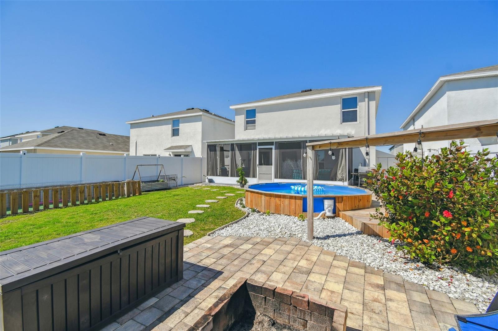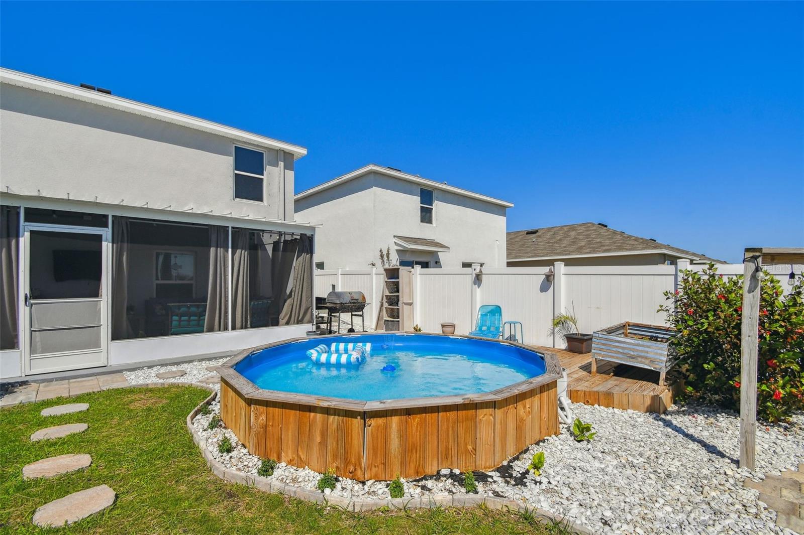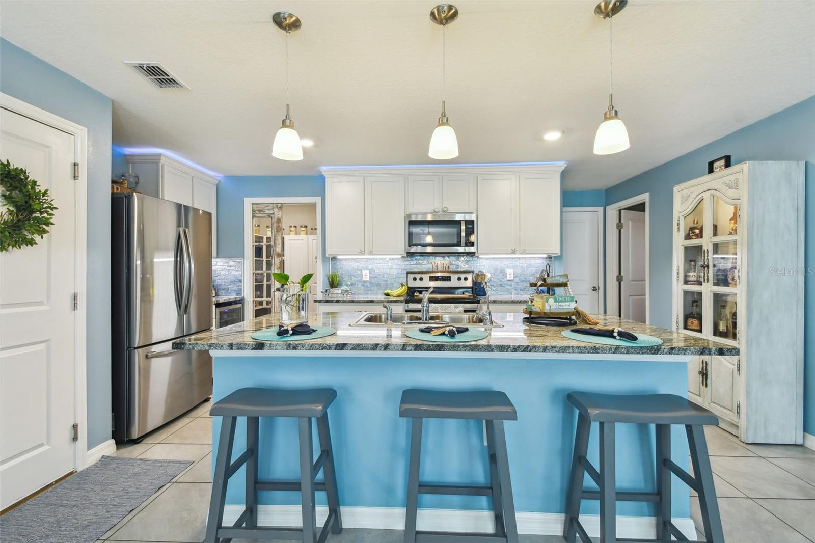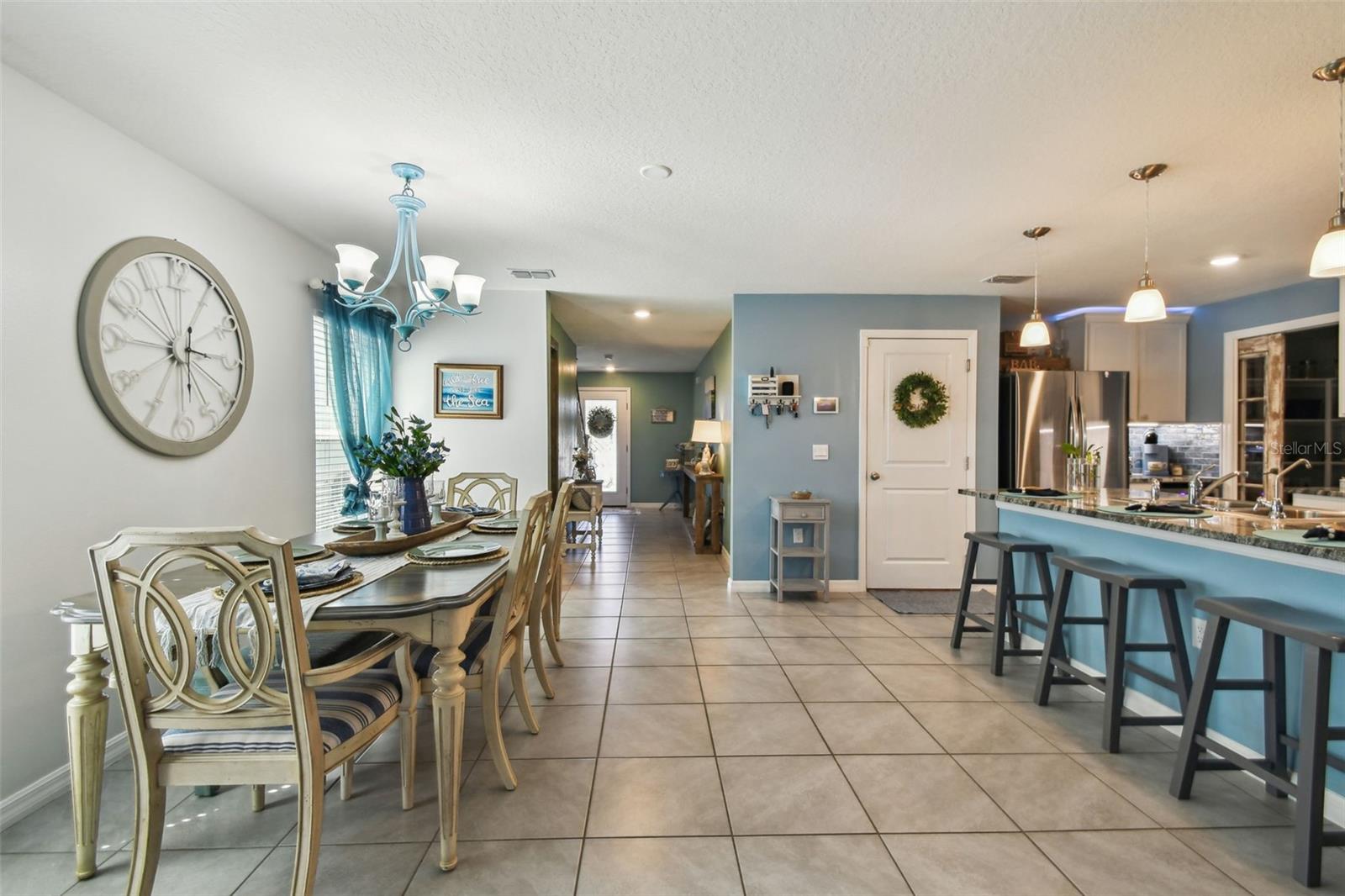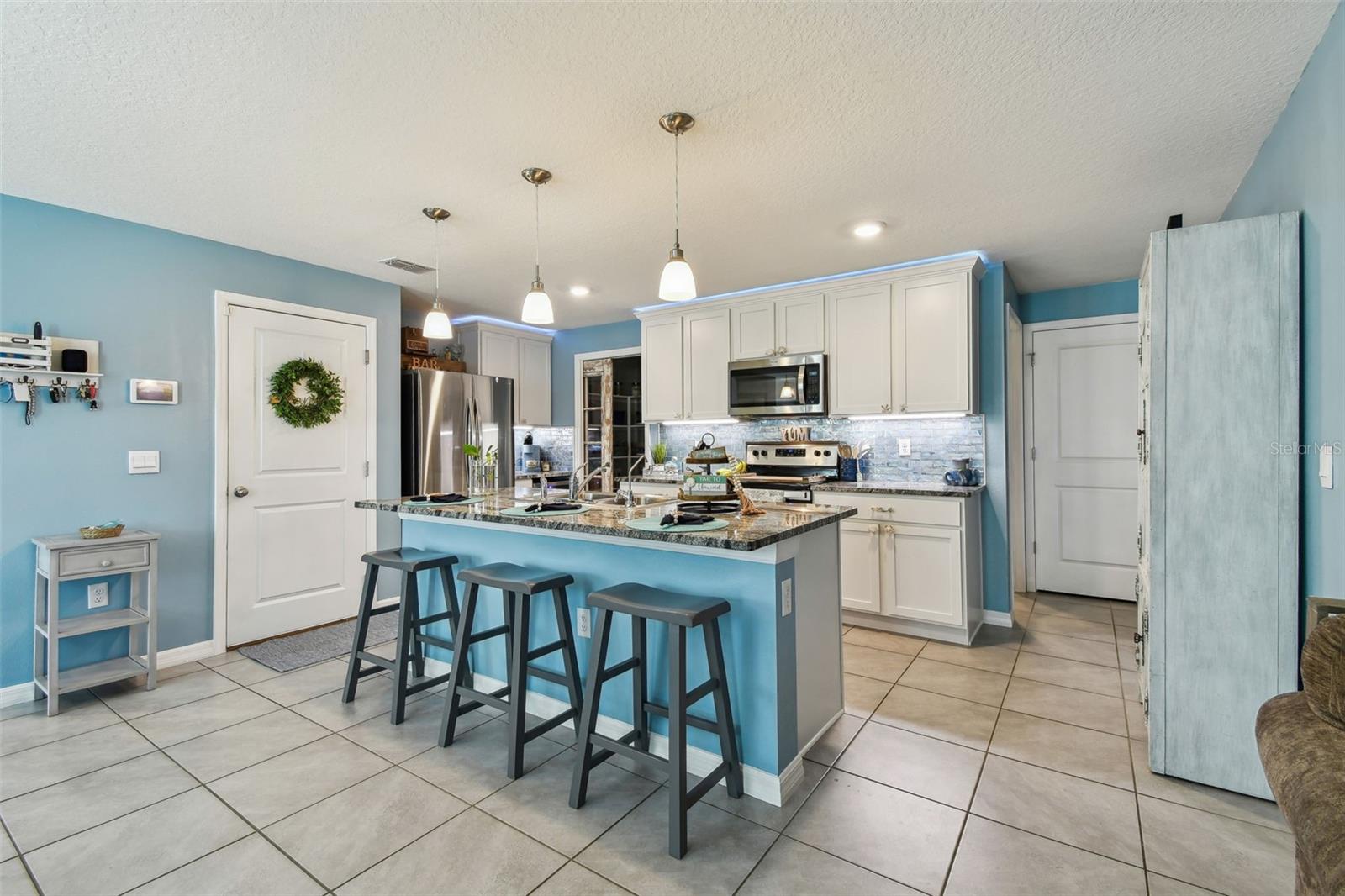 Aninhado em uma rua tranquila em Shell Cove, esta requintada residência de 5 quartos e 3 banheiros oferece um ambiente sereno com vista para uma lagoa cênica e fica a uma curta caminhada do outro lado da rua do centro comunitário. O paisagismo personalizado meticulosamente projetado define um tom notável para os recursos interiores personalizados da casa. Ao entrar pela porta da frente de vidro de chumbo, você é recebido por um espaçoso hall de entrada com elegantes pisos de ladrilhos de cerâmica e uma escada de piso de madeira lindamente criada que leva ao segundo andar. Adjacente ao hall de entrada, um recanto de entrada cuidadosamente projetado embaixo da escada serve como uma zona de queda ideal ou área para animais de estimação. Além disso, o espaço de vida de conceito aberto flui perfeitamente entre a sala de jantar, a cozinha e a sala da família, todos adornados com piso de azulejos de cerâmica. A sala de jantar é banhada em luz natural, criando uma atmosfera acolhedora. A cozinha é o sonho de um entusiasta da culinária, apresentando uma grande ilha com três lindas luzes pendentes, utensílios de aço inoxidável (incluindo uma geladeira com apenas um ano de idade e uma geladeira de bebida que é apenas dois), armários altos, um backsplash de um backsplash, que se move a um lanchonete. A despensa de grandes dimensões possui amplo prateleiras e uma porta de bolso de vidro antigo que adiciona um toque único de caráter. O espaçoso quarto da família é perfeito para relaxar e inclui uma porta de vidro deslizante que leva ao seu retiro tropical privado. A extensa, coberta e exibida, oferece uma fuga pacífica ao ar livre, enquanto o grande quintal possui uma piscina, a fogueira, a pérgola com giro e acessórios de rede e uma cerca de privacidade de PVC que ainda fornece vistas desobstruídas do lago cênico. No primeiro andar, você também encontrará um quarto de hóspedes de tamanho generoso com um closet e um banheiro completo com um chuveiro. Suba a bela escada com degraus de carvalho até o segundo andar, onde você será recebido por um loft impressionante com piso de tábuas de vinil de luxo e uma estante de livros personalizada. A suíte master é um verdadeiro santuário, com um layout expansivo e um grande closet. As portas de celeiro personalizadas duplas levam ao elegante mestre Bathro