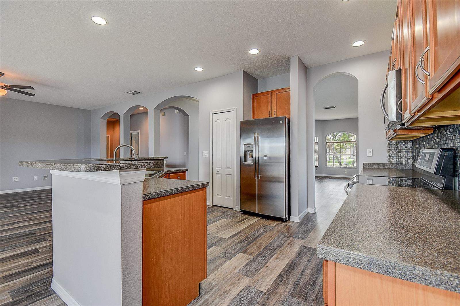 Bem-vindo a esta encantadora residência de um andar, aninhada no coração de um condomínio fechado, oferecendo uma mistura perfeita de conforto, conveniência e estilo. Com quatro quartos espaçosos e dois banheiros completos, esta casa se estende por mais de 2.300 pés quadrados de espaço aquecido, com uma área total de 3.277 pés quadrados, garantindo muito espaço para a vida cotidiana e o entretenimento. As you step inside, you are greeted by an open floorplan that seamlessly connects the main living areas. The high ceilings and an abundance of natural light create a welcoming atmosphere, making this home feel bright and airy. The living room, a central gathering space, flows effortlessly into the kitchen and dining areas, perfect for hosting family and friends. A cozinha, projetada com forma e função em mente, apresenta uma variedade de aparelhos, incluindo uma cozinheira, lava -louças, microondas e geladeira, além de amplo espaço para a preparação das refeições. A cozy eating space in the kitchen adds an intimate touch for casual dining. O layout do quarto dividido garante a privacidade dos proprietários, com o quarto principal localizado em um lado da casa e os três quartos secundários do outro. The primary bedroom is generously sized, with a walk-in closet providing ample storage space for all your belongings. Os outros três quartos, embora não estejam equipados com armários embutidos, oferecem flexibilidade para uso como quartos, escritórios domésticos ou salas de hobby para atender às suas necessidades pessoais. Destaques adicionais da casa incluem uma sala familiar grande, perfeita para noites de cinema ou relaxamento e uma sala brilhante da Flórida que oferece espaço adicional com vistas para os arredores lindamente paisagísticos. A casa também oferece recursos convenientes, como ventiladores de teto, vinil e piso acarpetado, janelas de tempestade e uma lavanderia em tamanho normal com conexões para uma lavadora e secadora. Saia do pátio fechado, onde você pode apreciar a vista serena da água do lago próximo, fornecendo o cenário perfeito para reuniões ao ar livre ou reflexão silenciosa. A comunidade também possui uma variedade de comodidades, incluindo um clube, parque, playground, piscina comunitária e quadras de tênis, garantindo que os moradores sempre tenham algo para desfrutar a poucos passos da porta da frente. Com um quintal bem conservado, uma garagem de três carros e um espaço de estacionamento adicional, esta casa oferece tudo o que você precisa para viver confortavelmente e em grande estilo. Situado em um lote de 0,16 acres, a propriedade é perfeita para quem deseja desfrutar de um estilo de vida de baixa manutenção com acesso a comodidades excepcionais. Isso é mais do que apenas um lar; it’s a lifestyle waiting for you. Se você está procurando um espaço espaçoso e pronto para casa, com espaço para crescer, em uma comunidade que oferece todas as conveniências modernas de que você precisa, não procure mais. This property truly has it all.