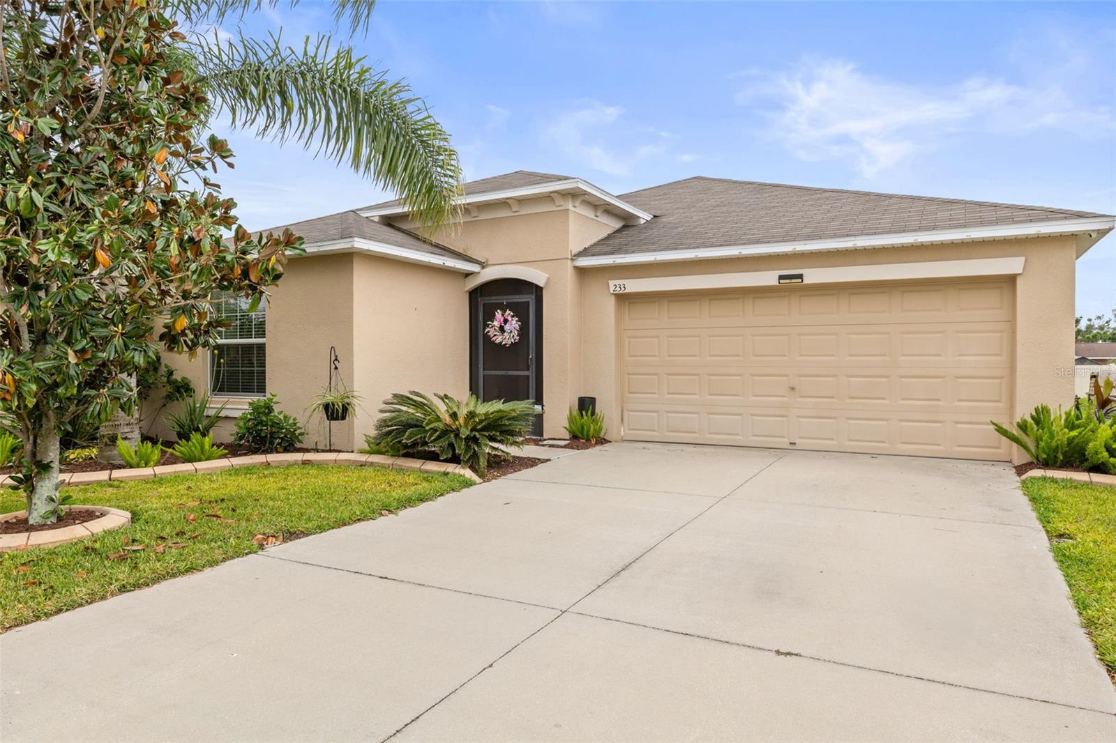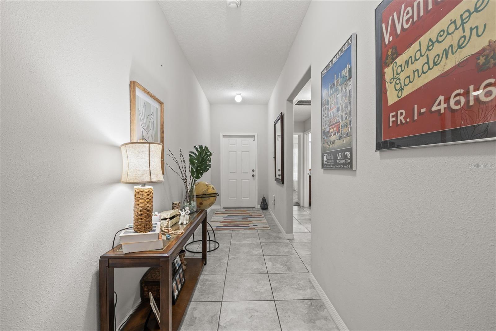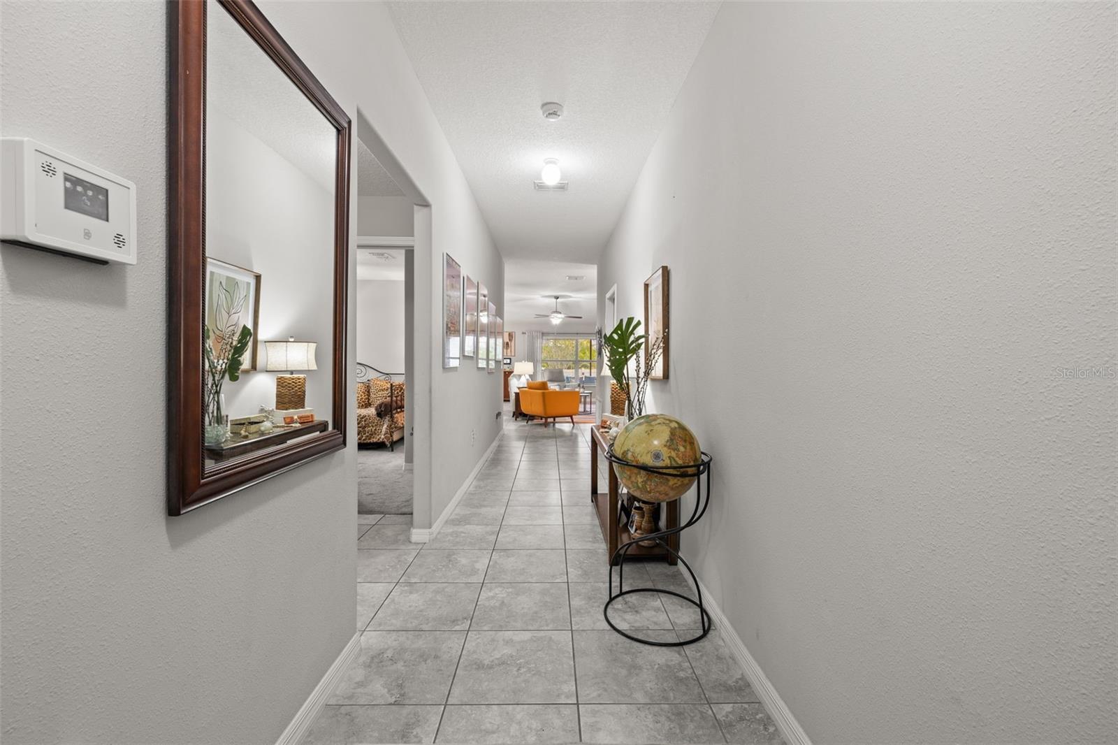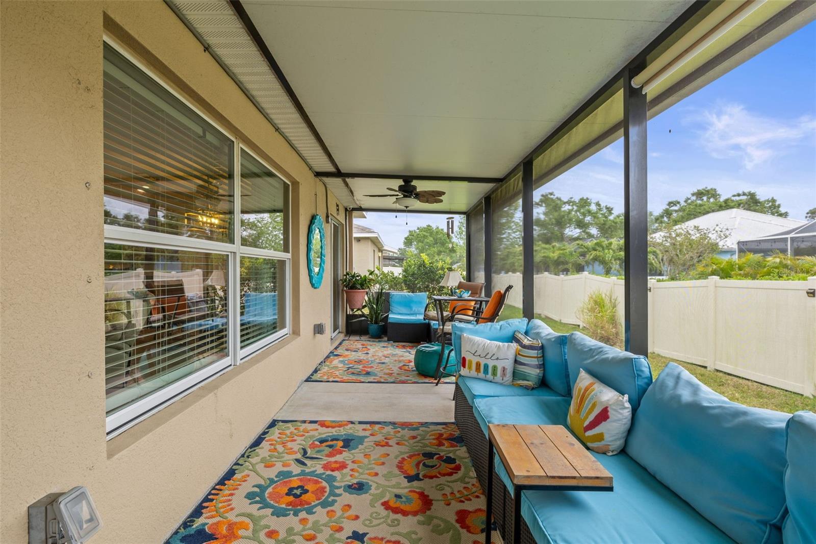 Bem-vindo de casa nesta residência lindamente mantida de 4 quartos e 2 banheiros, aninhada em um bairro tranquilo com muitas comodidades comunitárias, incluindo uma piscina espumante, vários parques, playgrounds e um parque de cães dedicado a um curto passeio. Entre neste imaculadamente mantido em casa através de uma entrada exibida e, em seguida, através da porta da frente na belo piso de azulejo cinza que flui por todas as principais áreas de estar. Os quartos secundários estão todos posicionados na frente da casa e compartilham um banheiro com uma combinação de chuveiro/banheira e vaidade de altura de conforto. Todos os quartos são acarpetados. O coração da casa é uma grande sala de conceito aberto, área de jantar e combinação de cozinha-perfeita para a vida cotidiana, divertida e fazer memórias. The kitchen features 42” wood cabinets, sleek laminate countertops with a granite look, decorative backsplash, a center island, and all appliances are included. The spacious primary suite, located in the back of the home, offers a private retreat with a barn-door entry to an en-suite bathroom featuring dual comfort-height vanities, a walk-in glass shower, private toilet area, and a generously sized walk-in closet. Step outside through the sliding doors Fora da área de jantar em um grande e exibido Lanai com fãs de teto duplo-prontos para a sua TV externa ou uma configuração divertida.