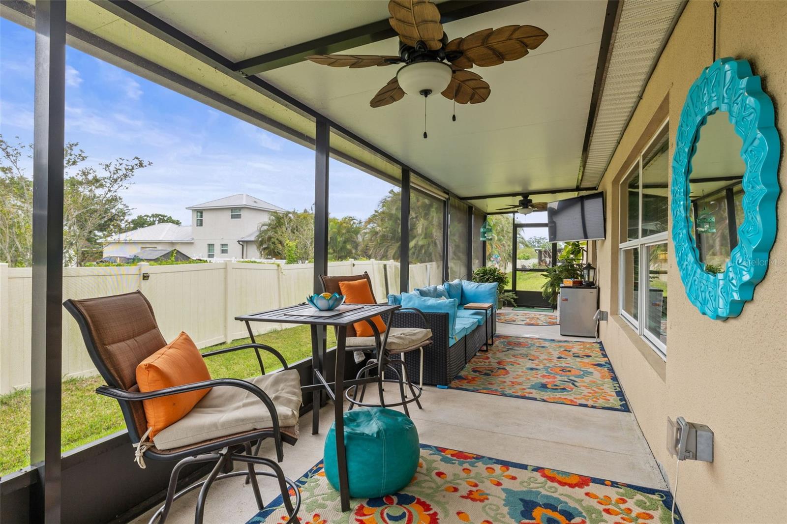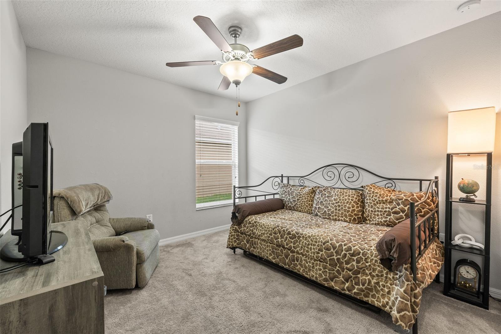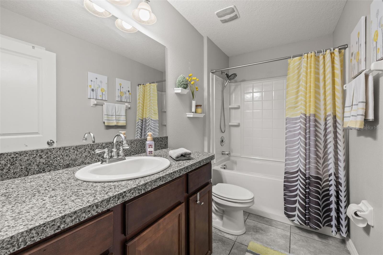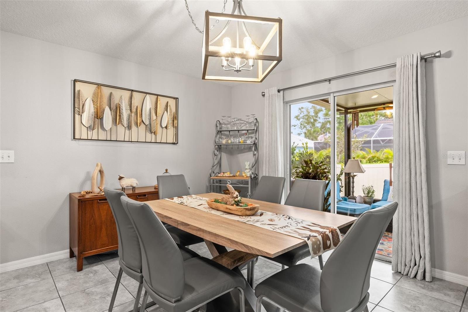 Bem-vindo de casa nesta residência lindamente mantida de 4 quartos e 2 banheiros, aninhada em um bairro tranquilo com muitas comodidades comunitárias, incluindo uma piscina espumante, vários parques, playgrounds e um parque de cães dedicado a um curto passeio. Entre neste imaculadamente mantido em casa através de uma entrada exibida e, em seguida, através da porta da frente na belo piso de azulejo cinza que flui por todas as principais áreas de estar. Os quartos secundários estão todos posicionados na frente da casa e compartilham um banheiro com uma combinação de chuveiro/banheira e vaidade de altura de conforto. Todos os quartos são acarpetados. O coração da casa é uma grande sala de conceito aberto, área de jantar e combinação de cozinha-perfeita para a vida cotidiana, divertida e fazer memórias. The kitchen features 42” wood cabinets, sleek laminate countertops with a granite look, decorative backsplash, a center island, and all appliances are included. The spacious primary suite, located in the back of the home, offers a private retreat with a barn-door entry to an en-suite bathroom featuring dual comfort-height vanities, a walk-in glass shower, private toilet area, and a generously sized walk-in closet. Step outside through the sliding doors Fora da área de jantar em um grande e exibido Lanai com fãs de teto duplo-prontos para a sua TV externa ou uma configuração divertida.