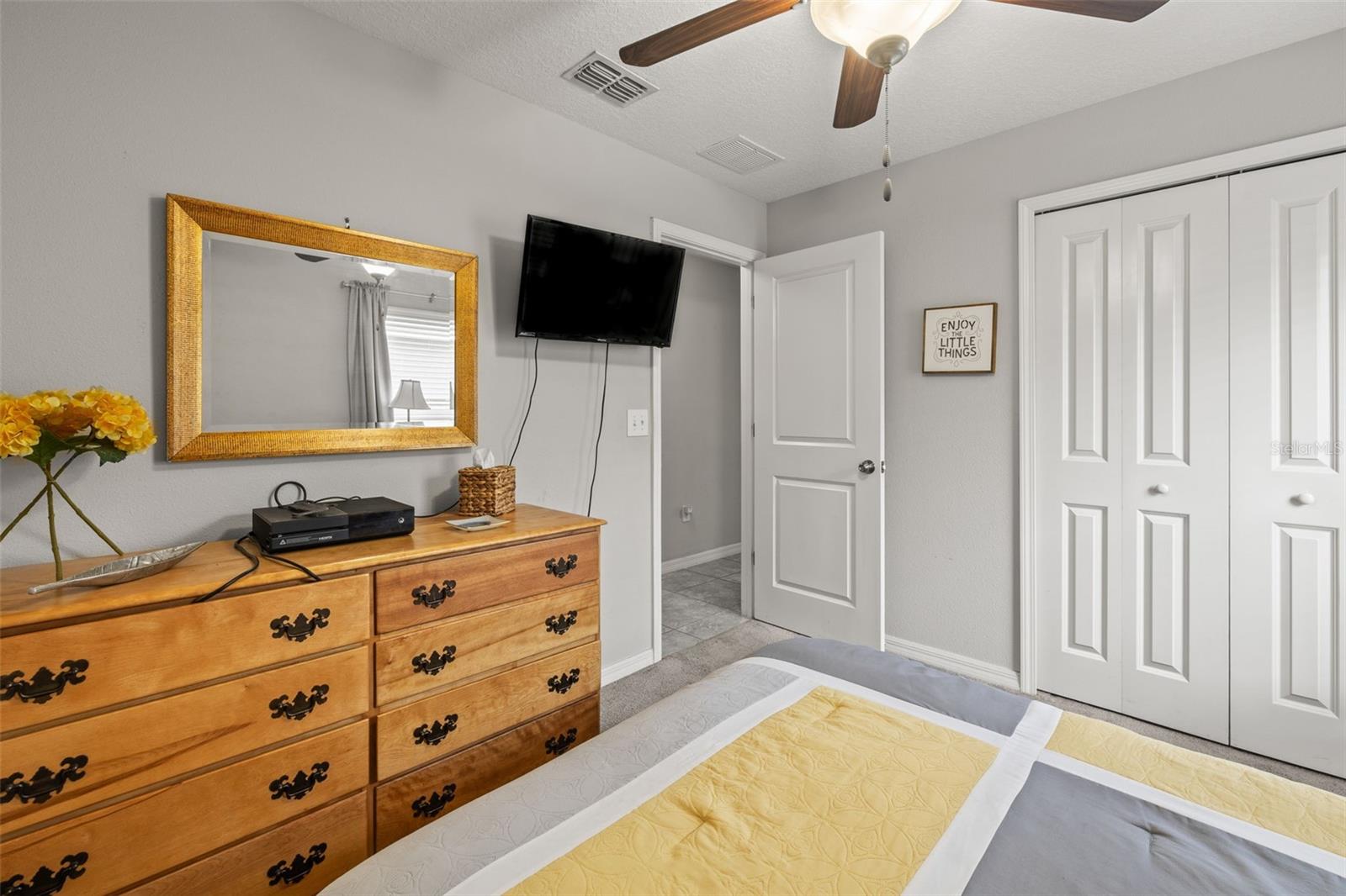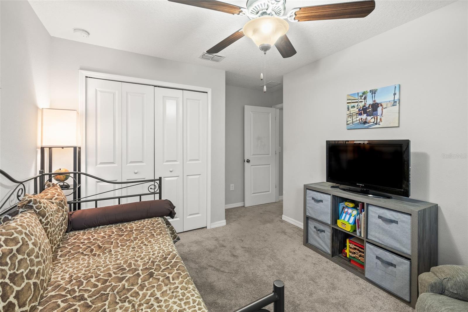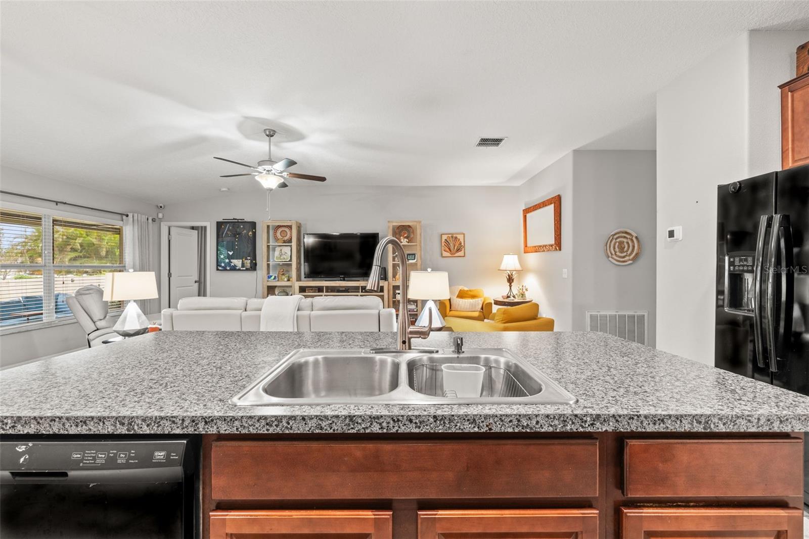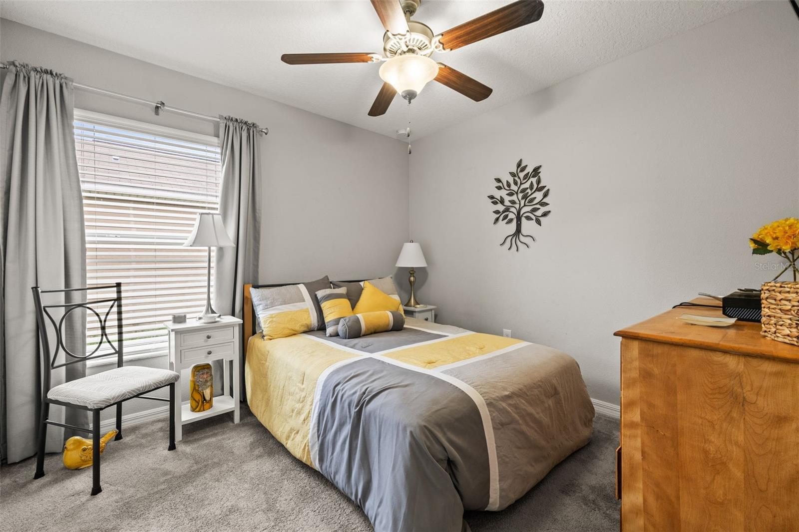 Bem-vindo de casa nesta residência lindamente mantida de 4 quartos e 2 banheiros, aninhada em um bairro tranquilo com muitas comodidades comunitárias, incluindo uma piscina espumante, vários parques, playgrounds e um parque de cães dedicado a um curto passeio. Entre neste imaculadamente mantido em casa através de uma entrada exibida e, em seguida, através da porta da frente na belo piso de azulejo cinza que flui por todas as principais áreas de estar. Os quartos secundários estão todos posicionados na frente da casa e compartilham um banheiro com uma combinação de chuveiro/banheira e vaidade de altura de conforto. Todos os quartos são acarpetados. O coração da casa é uma grande sala de conceito aberto, área de jantar e combinação de cozinha-perfeita para a vida cotidiana, divertida e fazer memórias. The kitchen features 42” wood cabinets, sleek laminate countertops with a granite look, decorative backsplash, a center island, and all appliances are included. The spacious primary suite, located in the back of the home, offers a private retreat with a barn-door entry to an en-suite bathroom featuring dual comfort-height vanities, a walk-in glass shower, private toilet area, and a generously sized walk-in closet. Step outside through the sliding doors Fora da área de jantar em um grande e exibido Lanai com fãs de teto duplo-prontos para a sua TV externa ou uma configuração divertida.
