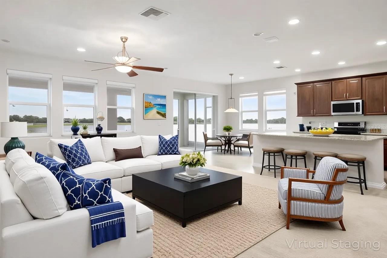 Uma ou mais fotos foram praticamente encenadas. Vistas serenas de água nesta bela casa de 3 camas, 2,5 banheiros e 3 carros, em Bahia Lakes! Localizada no final de um grande beco sem saída, esta propriedade possui uma garagem estendida, entrada coberta, um lanai coberto e tela e muito mais. Azulejo de cerâmica em todas as áreas úmidas e carpete recém -limpo em qualquer outro lugar! O hall de entrada recebe você na sala de estar formal, depois ao redor e descendo o corredor para encontrar os dois quartos secundários de tamanho amplamente com o banheiro completo secundário posicionado entre eles: vaidade de régua única com bancada em granito, uma combinação de banheira/chuveiro e um armário de linho conveniente do lado de fora. Do outro lado da sala de jantar formal com o teto da bandeja, há o meio banho e uma lavanderia com sua própria pia, prateleiras e lavadora/secadora LG! Aproveite a vista da espaçosa grande sala, combinando a sala da família, a lanchonete e a cozinha bem equipada. Bancadas de granito, ilha, utensílios de aço inoxidável, incluindo um alcance com forno duplo e uma despensa! Relaxe no quarto principal com seu banheiro privativo, com um closet profundo, vaidade de granito de pia dupla, banheira de imersão com barraca de chuveiro separada e armário de água. Este é um lar notável em uma comunidade procurada com baixo HOA e comodidades como uma piscina, playground e clubhouse. Não perca esta oportunidade; Agende sua exibição hoje!