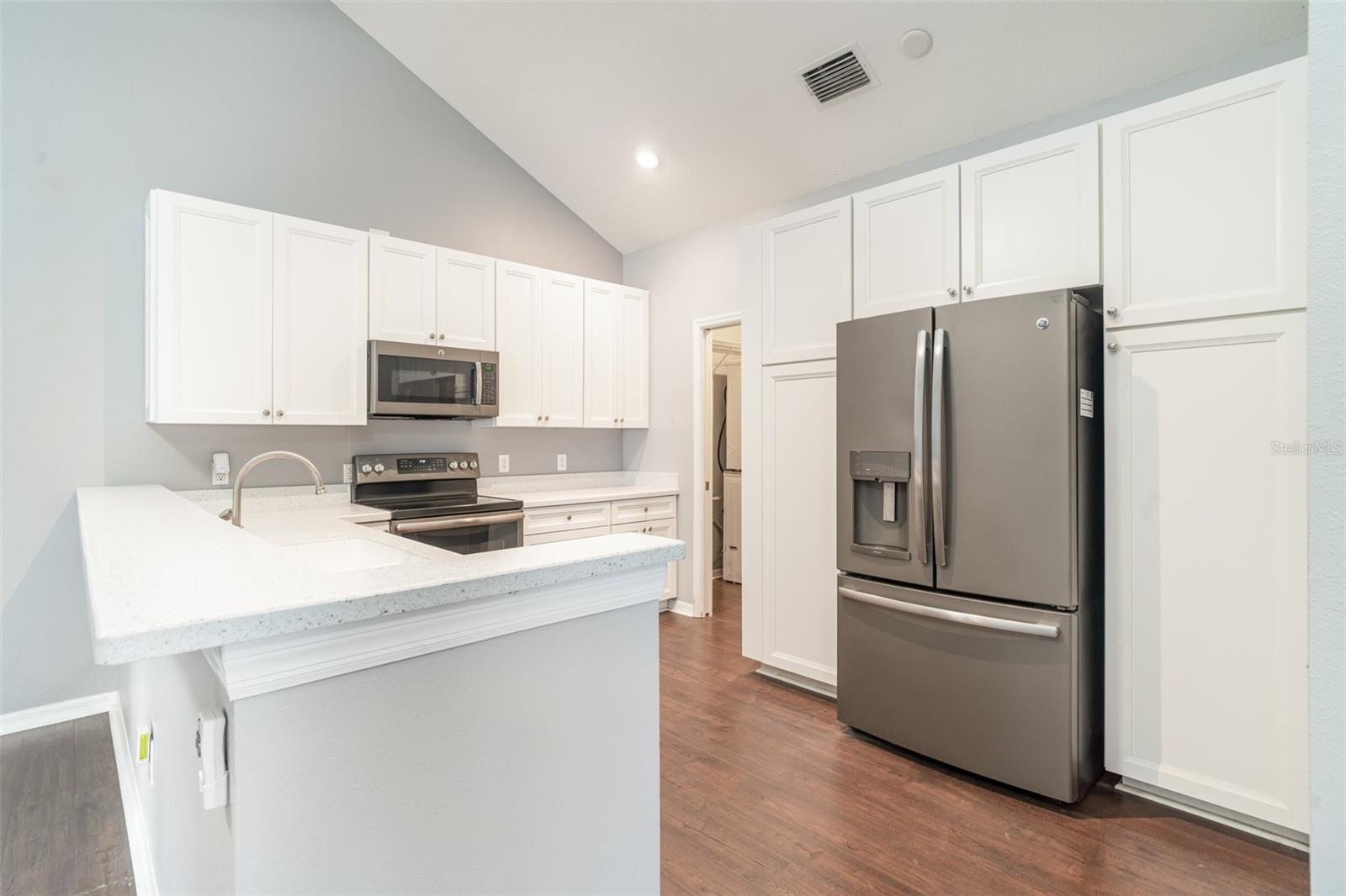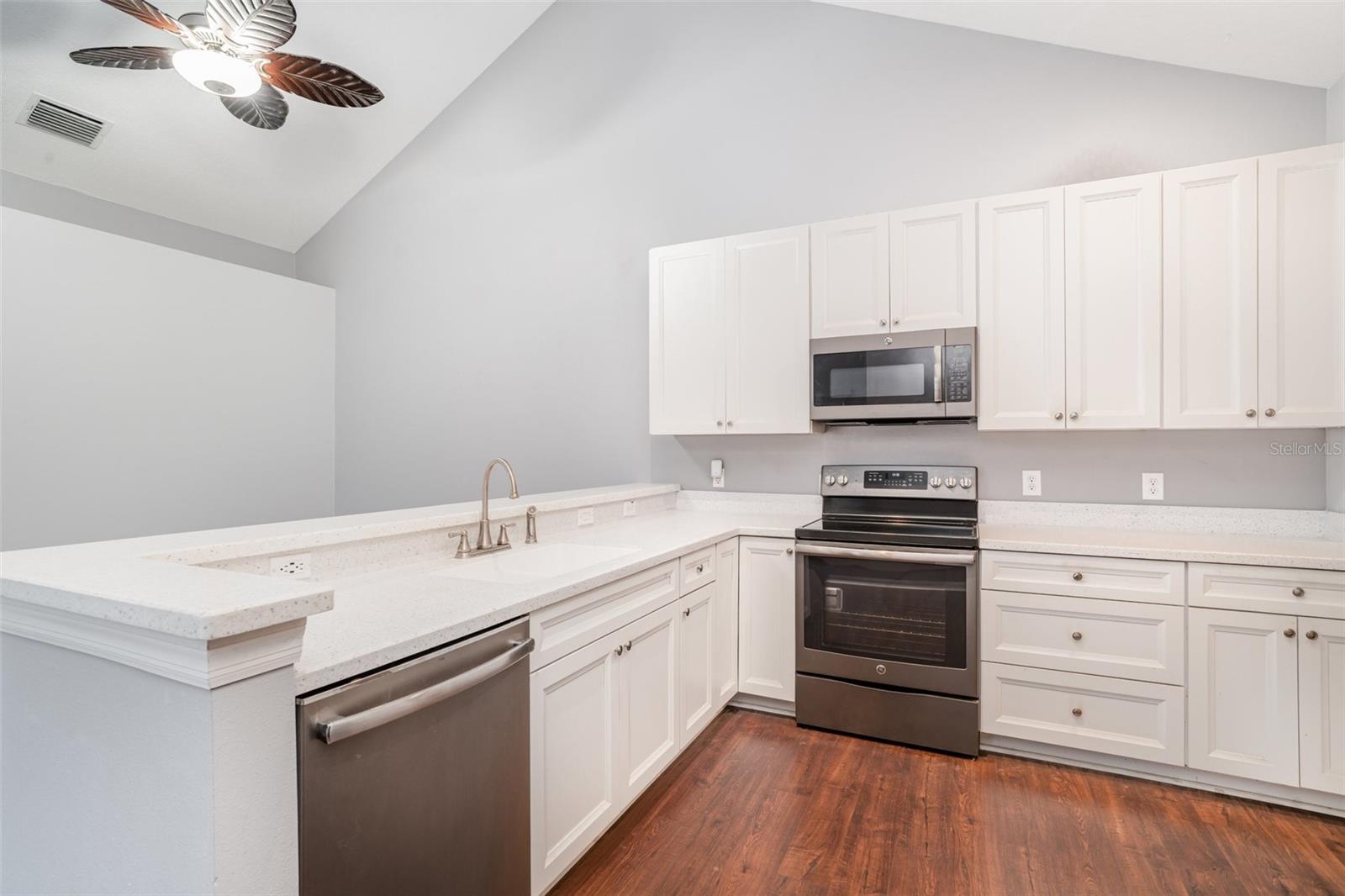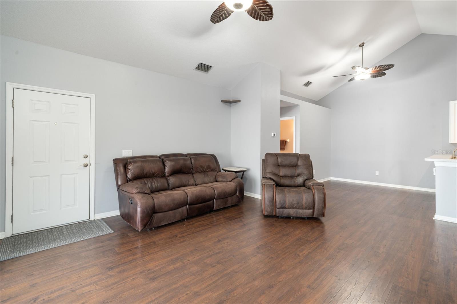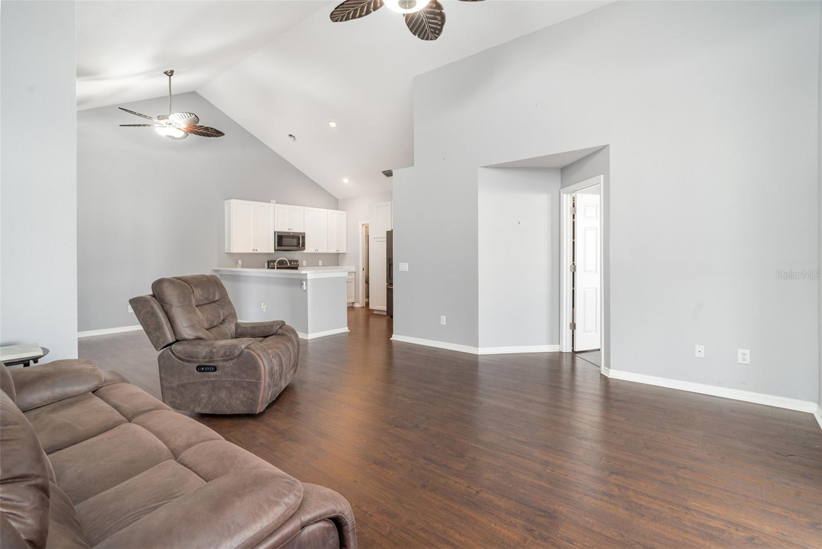 Bem -vindo a esta encantadora suíte master e 2 banheiros, localizada na comunidade Fairway Palms. A comunidade oferece vida livre de manutenção sem restrições de idade ou animal de estimação. Quando você entra na casa, notará os tetos abobadados e os adoráveis pisos de madeira dura. Esta casa A/C foi substituída em 2023 e o aquecedor de água foi substituído em 2022.