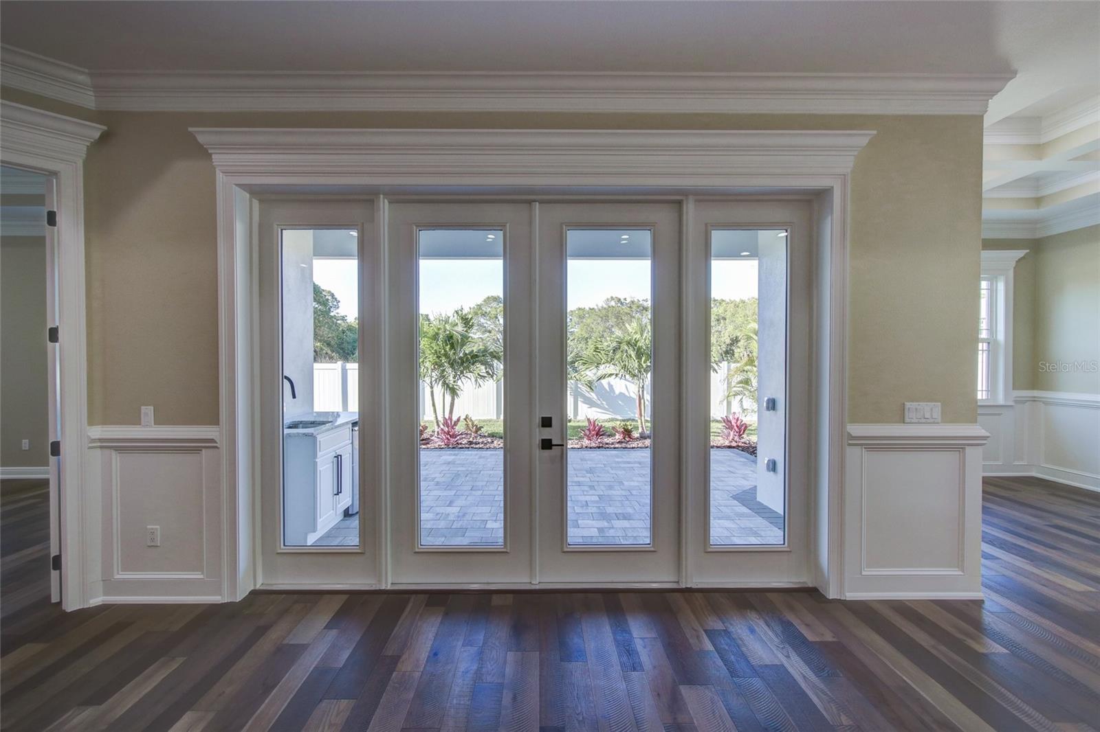 Portas francesas, iluminação, cozinha ao ar livre, calhas de chuva