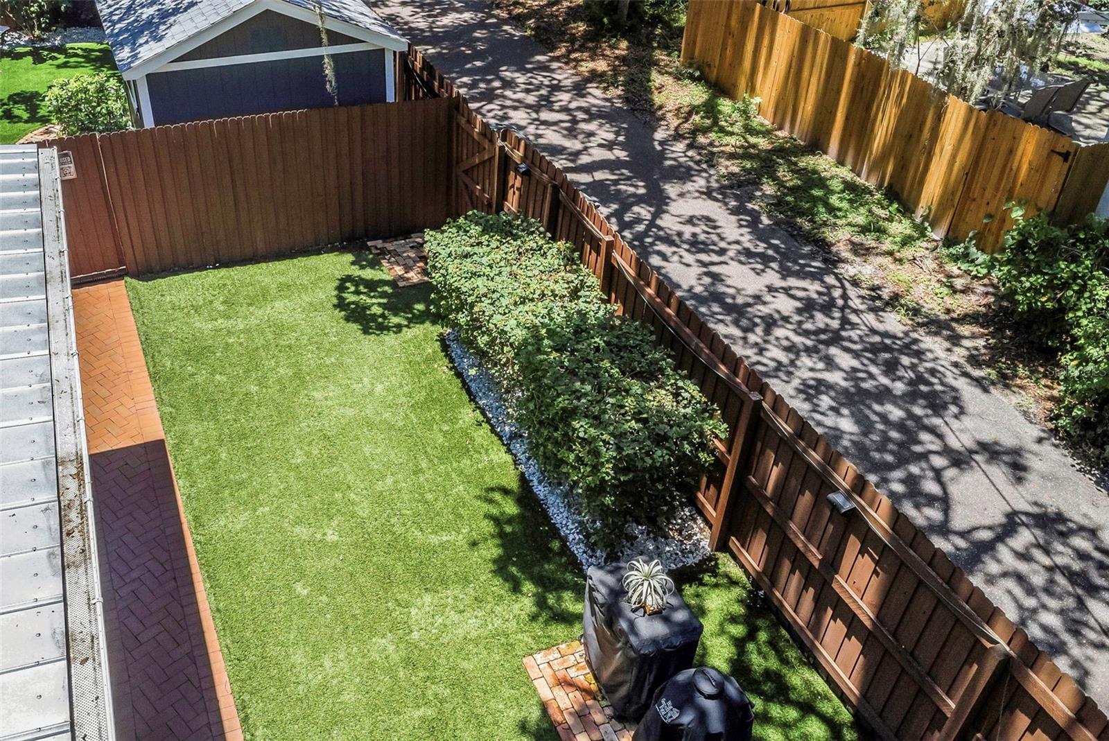 Portas francesas, calhas de chuva, calçada, armazenamento