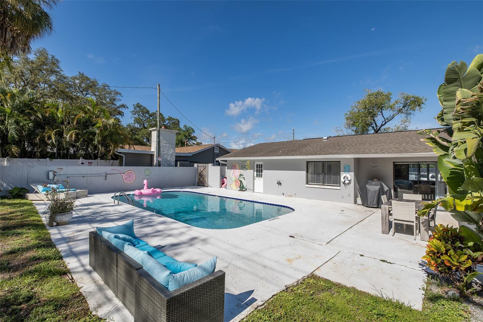 Esta linda casa com piscina é verdadeiramente cativante! Totalmente atualizado, oferece 5 quartos e 3 banheiros, incluindo duas suítes master em lados opostos da casa, cada uma com suítes privativas. O layout de quarto dividido oferece amplo espaço para família ou convidados. A porta da frente se abre para uma espaçosa Sala Grande que combina as áreas de estar, jantar e cozinha. A cozinha atualizada possui eletrodomésticos de aço inoxidável, bancadas de granito e uma charmosa copa. Portas de vidro deslizantes levam ao deck da piscina, ideal para relaxar na água. O quintal totalmente cercado inclui um galpão de armazenamento para maior comodidade. Ambas as suítes têm acesso direto ao deck da piscina e ao quintal. Atualmente listada no Airbnb, esta propriedade gera retornos impressionantes. Uma entrada circular oferece muito estacionamento, e o Downtown Safety Harbor, nas proximidades, oferece lojas, spas, restaurantes e cervejarias. Quer você o alugue ou faça seu próprio, esta joia de Tampa Bay é imperdível. Philippe Park e Tampa Bay estão a poucos passos de distância, com belos jardins e lançamento de barco, e NÃO é necessário seguro contra inundações. Não perca - agende uma exibição hoje mesmo!