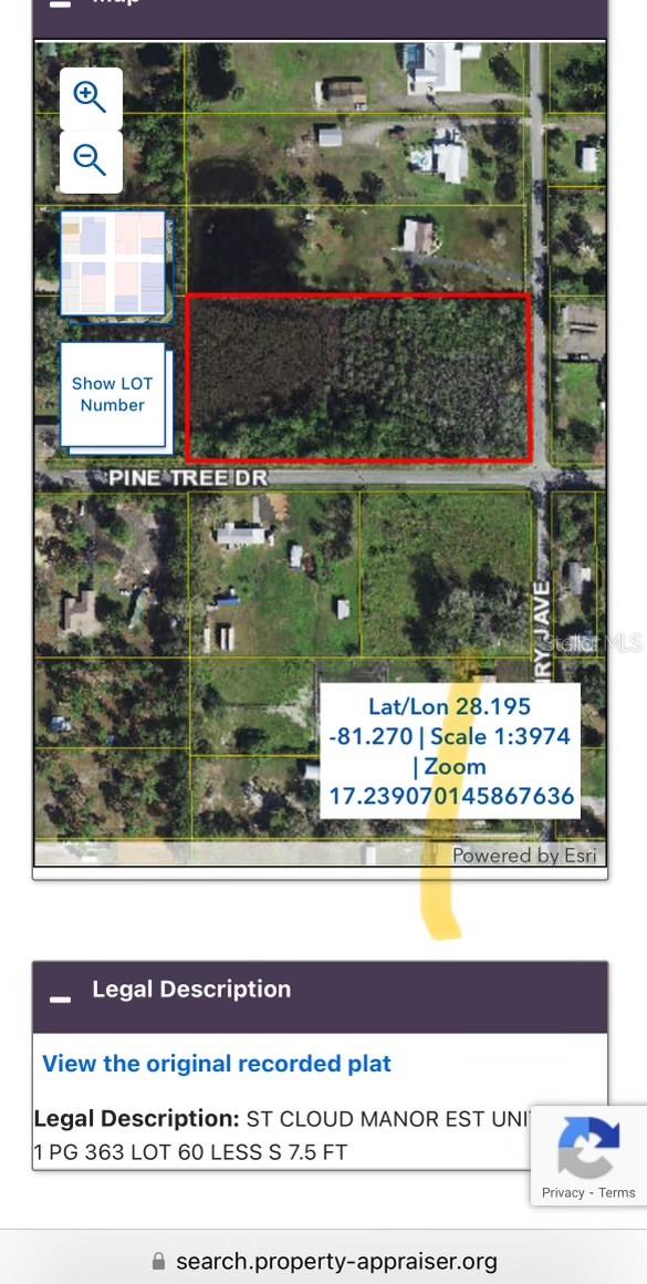 Construa uma bela casa personalizada nesta terra vaga de 4,3 acres de canto em St Cloud Manor Estates, esta comunidade está crescendo rapidamente e está em uma localização perfeita. Conveniente para supermercados, farmácias e necessidades diárias, enquanto ainda está escondido do Buzzle e da agitação da cidade. A minutos de Turnpike, você pode se conectar com 417, I-4 e 528. A apenas alguns minutos das compras, além de escolas altamente classificadas. Perfeito para construir a casa dos seus sonhos ou trazer seu modular. Apenas 25 minutos para a Universal Studios, 25 minutos para a Disney World, 30 minutos para o aeroporto, a 25 minutos da Medical City, em Lake Nona e muito mais. Gravou áreas úmidas nas costas. Esta zona de propriedade CA (Desenvolvimento Agrícola e Conservação). https://www.osceola.org/my-property/zoning-and-land-use/zoning-designation/ac