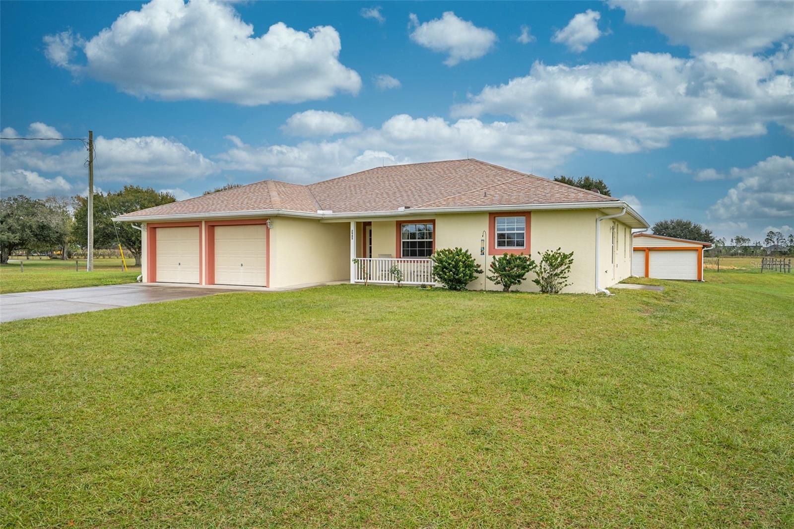 Charmosa casa de campo em 7,73 acres! Casa personalizada de 3 quartos, 2 banheiros, garagem para 2 carros, construída em 2000. Grande área para refeições na cozinha. Exterior recentemente repintado em 2020 (com garantia/selo de climaguard de 30 anos). TELHADO SUBSTITUÍDO EM 2020 e atualização de calhas e pára-raios. AC e aquecedor de água substituídos em 2022. NOVOS dutos AC substituídos em 2024. O quarto principal tem um grande closet, que também serve como abrigo de emergência climática. O banheiro da suíte master inclui pias duplas, box amplo e banheira de hidromassagem. Muitos itens bônus para esta casa, como telhado de quatro águas, pára-raios, venezianas e cercas. Pasto com lago para apoio ao gado. Portas de garagem com classificação de furacão, oficina 24 X 48. NÃO HOA. Aspirador interno com 2 panelas extras. No controle de pragas de parede, pintura externa com garantia de 30 anos. Esta propriedade é ideal para o indivíduo/família que adora o estilo de vida ao ar livre e agrícola ou para promotores comunitários. A propriedade fica perto de novas comunidades de construção em Saint Cloud, de rápido crescimento. BEM-VINDO A CASA! O zoneamento futuro do uso do solo é designado para Residencial de Baixa Densidade.