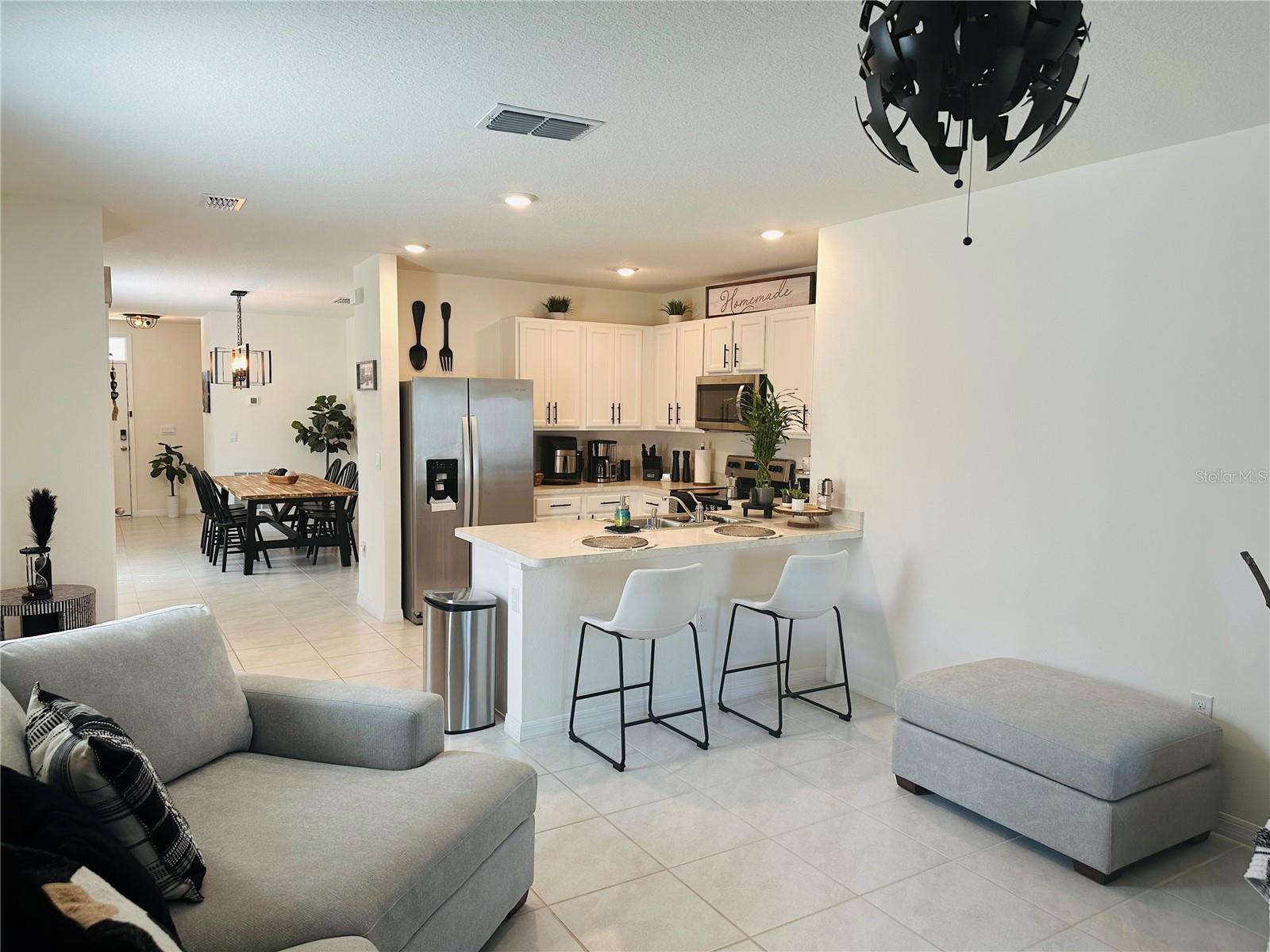 *** Preço reduzido *** *** Furniture transmite com a casa, exceto lavadora e secadora *** Em nossa subdivisão Harmony West, localizada em South Lake Nona, a leste de Kissimmee, este modelo doméstico é uma planta de 3/2, totalmente cercada com um espaço alimentar separado com abundância de luz natural, acessível da porta do vestíbulo. Excelente design de cozinha com uma barra de café da manhã e muitos armários. Quartos e armários secundários bem equipados; Suíte do proprietário espaçoso com vaidade de pia dupla em altura adulta, chuveiro e armário. Aparelhos de aço inoxidável, bancadas na cozinha e banheiro, armários de 36 polegadas, piso de ladrilhos em todos os principais espaços e tecnologia doméstica inteligente com controle de termostato, entrada sem chave, sky sino e outros recursos são apenas alguns dos destaques internos! A casa também oferece painéis solares, diminuindo o custo da eletricidade, ajudando os compradores a economizar dinheiro e ajudando os proprietários de casas a se tornarem independentes de energia. Harmony West é uma comunidade crescente de plano mestre que se desenvolve a um ritmo rápido, com um ambiente natural e muitas atividades ao ar livre. Esta comunidade também oferece um estilo de resort que vive com comodidades, incluindo piscina comunitária, clube, playground, fitness center e muito mais. Fácil acesso a Melbourne Beach e Cocoa Beach, Lake Nona Medical City, rodovias e estradas acessíveis. Harmony West é um lugar onde você experimentará tranquilidade e paz. Agende um passeio hoje!