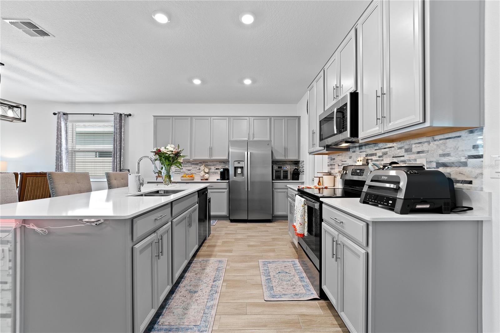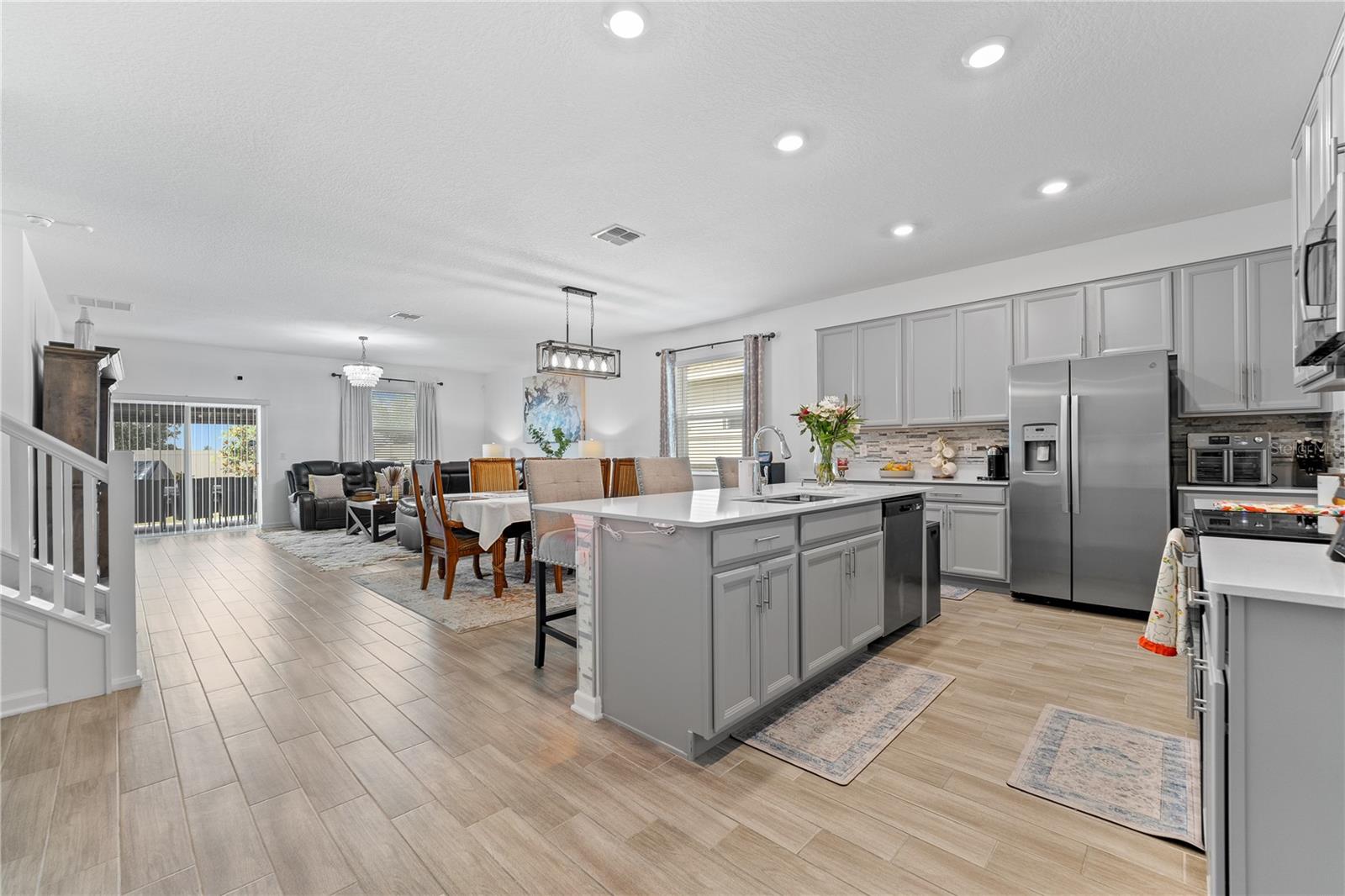 Bem-vindo à casa dos seus sonhos no coração da cobiçada subdivisão Old Hickory, na vibrante St. Cloud, FL! Construída em 2021, esta deslumbrante residência de 2 andares oferece a combinação perfeita de elegância moderna e funcionalidade, ostentando 5 quartos, 3,5 banheiros e uma variedade de recursos desejáveis. Ao entrar, você é recebido por uma planta espaçosa e convidativa, acentuada por belos pisos de tábuas de cerâmica que o guiam sem esforço pela casa. A ampla cozinha é uma delícia para o chef, completa com uma ilha grande, eletrodomésticos de aço inoxidável, armários de 42 polegadas e amplo balcão para preparação de refeições e entretenimento. Ao entrar, você encontrará um home office versátil ou espaço flexível, ideal para trabalho remoto, hobbies ou necessidades adicionais de moradia. As luminárias atualizadas em toda a casa adicionam um toque de sofisticação e ambiente. O primeiro andar é destacado por um luxuoso quarto principal, que oferece serenidade e privacidade. O banheiro principal acompanha acessórios modernos, pia dupla e box amplo, proporcionando uma experiência de spa em casa. No andar de cima, quatro quartos de tamanho generoso aguardam, proporcionando amplo espaço para familiares ou convidados. Os 3,5 banheiros garantem comodidade e conforto a todos os ocupantes. Do lado de fora, a propriedade fica em um cobiçado terreno de esquina, totalmente cercado para privacidade e segurança. O oásis no quintal acena com uma piscina acima do solo e um gazebo charmoso, criando o cenário perfeito para reuniões ao ar livre, relaxamento e recreação. As características notáveis desta casa excepcional incluem um sistema multicâmera para maior segurança e tranquilidade, bem como painéis solares, oferecendo eficiência energética e economia de custos. Localizados no desejável bairro de Old Hickory, os moradores desfrutam de fácil acesso a lojas, restaurantes, entretenimento e escolas de primeira linha. Não perca esta oportunidade de possuir um pedaço do paraíso em St. Cloud – agende sua exibição hoje mesmo!