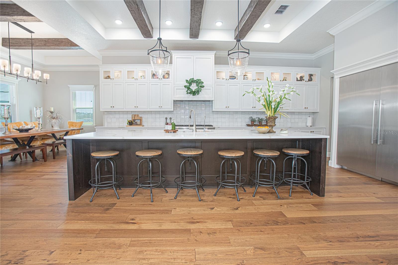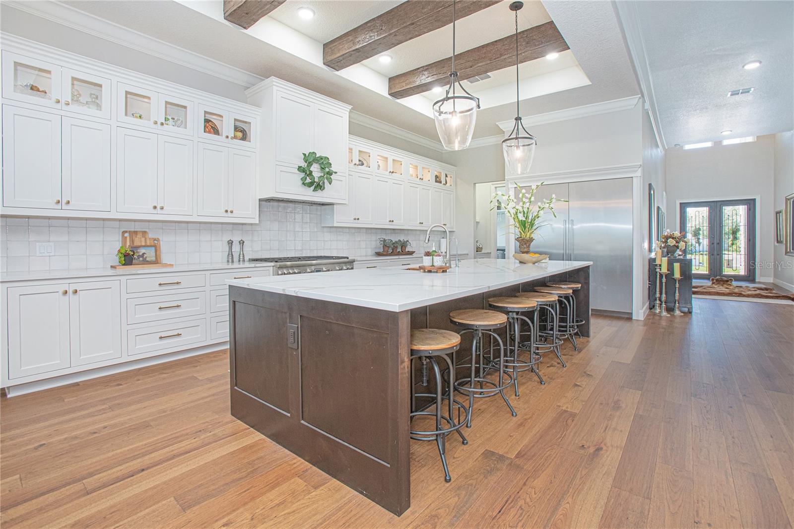Bem-vindo a esta propriedade de luxo recém-construída terminada em 2024, criada por inovações premiadas de madeira. A casa possui piso de madeira de carvalho, azulejos em banheiros e carpete nos quartos no andar de cima. Desfrute de tetos de 12 pés com molduras de coroa no primeiro andar e tetos de 10 pés no segundo. A cozinha possui aparelhos de Thermador, armários personalizados e bancadas de quartzo, com toques especiais como vigas expostas, um backsplash de ladrilhos e armários de tela embutidos. A suíte master inclui um quarto espaçoso com vigas e um lustre, um banheiro luxuoso com uma banheira de imersão independente, um chuveiro de grandes dimensões com controles digitais e armários personalizados no armário. Os banheiros adicionais apresentam chuveiros e vaidades personalizadas entre vidro. A sala de teatro oferece um sistema de som surround Sonos, uma tela plana de 95 ”e armários embutidos. A piscina de cloro de 20'x40 'com um deck de" travertino de prata "e jacuzzi é perfeito para entretenimento. A adega possui armários de barrel de barrel de barrel de barrel de barrela de barrela de barrela de bobo de aranha. A casa inclui HVAC com eficiência energética da Lennox, isolamento do sótão icyneno e dois aquecedores de água sem tanques. A segurança é garantida com um sistema de piscar. As características únicas incluem um elevador e uma garagem extra de mais de mais de 4 carros com piso epóxi. O bairro oferece acesso ao lago com potencial para uma doca particular, um lançamento de barco particular e comodidades como pickleball, tênis e quadras de basquete. Esta propriedade combina luxo, conforto e funcionalidade, tornando -o um lugar excepcional para chamar de lar. Não perca a oportunidade de possuir esse patrimônio extraordinário.