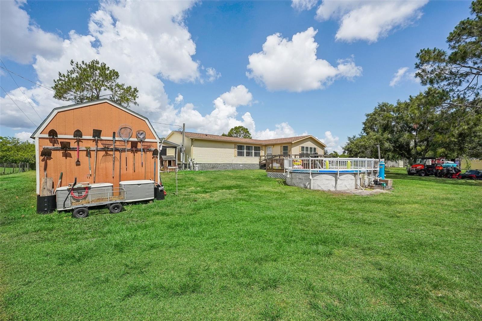 Ajuste dos preços de mercado - quer um pouco de país e muita qualidade e qualidade? Esta magnífica casa fabricada com todos os toques modernos, desde tetos altos a quartos espaçosos, e uma cozinha enorme é algo que você precisa acreditar. Belo piso novo Uma roupa/despensa de passagem e uma garagem fechada com acesso ao veículo são características adicionais desta casa de 4 quartos de 2 banheiros. Os quase 3 acres de pátio cercado abrigam um lago, galinheiro, pérgola e piscina acima do solo, completos com deck de madeira e equipamentos atualizados, há espaço suficiente para estruturas adicionais ou gado. Você tem que ver esta ótima propriedade para apreciá -la!