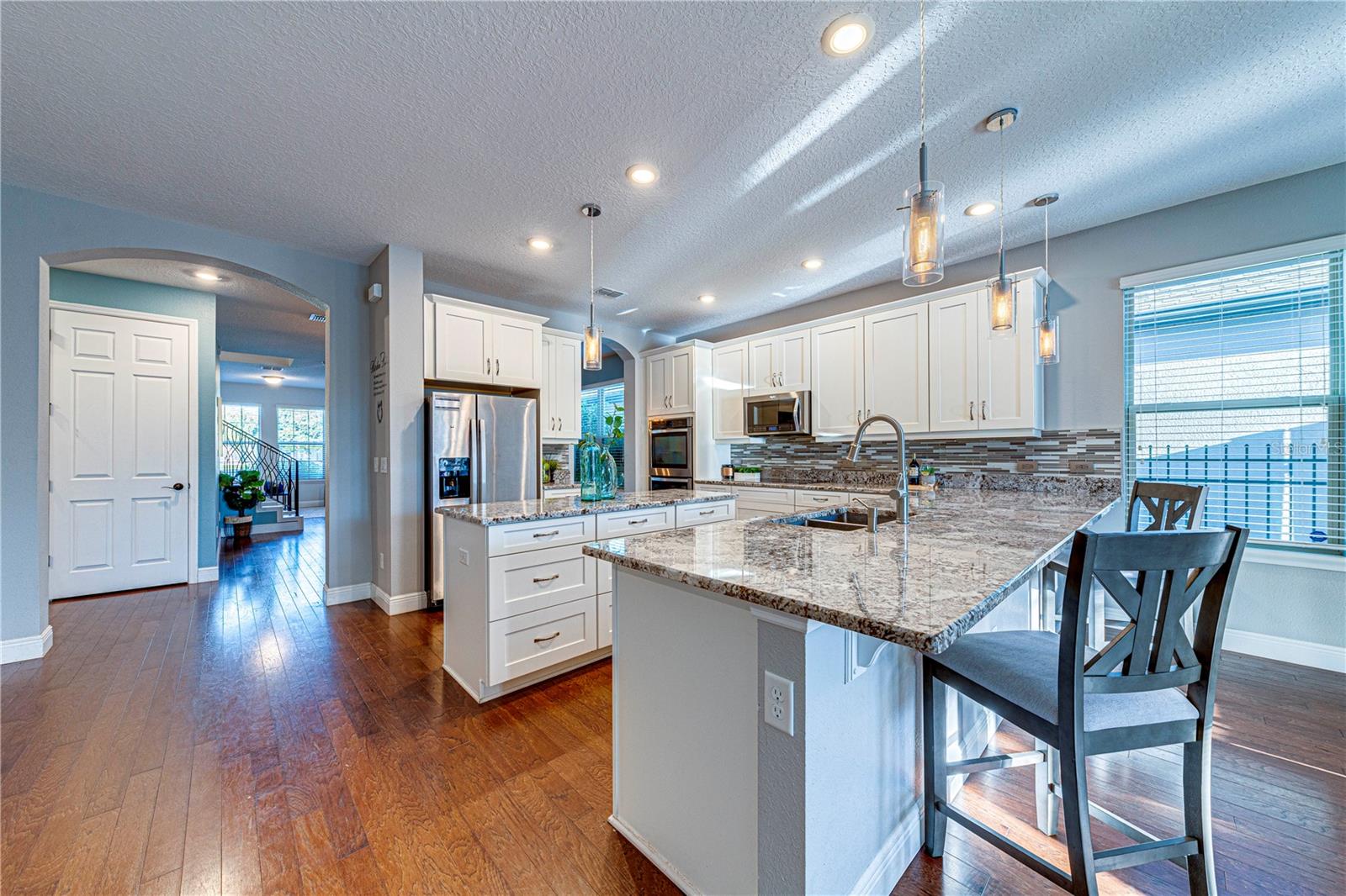 Bem-vindo a esta encantadora casa unifamiliar aninhada na tranquilidade da Nova Grove em Saint Cloud, FL. Esta residência meticulosamente mantida oferece uma mistura perfeita de conforto, estilo e conveniência. Ao entrar, você é recebido por um espaço convidativo com luz natural abundante e acabamentos contemporâneos. A planta aberta conecta perfeitamente a área de estar, a área de jantar e a cozinha, fornecendo um layout ideal para relaxamento e entretenimento. A cozinha é o sonho de um chef, com armários elegantes, bancadas em granito, utensílios de aço inoxidável e uma ilha espaçosa com assentos de barra de café da manhã. Seja preparando a refeição diária ou a hospedagem de reuniões, esta cozinha certamente impressionará. A casa possui 6 quartos, 3,5 banheiros, incluindo uma luxuosa suíte master completa com um closet e banheiro privativo com pias duplas, uma banheira de imersão e um chuveiro separado. Os quartos adicionais de tamanho generoso e oferecem flexibilidade para hóspedes, membros da família ou espaço para escritório em casa. Saia do pátio exibido com vista para o oásis de quintal privado, incluindo uma piscina de água salgada. Este espaço ao ar livre é perfeito para desfrutar do clima da Flórida o ano todo, estejam bebendo seu café da manhã ou hospedando churrascos com amigos e familiares. Destaques adicionais desta casa incluem uma lareira aconchegante, piso de ladrilhos elegantes, tetos altos e uma garagem de dois carros e meio para maior conveniência. Localizada na desejável comunidade Saint Cloud, esta casa possui recursos certificados Energy Star, como painéis solares, janelas Low-E e isolamento de espuma de spray, todos projetados para economizar energia e reduzir suas contas de serviços públicos. Localizado em uma área primitiva, fica a poucos minutos de Lake Nona, Medical City, Orlando Airport, VA Hospital, Nemours Hospital, Amazon e uma variedade de opções de compras e refeições, incluindo Walmart e Publix. Além disso, desfrute de fácil acesso às principais rodovias 417 e 528! Não perca a oportunidade de fazer desta linda casa sua nova casa. Agende sua exibição hoje! Para mais informações ou para agendar uma visualização.