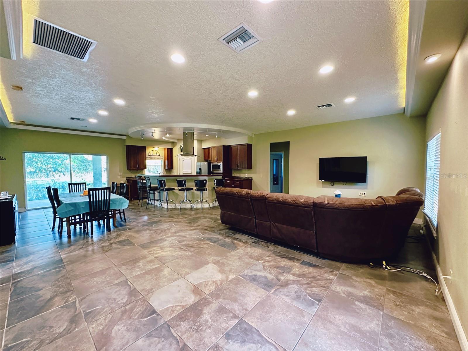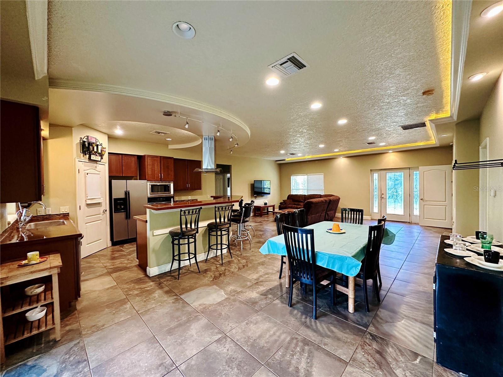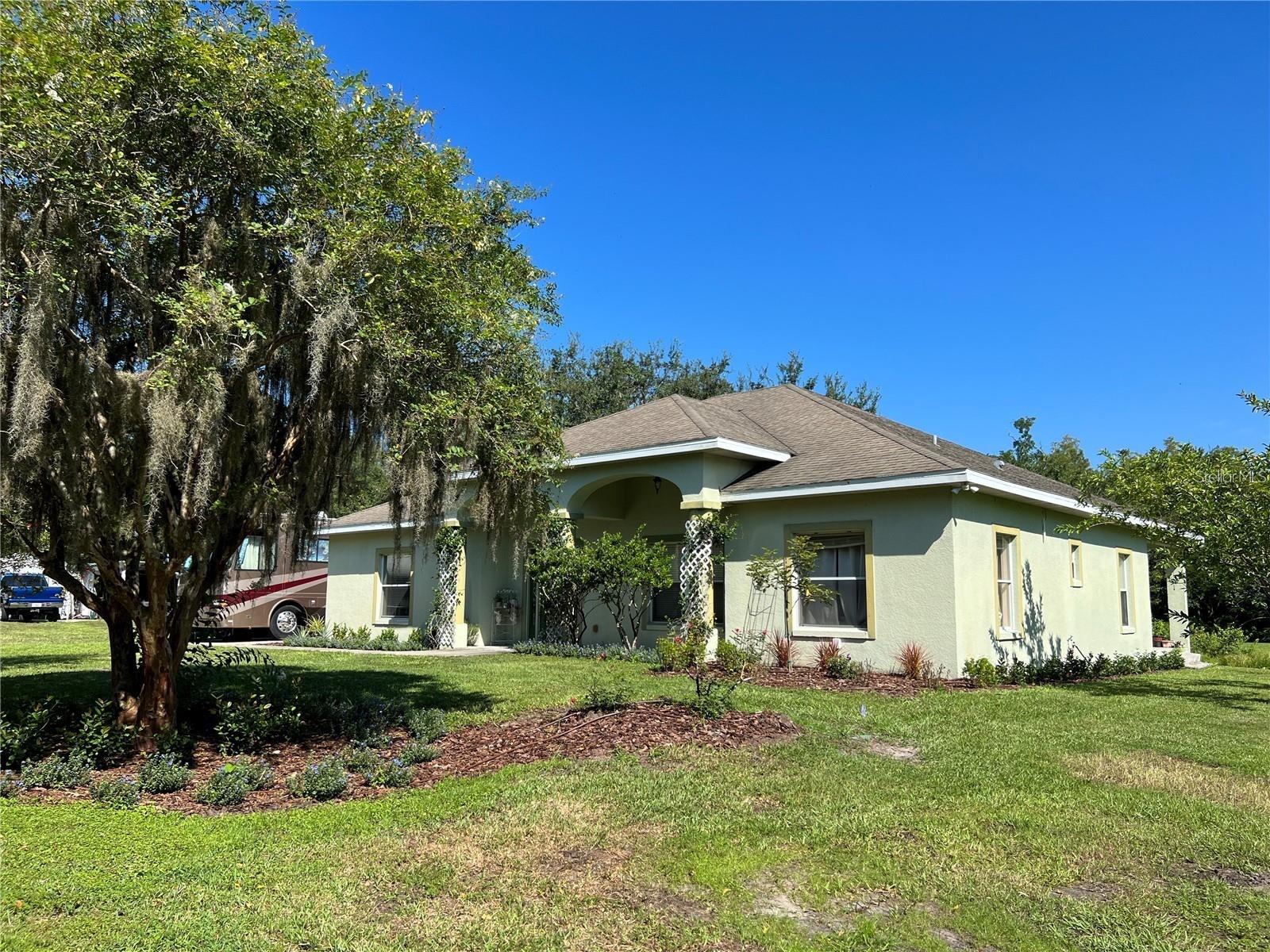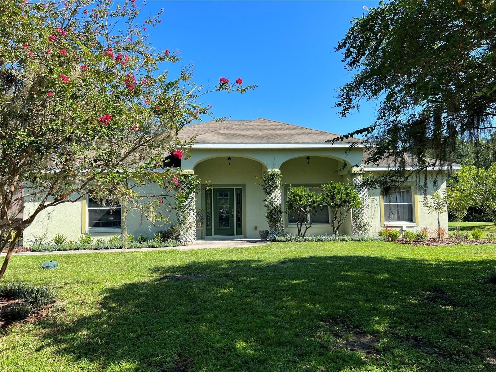 Para reclusão e privacidade, aqui está a casa dos seus sonhos! Esta casa personalizada de 2.178 pés quadrados em 4,8 acres foi construída pelo proprietário de acordo com especificações comerciais, que são superiores ao código residencial. Entrando na longa entrada, veja árvores, área limpa e lago à sua direita. O jardim da frente, com lindas plantações de flores, leva à ampla porta da frente com inserções de vidro d'água. Você está na grande sala, com amplo piso de porcelanato de 20 "que chega até a cozinha e sala de jantar, sancas e iluminação embutida. Cada teto tem belos recursos personalizados. O aquário ficará, com ciclídeos e mollies, e um fonte de água na parede atrás do tanque. A cozinha possui balcões de concreto personalizados com acabamento em poliuretano, uma grande ilha com pia de preparação extra e balcão alto envolvente, além de assentos e despensa. Todos os eletrodomésticos ficarão, incluindo o forno de parede e o micro-ondas. e sistema de ventilação personalizado acima do fogão a gás, além de geladeira de aço inoxidável e máquina de lavar louça. Há muitos armários de cerejeira maciça. A sala de jantar fica ao lado da cozinha. para a varanda dos fundos. O closet tem escadas suspensas que levam ao sótão acabado de 27'x8', perfeito para armazenamento. O banheiro privativo tem teto de barril, box de vidro, banheira de hidromassagem e. pias duplas colocadas em um balcão de vidro. Este banheiro dá acesso ao quarto 4. Este cômodo também pode ser acessado pela sala, sendo perfeito como berçário. Possui teto texturizado à mão e piso laminado, além de um mural de parede com cena de praia. Mais dois quartos, cada um com armários duplos, dividem o segundo banheiro completo, que possui pia e balcão de vidro. A lavanderia / armazenamento / mudroom está preparada para um lavabo. Da sala de jantar, saia pelas amplas portas de vidro deslizantes para a enorme varanda traseira coberta de 12'x37' com ventiladores de teto e aprecie a vista de seu lago abastecido, com um enorme quintal além. Existe um galinheiro, anexos para arrumos e uma oficina nas traseiras. Os detalhes da construção incluem bloco de concreto injetado com espuma para qualidades de isolamento superiores, tiras de telhado grandes para obter um desconto no seguro residencial, serviço elétrico de 400 A na casa, canos de encanamento são todos de 3/4 ". Não há HOA aqui e impostos são baixos. Esta propriedade fica no final da estrada, é zoneada para cavalos, e se você está procurando privacidade, aqui está no coração da Flórida Central, mas confira!
