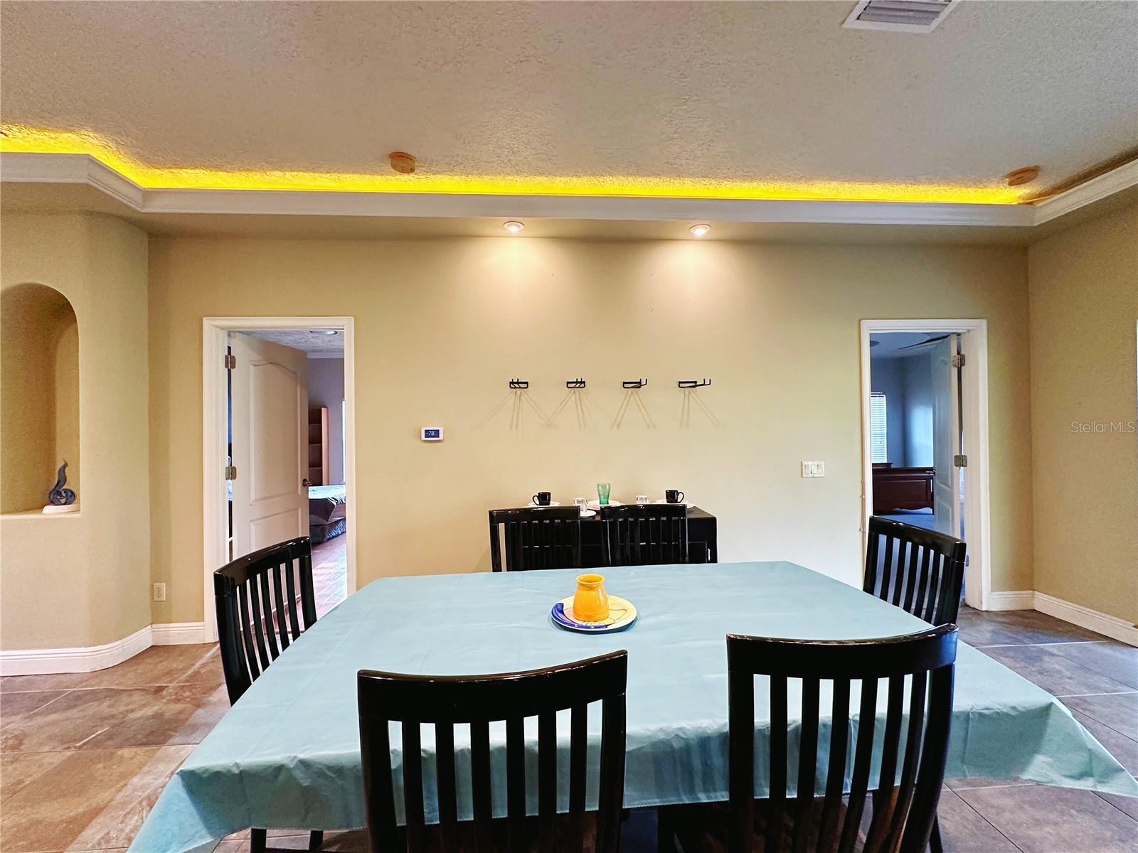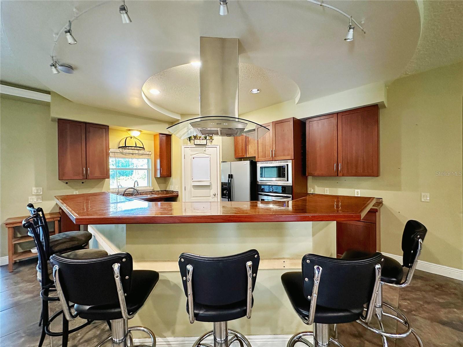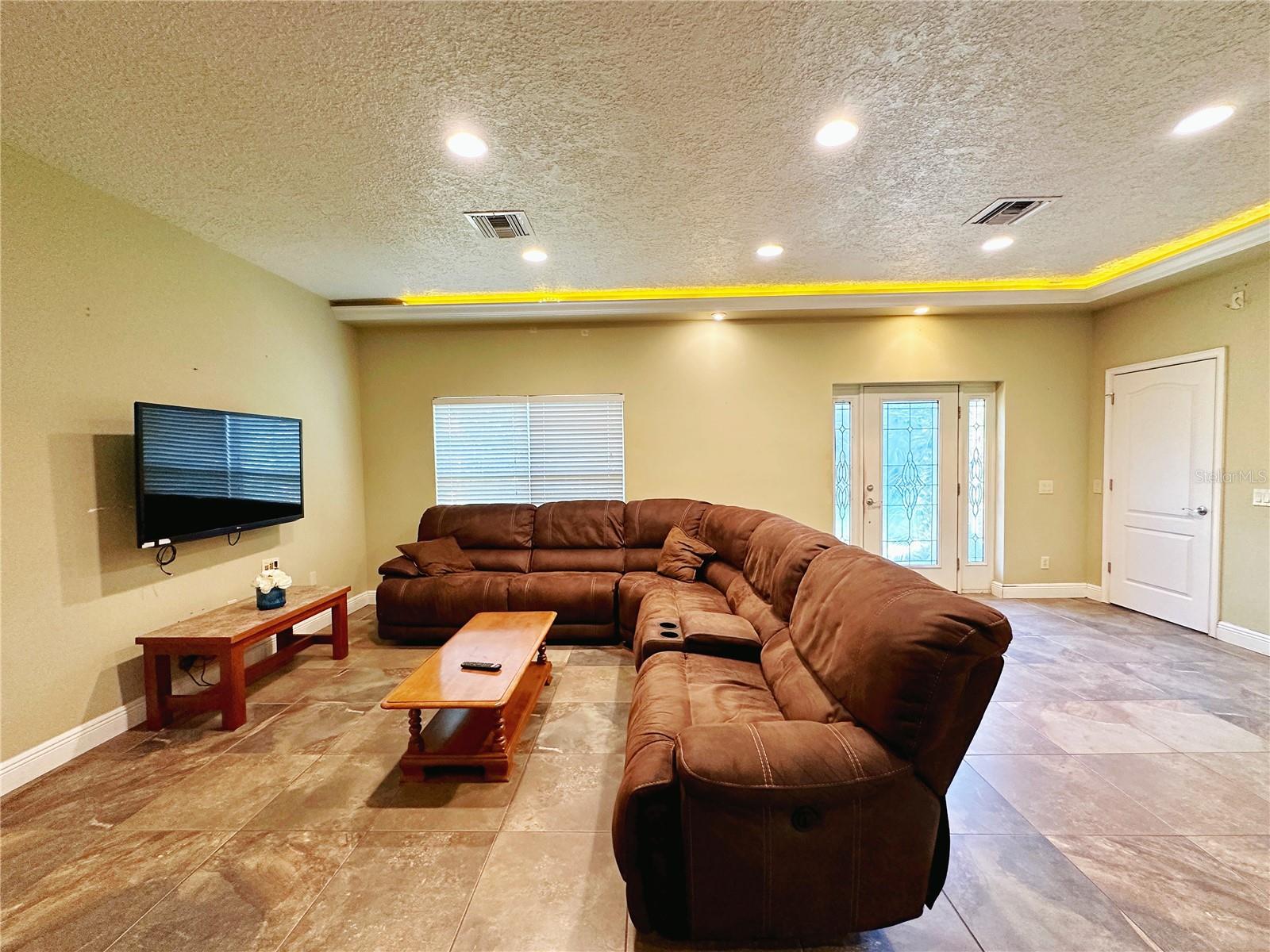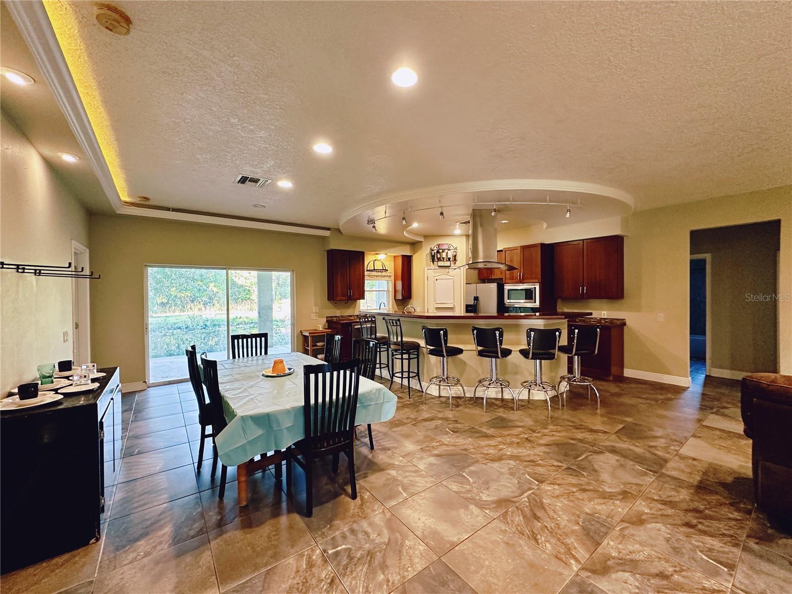 Para reclusão e privacidade, aqui está a casa dos seus sonhos! Esta casa personalizada de 2.178 pés quadrados em 4,8 acres foi construída pelo proprietário de acordo com especificações comerciais, que são superiores ao código residencial. Entrando na longa entrada, veja árvores, área limpa e lago à sua direita. O jardim da frente, com lindas plantações de flores, leva à ampla porta da frente com inserções de vidro d'água. Você está na grande sala, com amplo piso de porcelanato de 20 "que chega até a cozinha e sala de jantar, sancas e iluminação embutida. Cada teto tem belos recursos personalizados. O aquário ficará, com ciclídeos e mollies, e um fonte de água na parede atrás do tanque. A cozinha possui balcões de concreto personalizados com acabamento em poliuretano, uma grande ilha com pia de preparação extra e balcão alto envolvente, além de assentos e despensa. Todos os eletrodomésticos ficarão, incluindo o forno de parede e o micro-ondas. e sistema de ventilação personalizado acima do fogão a gás, além de geladeira de aço inoxidável e máquina de lavar louça. Há muitos armários de cerejeira maciça. A sala de jantar fica ao lado da cozinha. para a varanda dos fundos. O closet tem escadas suspensas que levam ao sótão acabado de 27'x8', perfeito para armazenamento. O banheiro privativo tem teto de barril, box de vidro, banheira de hidromassagem e. pias duplas colocadas em um balcão de vidro. Este banheiro dá acesso ao quarto 4. Este cômodo também pode ser acessado pela sala, sendo perfeito como berçário. Possui teto texturizado à mão e piso laminado, além de um mural de parede com cena de praia. Mais dois quartos, cada um com armários duplos, dividem o segundo banheiro completo, que possui pia e balcão de vidro. A lavanderia / armazenamento / mudroom está preparada para um lavabo. Da sala de jantar, saia pelas amplas portas de vidro deslizantes para a enorme varanda traseira coberta de 12'x37' com ventiladores de teto e aprecie a vista de seu lago abastecido, com um enorme quintal além. Existe um galinheiro, anexos para arrumos e uma oficina nas traseiras. Os detalhes da construção incluem bloco de concreto injetado com espuma para qualidades de isolamento superiores, tiras de telhado grandes para obter um desconto no seguro residencial, serviço elétrico de 400 A na casa, canos de encanamento são todos de 3/4 ". Não há HOA aqui e impostos são baixos. Esta propriedade fica no final da estrada, é zoneada para cavalos, e se você está procurando privacidade, aqui está no coração da Flórida Central, mas confira!