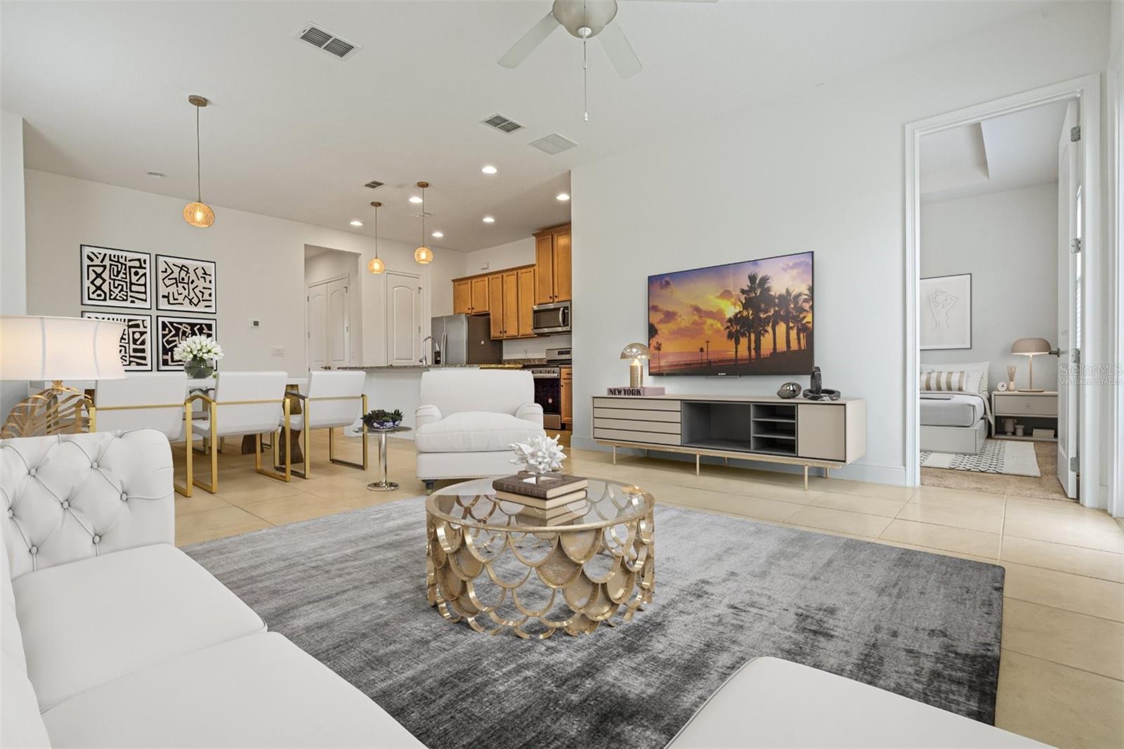 Preço abaixo do mercado para uma venda rápida! Bem-vindo a esta encantadora vila de 2 quartos e 2 banheiros situada na vibrante comunidade de mais de 55 anos de Twin Lakes. A partir do momento em que você chega, a calçada pavimentada e a espaçosa garagem para dois carros dão o tom da qualidade e do conforto que você encontrará por toda parte. Entre para descobrir elegantes pisos de cerâmica que fluem perfeitamente pela maior parte da casa. A planta aberta cria uma atmosfera espaçosa e convidativa, perfeita para relaxamento e entretenimento. A cozinha é uma delícia para o chef, com bancadas em granito, amplos armários, uma ilha na altura do balcão com pia e balcão para café da manhã e uma conveniente despensa. A grande sala oferece muito espaço para áreas de jantar e de estar, tornando-a ideal para reuniões de família e amigos. Projetado com a privacidade em mente, este plano dividido apresenta um quarto principal com vista para o quintal sereno. O banheiro privativo é um refúgio luxuoso, completo com um espaçoso chuveiro com box de vidro, pia dupla com bancada em granito e um amplo closet. O segundo quarto, localizado no lado oposto da casa, é servido por um banheiro próximo com pia única com bancada em granito. Aproveite o sol da Flórida em seu pátio aberto ou aproveite as incríveis comodidades que Twin Lakes tem a oferecer. Situados às margens do Lago Live Oak, os moradores têm acesso a barcos comunitários e pesca no cais. O clube ultramoderno de 20.000 pés quadrados é um centro de atividades, com uma academia de ginástica de última geração, uma grande sala de reuniões, uma sala de bilhar/jogos, várias piscinas aquecidas, quadras de tênis, pickleball e bocha, putting green, trilhas para caminhada, atividades planejadas e muito mais. Não perca a oportunidade de experimentar o melhor da vida adulta ativa nesta villa excepcional!