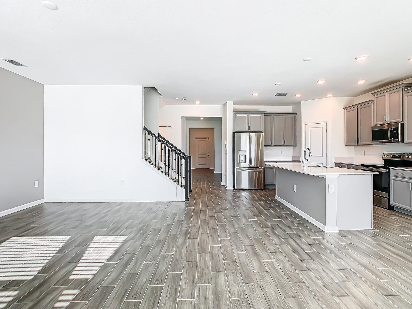 Esta impressionante casa de 5 quartos e três banheiros é o exemplo perfeito de vida moderna, oferecendo uma mistura de luxo e funcionalidade. O primeiro andar possui uma ampla área de estar de conceito aberto, com uma espaçosa sala de família, um recanto aconchegante e uma cozinha gourmet com uma grande ilha de granito, bancadas de granito, utensílios de aço inoxidável e uma ampla despensa. Um espaço flexível versátil, uma área tecnológica conveniente com uma mesa embutida e um pátio coberto adicionam ao apelo da casa. O primeiro andar também inclui um quarto com banheiro completo, ideal para os hóspedes. No andar de cima, a suíte master é um verdadeiro retiro com um chuveiro separado, banheira de jardim, pia de vaidade dupla e dois armários. Uma sala de jogos generosa, três quartos adicionais, outro banheiro completo e uma lavanderia convenientemente localizada completam o segundo andar. Com uma garagem de três carros e uma localização privilegiada na estrada 192, esta casa está em uma comunidade dividida em escolas de melhor classificação, tornando-a perfeita para uma vida familiar.