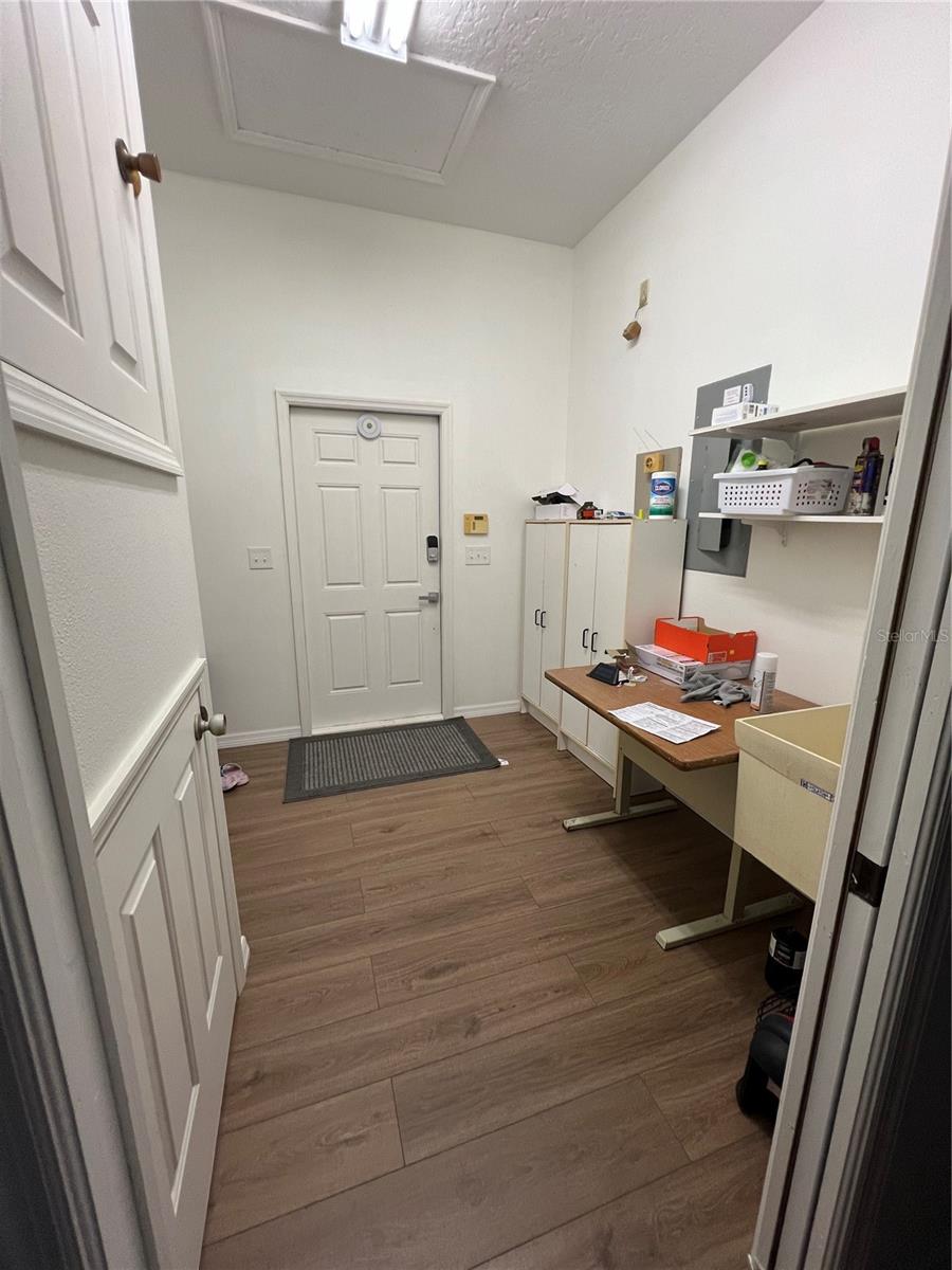 Entrada, estacionamento, oficina na garagem
