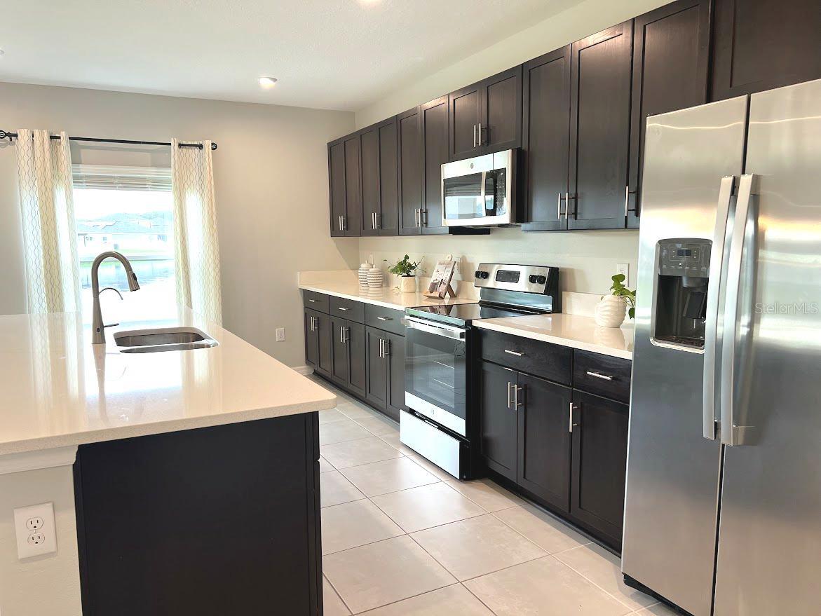 apenas remodelado. Quase novo, 2 anos, Waterfront, 4 quartos + casa Perto da rodovia ao sul de St Cloud. A bela casa recém-concluída no primeiro andar é de conceito aberto, toda em azulejo, com enorme sala de estar, jantar e aberta para a cozinha. Porta deslizante para o pátio coberto 10x10 para desfrutar da vista oeste à beira-mar para um pôr do sol incrível em seu quintal ou em qualquer cômodo voltado para trás. Armários de cozinha em cor moca com balcões de pedra creme claro realçados com todos os eletrodomésticos em aço inoxidável. Afundar na ilha com balcão para café da manhã e enorme despensa. Lavabo no primeiro andar antes de subir as escadas. No andar de cima tem lavanderia, quarto principal e mais 3 quartos laterais com ENORME loft frontal com armário separado. O quarto principal tem armário grande, pias duplas na banheira, box amplo e banheiro separado. O banheiro do corredor possui pias duplas com espaço separado para vaso sanitário e banheira para maior aproveitamento. Estates at Southern Pines é uma comunidade tranquila muito agradável, com apenas alguns quilômetros para entrar na rodovia para acesso rápido a qualquer lugar. Com uma bela piscina comunitária e playground. Super convenientemente localizado, perto do aeroporto, estradas principais, parques temáticos e bom distrito escolar.