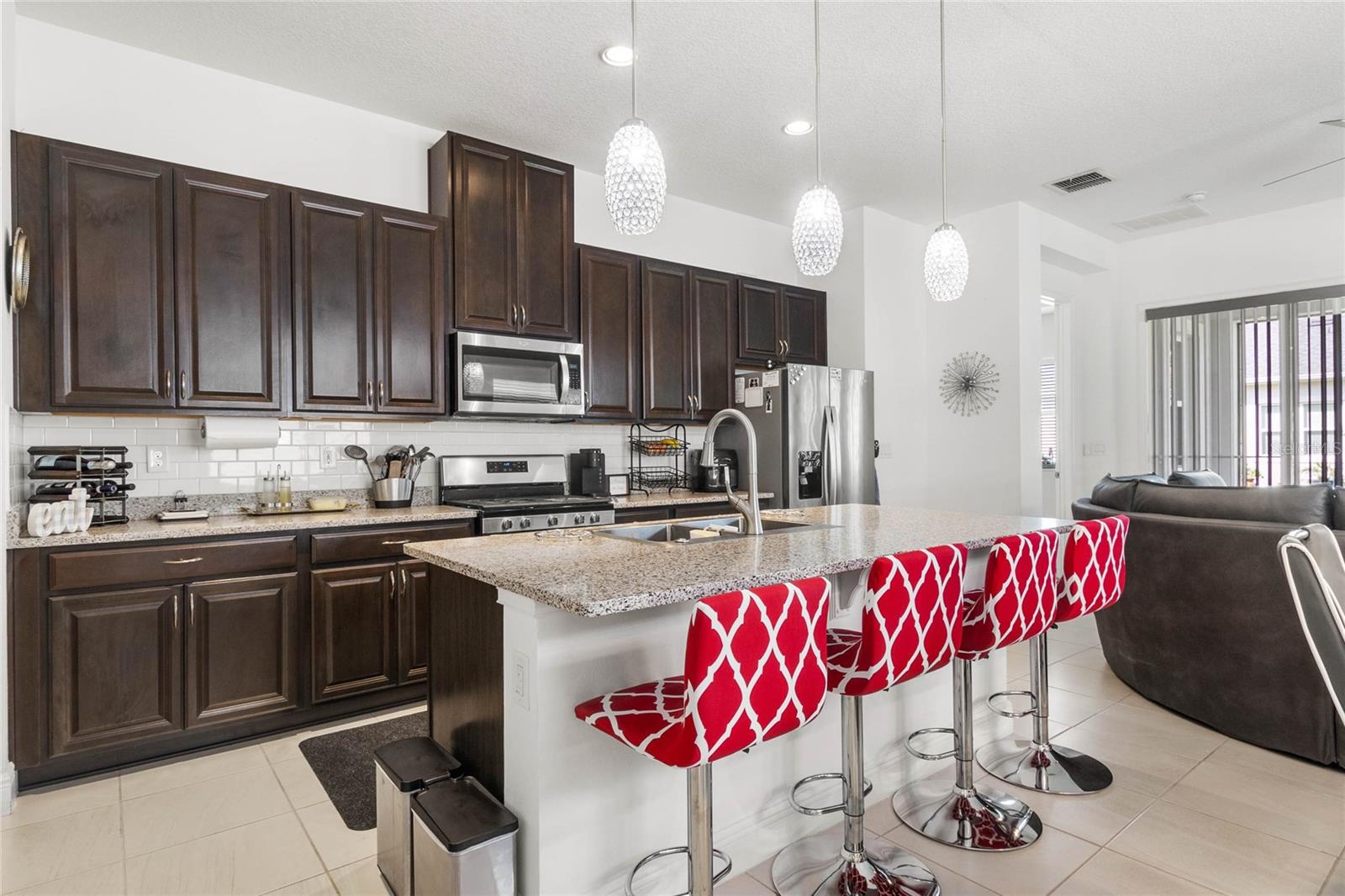 Entre no luxo e no conforto do muito procurado condomínio fechado Twin Lakes 55+ localizado em St. Cloud, onde a vida vibrante em estilo resort encontra a natureza serena e a vista para o mar. Esta casa oferece a combinação perfeita de design moderno, acabamentos premium e comodidades incomparáveis, fazendo com que cada dia pareça um retiro tranquilo. Ao entrar, você notará imediatamente um lindo revestimento cerâmico, uma planta aberta que é perfeita tanto para a vida diária quanto para receber amigos e familiares. As áreas de estar e jantar fluem perfeitamente para a cozinha gourmet, que possui armários de madeira de 42 polegadas, bancadas de granito, eletrodomésticos de aço inoxidável e fogão a gás. A grande ilha e o bar de pequeno-almoço tornam-no num espaço ideal para se divertir ou desfrutar de uma refeição tranquila em família. A suíte master é o seu refúgio particular, com um teto deslumbrante e um closet impressionante com muito espaço para todos os seus itens essenciais. O banheiro privativo é um destaque, oferecendo pias duplas com bancada de granito e um amplo box amplo completo com bancada embutida, perfeito para relaxar e um toque de luxo de spa. A despensa foi projetada para maior comodidade, com armários extras, bancadas de granito e uma pia para convencer. O segundo quarto está convenientemente localizado perto do banheiro secundário e da área de estar/escritório. A casa também inclui uma garagem ampla com amplo espaço para veículos e armazenamento por toda parte. Controles deslizantes de vidro grandes levam a uma varanda coberta e um quintal, onde você pode aproveitar o que é viver na Flórida. Viver em Twin Lakes significa mais do que apenas uma bela casa, é um estilo de vida. Desfrute de serviço completo de gramado e manutenção externa, que inclui lavagem do exterior da casa, pintura do exterior da casa a cada 6 anos e manutenção/substituição do telhado, tudo coberto pelas taxas HOA, além de acesso a três piscinas de grandes dimensões, uma área de 20.000 m². ft. clubhouse, uma academia de ginástica de última geração e atividades como tênis, pickleball, bocha, shuffleboard e pesca no lago. Você também terá acesso a trilhas para caminhada e ciclismo, passeios de barco, horta e dois parques para cães. Situado nas proximidades do Lake Nona Medical City, do novo VA Hospital, do Aeroporto MCO e de uma variedade de opções de compras, restaurantes e entretenimento, Twin Lakes combina perfeitamente tranquilidade com conveniência. Além disso, praias deslumbrantes ficam a uma curta distância de carro, melhorando seu estilo de vida vibrante na Flórida. Com esta casa luxuosa e atualizações modernas, além de uma comunidade acolhedora, é a combinação perfeita de conforto, luxo e conveniência. Esteja você relaxando ao convencer sua casa de luxo ou fazendo novos amigos em uma das muitas atividades sociais de Twin Lakes, você vai adorar chamar este lugar de lar. Agende sua consulta hoje mesmo!