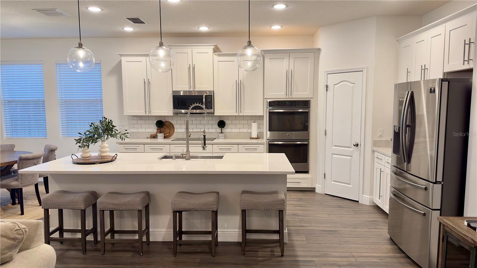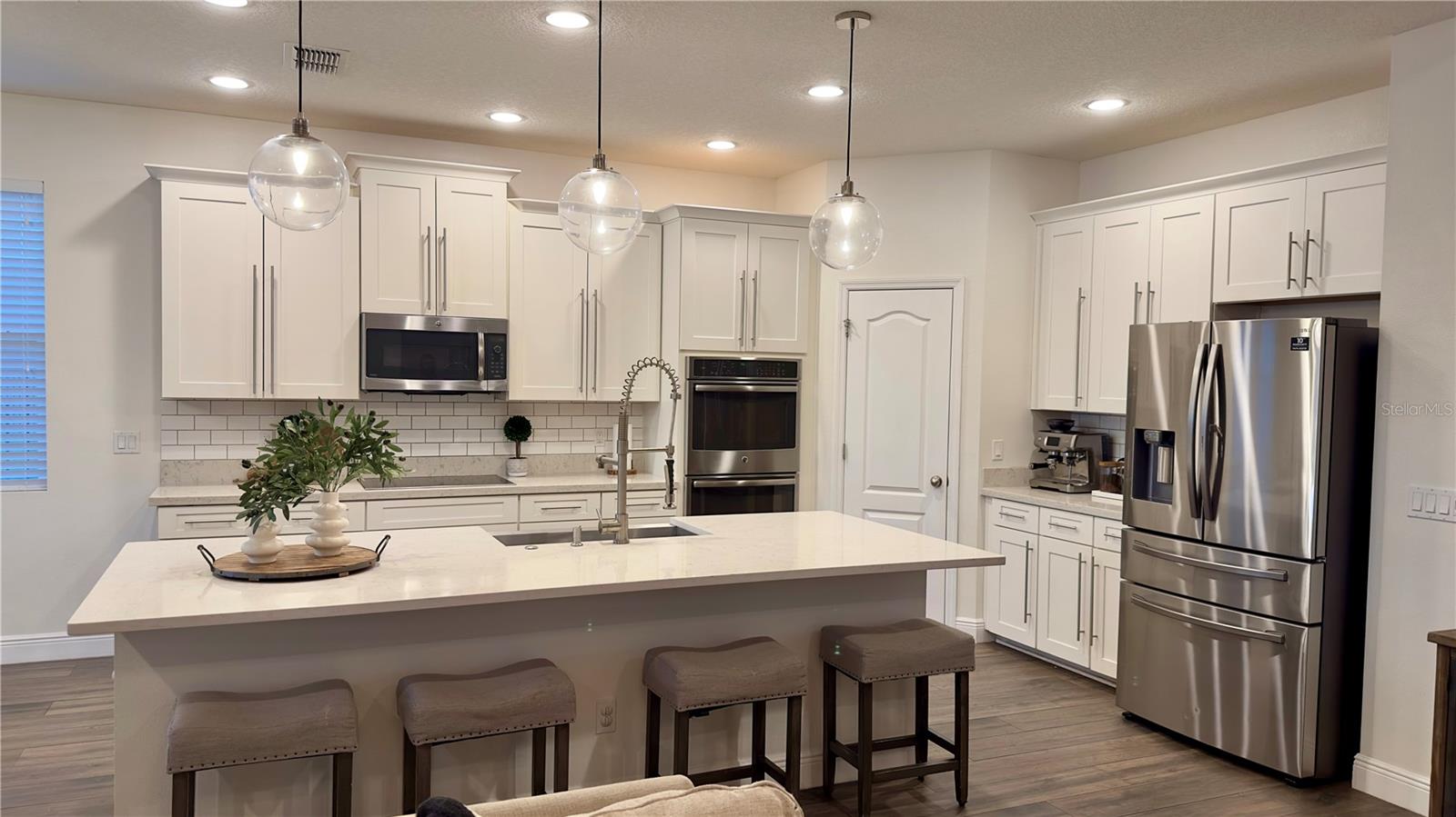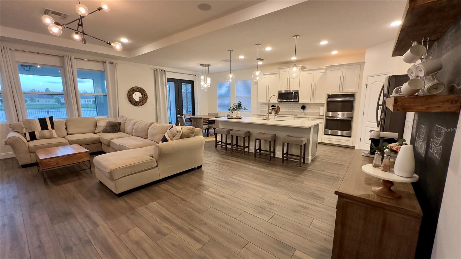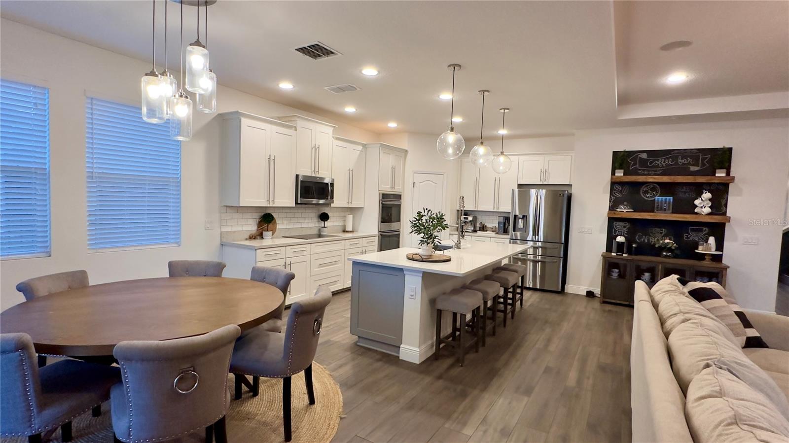 Bem-vindo a esta deslumbrante casa de 4 quartos e 4 banheiros, que oferece um amplo espaço de 3.098 pés quadrados de espaço meticulosamente projetado, perfeito para famílias e entretenimento. A partir do momento em que você entra, você será cativado pelo convidativo espaço aberto que inclui atualizações de alta qualidade, iluminação embutida e luminárias West Elm que iluminam a casa, criando um ambiente convidativo e grandioso. A cozinha gourmet é o sonho de qualquer chef, com eletrodomésticos de aço inoxidável, pia de fazenda e uma parede de café estilo barista para um começo perfeito de manhã. Os holofotes ambientais nas salas de estar e de jantar formais adicionam um toque de sofisticação, enquanto o som surround integrado e as prateleiras flutuantes de madeira na sala familiar criam uma mistura perfeita de estilo e função. A sala de jantar formal apresenta uma elegante parede vinho, adicionando um toque refinado a cada reunião. Divirta-se sem esforço na sala de bônus em estilo speakeasy, um espaço ideal para hospedagem, com configuração de projetor pré-cabeada e pré-cabeamento de som surround para uma experiência imersiva. Aconchegue-se junto à lareira eléctrica com iluminação ambiente embutida, acrescentando calor e elegância às suas noites. Esta casa também possui recursos de última geração para conforto e saúde, incluindo aparelhos de ar condicionado com iluminação UV embutida para purificação do ar. Saia para o seu quintal espaçoso, cercado por uma cerca de alumínio. O pátio protegido oferece alto-falantes embutidos, ventiladores e pré-cabeamento para TV, tornando-o ideal para entretenimento ao ar livre. O lote tem vista para um lago sereno com vistas naturais e inclui pré-instalação de holofotes ao ar livre. O espaço exterior pavimentado é perfeito para receber ou relaxar. Localizado em uma comunidade vibrante com piscina estilo resort, áreas de lazer e uma cabana para diversão ao ar livre. O bairro fica próximo a rodovias, atrações e restaurantes. Esta casa oferece a combinação perfeita de conveniência e vida luxuosa. Esta não é apenas uma casa, é um estilo de vida – não perca a oportunidade de torná-la sua!
