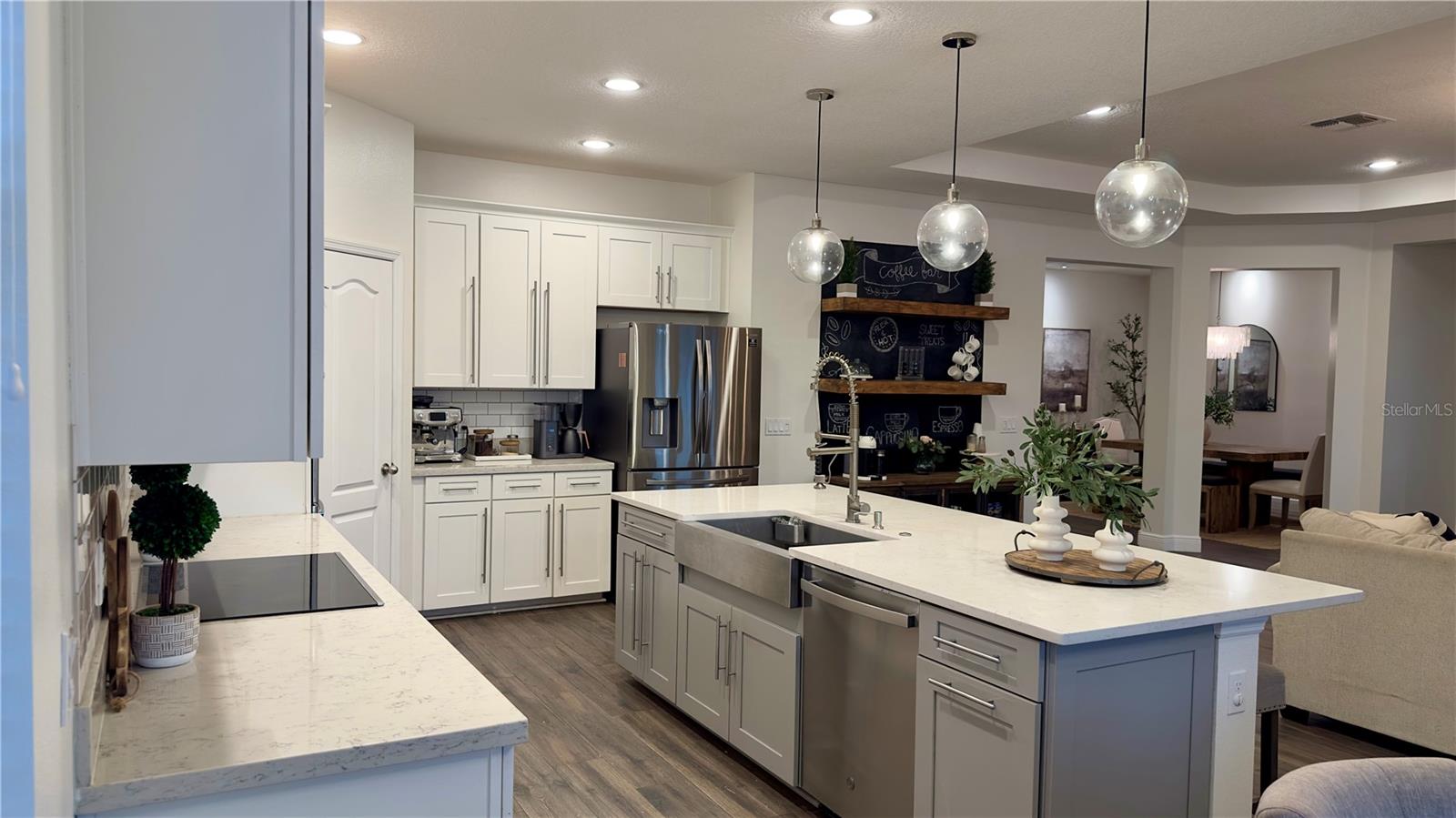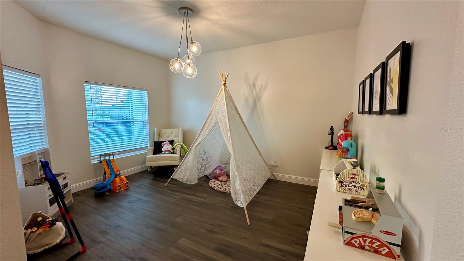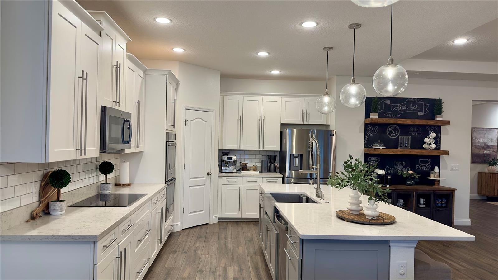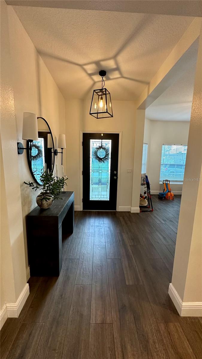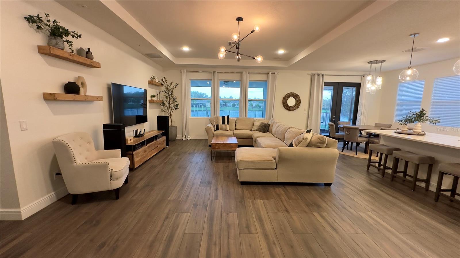 Bem-vindo a esta deslumbrante casa de 4 quartos e 4 banheiros, que oferece um amplo espaço de 3.098 pés quadrados de espaço meticulosamente projetado, perfeito para famílias e entretenimento. A partir do momento em que você entra, você será cativado pelo convidativo espaço aberto que inclui atualizações de alta qualidade, iluminação embutida e luminárias West Elm que iluminam a casa, criando um ambiente convidativo e grandioso. A cozinha gourmet é o sonho de qualquer chef, com eletrodomésticos de aço inoxidável, pia de fazenda e uma parede de café estilo barista para um começo perfeito de manhã. Os holofotes ambientais nas salas de estar e de jantar formais adicionam um toque de sofisticação, enquanto o som surround integrado e as prateleiras flutuantes de madeira na sala familiar criam uma mistura perfeita de estilo e função. A sala de jantar formal apresenta uma elegante parede vinho, adicionando um toque refinado a cada reunião. Divirta-se sem esforço na sala de bônus em estilo speakeasy, um espaço ideal para hospedagem, com configuração de projetor pré-cabeada e pré-cabeamento de som surround para uma experiência imersiva. Aconchegue-se junto à lareira eléctrica com iluminação ambiente embutida, acrescentando calor e elegância às suas noites. Esta casa também possui recursos de última geração para conforto e saúde, incluindo aparelhos de ar condicionado com iluminação UV embutida para purificação do ar. Saia para o seu quintal espaçoso, cercado por uma cerca de alumínio. O pátio protegido oferece alto-falantes embutidos, ventiladores e pré-cabeamento para TV, tornando-o ideal para entretenimento ao ar livre. O lote tem vista para um lago sereno com vistas naturais e inclui pré-instalação de holofotes ao ar livre. O espaço exterior pavimentado é perfeito para receber ou relaxar. Localizado em uma comunidade vibrante com piscina estilo resort, áreas de lazer e uma cabana para diversão ao ar livre. O bairro fica próximo a rodovias, atrações e restaurantes. Esta casa oferece a combinação perfeita de conveniência e vida luxuosa. Esta não é apenas uma casa, é um estilo de vida – não perca a oportunidade de torná-la sua!