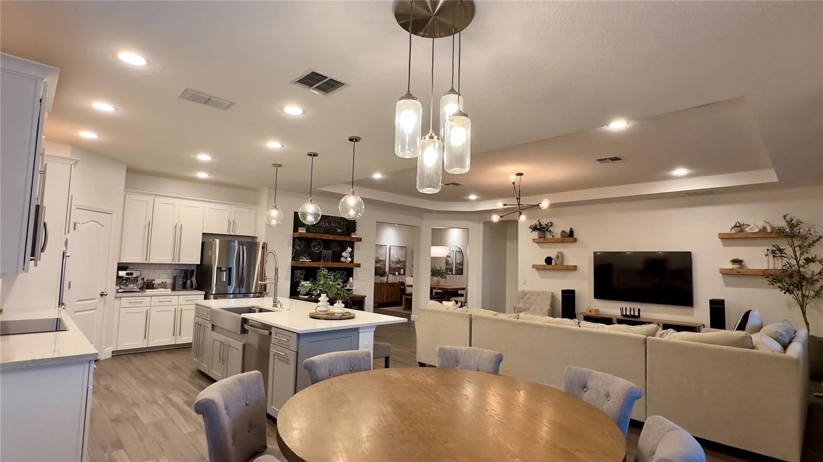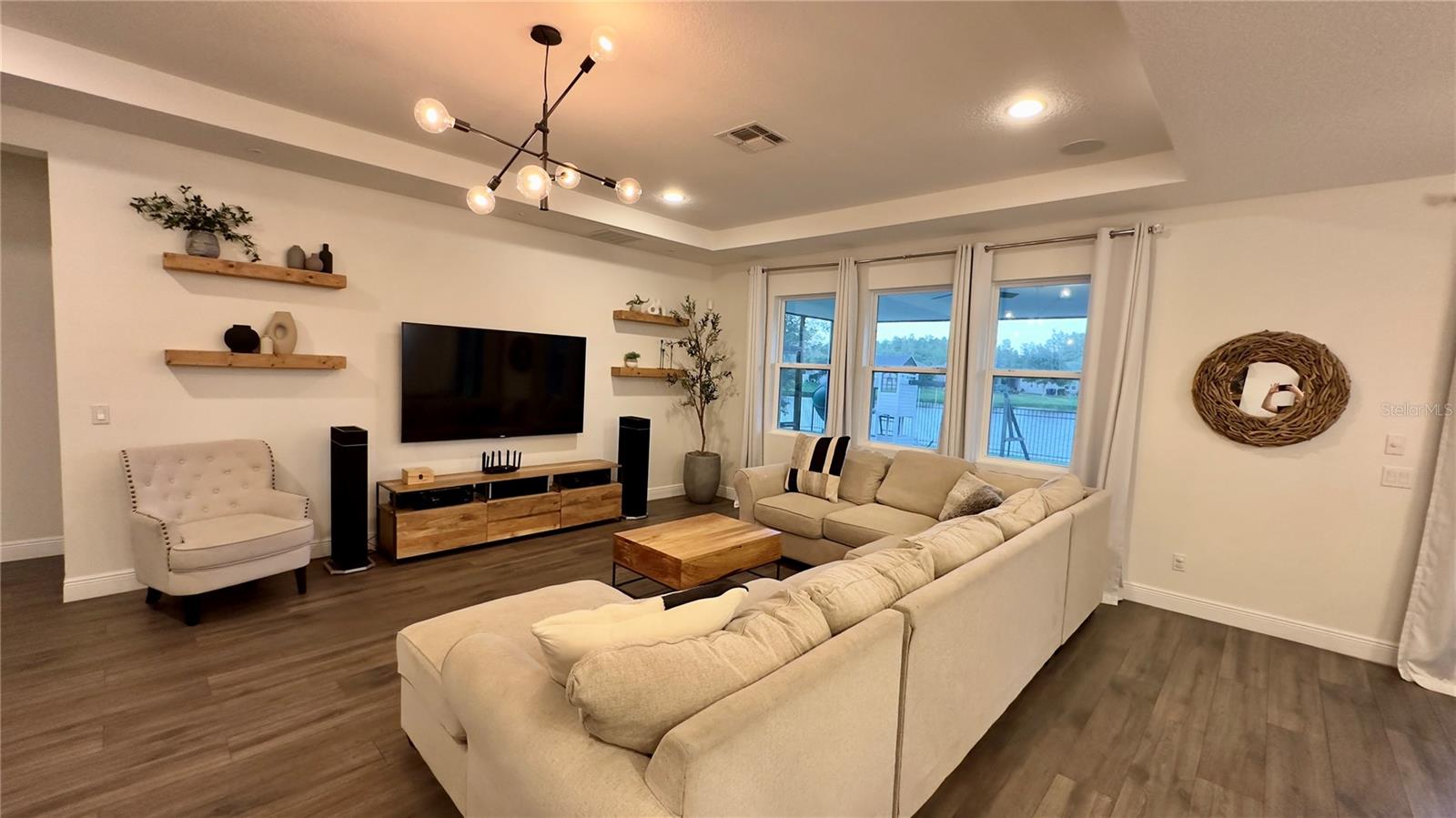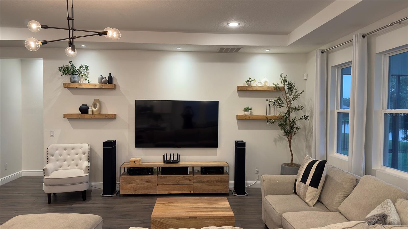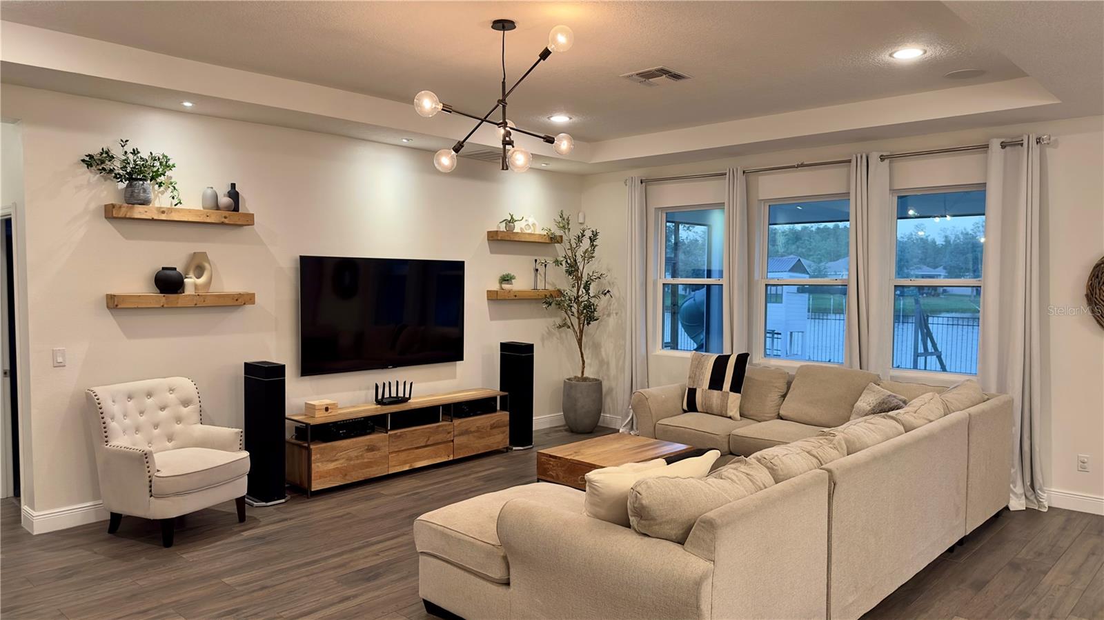 Bem-vindo a esta deslumbrante casa de 4 quartos e 4 banheiros, que oferece um amplo espaço de 3.098 pés quadrados de espaço meticulosamente projetado, perfeito para famílias e entretenimento. A partir do momento em que você entra, você será cativado pelo convidativo espaço aberto que inclui atualizações de alta qualidade, iluminação embutida e luminárias West Elm que iluminam a casa, criando um ambiente convidativo e grandioso. A cozinha gourmet é o sonho de qualquer chef, com eletrodomésticos de aço inoxidável, pia de fazenda e uma parede de café estilo barista para um começo perfeito de manhã. Os holofotes ambientais nas salas de estar e de jantar formais adicionam um toque de sofisticação, enquanto o som surround integrado e as prateleiras flutuantes de madeira na sala familiar criam uma mistura perfeita de estilo e função. A sala de jantar formal apresenta uma elegante parede vinho, adicionando um toque refinado a cada reunião. Divirta-se sem esforço na sala de bônus em estilo speakeasy, um espaço ideal para hospedagem, com configuração de projetor pré-cabeada e pré-cabeamento de som surround para uma experiência imersiva. Aconchegue-se junto à lareira eléctrica com iluminação ambiente embutida, acrescentando calor e elegância às suas noites. Esta casa também possui recursos de última geração para conforto e saúde, incluindo aparelhos de ar condicionado com iluminação UV embutida para purificação do ar. Saia para o seu quintal espaçoso, cercado por uma cerca de alumínio. O pátio protegido oferece alto-falantes embutidos, ventiladores e pré-cabeamento para TV, tornando-o ideal para entretenimento ao ar livre. O lote tem vista para um lago sereno com vistas naturais e inclui pré-instalação de holofotes ao ar livre. O espaço exterior pavimentado é perfeito para receber ou relaxar. Localizado em uma comunidade vibrante com piscina estilo resort, áreas de lazer e uma cabana para diversão ao ar livre. O bairro fica próximo a rodovias, atrações e restaurantes. Esta casa oferece a combinação perfeita de conveniência e vida luxuosa. Esta não é apenas uma casa, é um estilo de vida – não perca a oportunidade de torná-la sua!