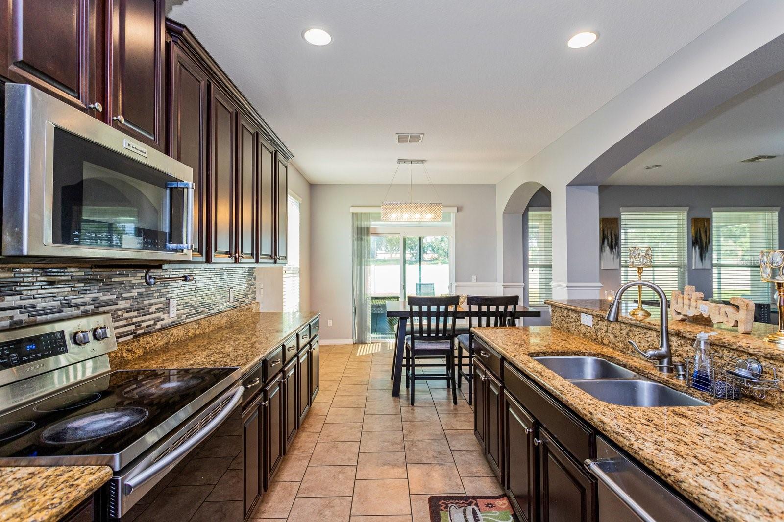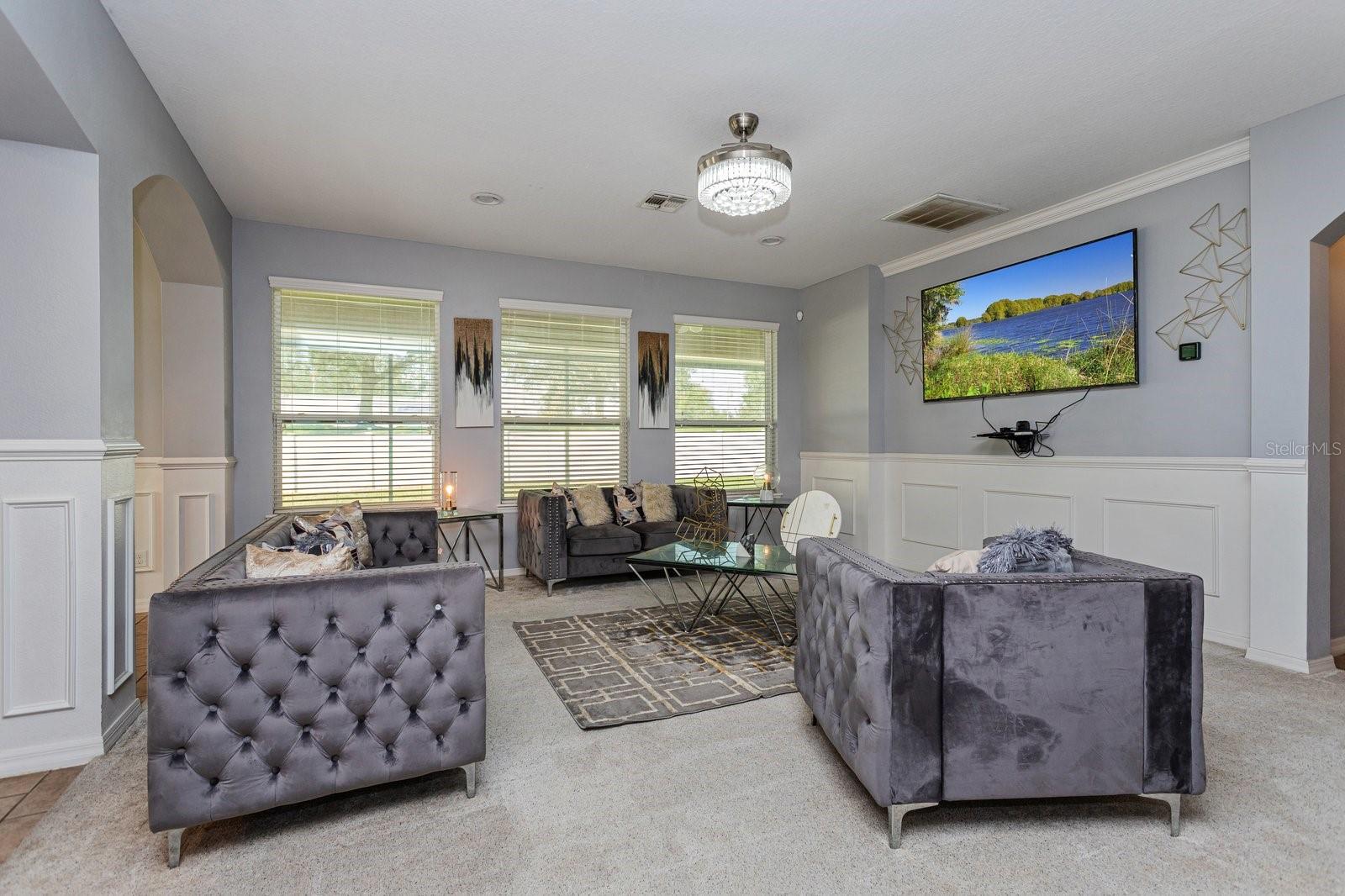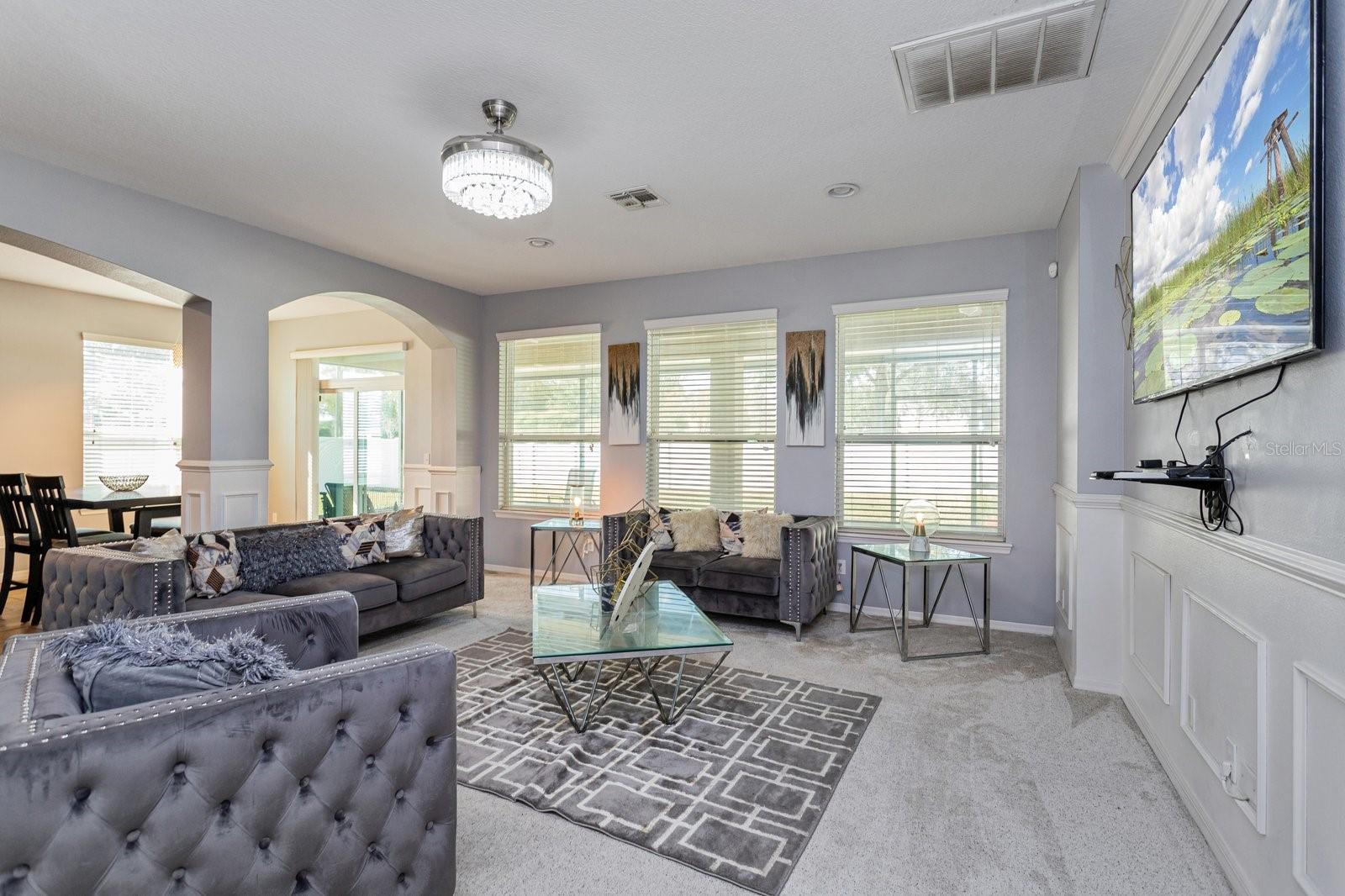 Bem-vindo ao 3240 Buckingham Way – uma propriedade verdadeiramente magnífica que combina perfeitamente luxo moderno, conveniência atenciosa e eficiência energética incomparável. Abrangendo mais de 4.200 pés quadrados, esta impressionante casa Meritage de 7 quartos e 4 banheiros está situada em um terreno enorme em uma comunidade exclusiva de baixo HOA, onde internet e cabo estão incluídos. Apresentando um sistema de filtragem de água em toda a casa, uma estação de carregamento de veículos elétricos e pintura externa fresca, esta casa é o epítome do conforto pronto para morar. A partir do momento em que você entra no grande hall de entrada, você é recebido pela sofisticação. Ladeada por uma sala de estar formal e uma espaçosa sala de jantar, a entrada causa uma primeira impressão ousada. Movendo-se para o coração da casa, a área de estar de conceito aberto possui uma cozinha de chef equipada com armários de café expresso de 42”, eletrodomésticos de aço inoxidável e bancadas de granito reluzentes. A barra de café da manhã da cozinha se conecta perfeitamente à moderna sala de família, adornada com acabamentos decorativos nas paredes e luminárias de luxo. Esta área transita facilmente para uma grande varanda com tela de 14” x 36”, criando um fluxo perfeito para entretenimento ou relaxamento com a família. O enorme quintal cercado, completo com um pátio extra de concreto e uma passarela que leva à frente, acrescenta um oásis privado para reuniões ao ar livre. O quarto adicional no térreo é uma suíte ideal para hóspedes ou sogros, completa com sua própria entrada segura. A casa também inclui uma enorme sala de teatro/jogos no andar de cima, oferecendo infinitas possibilidades de entretenimento. A elegante área do andar de cima é um retiro em si, com uma enorme sala de bônus cercada por quartos espaçosos, com a suíte master com banheira de hidromassagem, pias duplas e grandes closets. A atenção meticulosa aos detalhes estende-se a todos os aspectos, desde a iluminação LED atualizada em toda a casa até ao isolamento energeticamente eficiente. Com uma garagem enorme para 3 carros, garagem estendida e proximidade com lojas de primeira linha no The LOOP, além de estar a apenas 25 minutos da Disney, esta casa oferece o melhor da vida na Flórida Central. E com garantia residencial total dos vendedores, sua tranquilidade está garantida. Esta propriedade excepcional não durará muito – agende hoje mesmo seu tour privado!