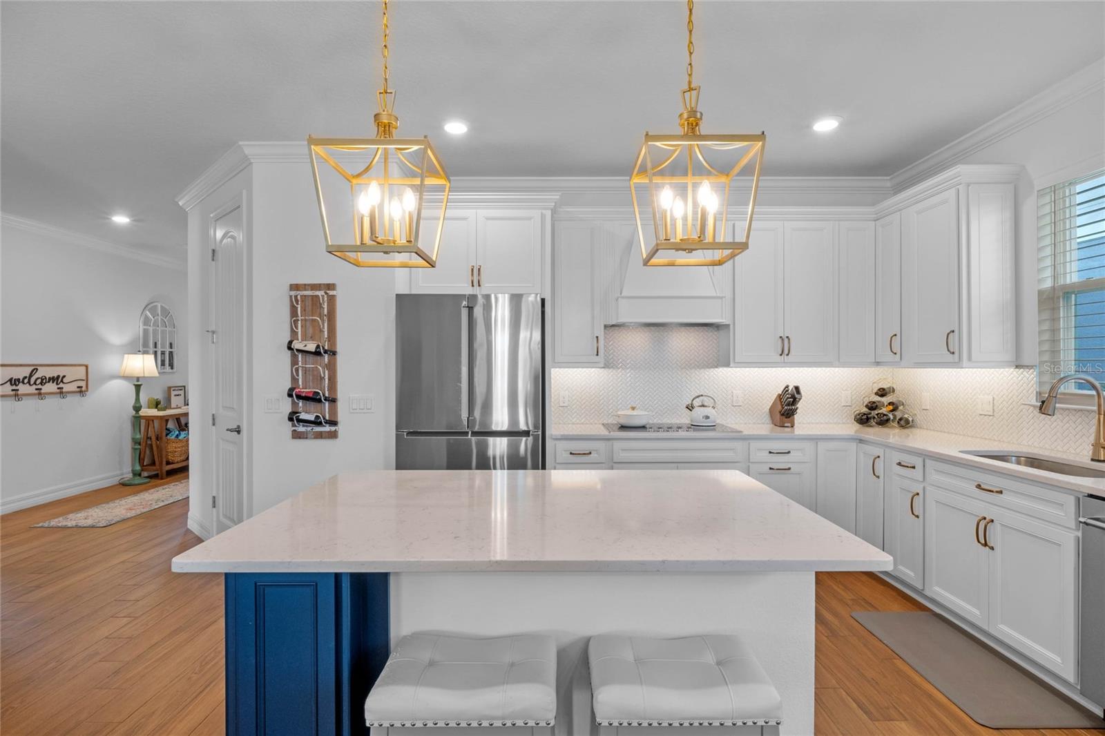 POR QUE ESPERAR PARA CONSTRUIR? Esta casa PICTURESQUE-WATERFRONT é melhor que nova; ostentando mais de US$ 100 mil em ATUALIZAÇÕES, BAIXAS taxas de HOA e SEM taxas de CDD. Esta casa térrea construída em Pulte em 2021 oferece LUXO MODERNO com amplos espaços de entretenimento abertos. Ao entrar, você é recebido por uma planta aberta e arejada, iluminada e iluminada, com tetos de 2,7 metros. A COZINHA GOURMET é o coração da casa, completa com uma GRANDE ILHA; pacote de armários de alta qualidade de 42 polegadas, incluindo GOLD HARDWARE e gavetas e armários SOFT-CLOSE; Bancadas de QUARTZO; Backsplash de TELHA EM ESPINHA DE PEIXE; Pacote de eletrodomésticos KitchenAid em AÇO INOXIDÁVEL; Iluminação PENDENTE DOURADO; abundante “ILUMINAÇÃO RECESSADA DE LED” por toda parte e muito mais. Ao lado da cozinha, você encontrará uma GRANDE SALA GRANDE com teto de 3 metros e vista tranquila para a água. Na parte traseira da casa, você encontrará o Retiro dos Proprietários com GRANDE ARMÁRIO WALK-IN, VAIDADE DUPLA com bancada de QUARTZO, CHUVEIRO ESTENDIDO E MAIS VISTA PARA A ÁGUA. Outras ATUALIZAÇÕES notáveis incluem LINDOS AZULEJOS DE MADEIRA em todas as áreas comuns e Retiro dos Proprietários; ambos os chuveiros têm TELHA AO TETO; RODAPÉS 5 ¾”; portas internas e externas atualizadas de 2,5 metros de altura; MOLDAGEM DE COROA EM TODA; grande LAVANDERIA INTERNA; luminárias personalizadas de ILUMINAÇÃO; ventiladores de teto grandes; MOLDURA DE JANELA SMART-ELÉTRICA na PORTA DE VIDRO DESLIZANTE da LANAI ESTENDIDA coberta com PAVERS; e PASSAGEM PAVIMENTADA; tomada de carregamento EV nível 2 na garagem; piso de garagem pintado com EPÓXI profissionalmente, cerca de alumínio estilo FERRO FORJADO e dois canteiros elevados autoirrigáveis. Esta é a FLÓRIDA vivendo no seu melhor!! A comunidade está convenientemente localizada perto da Narcoossee Road, a menos de 3 km de um novo centro comercial Publix e a menos de 8 km da área de Lake Nona/Medical City, restaurantes, mais lojas e um deslocamento fácil para 417 e 528, e Aeroporto Internacional de Orlando.